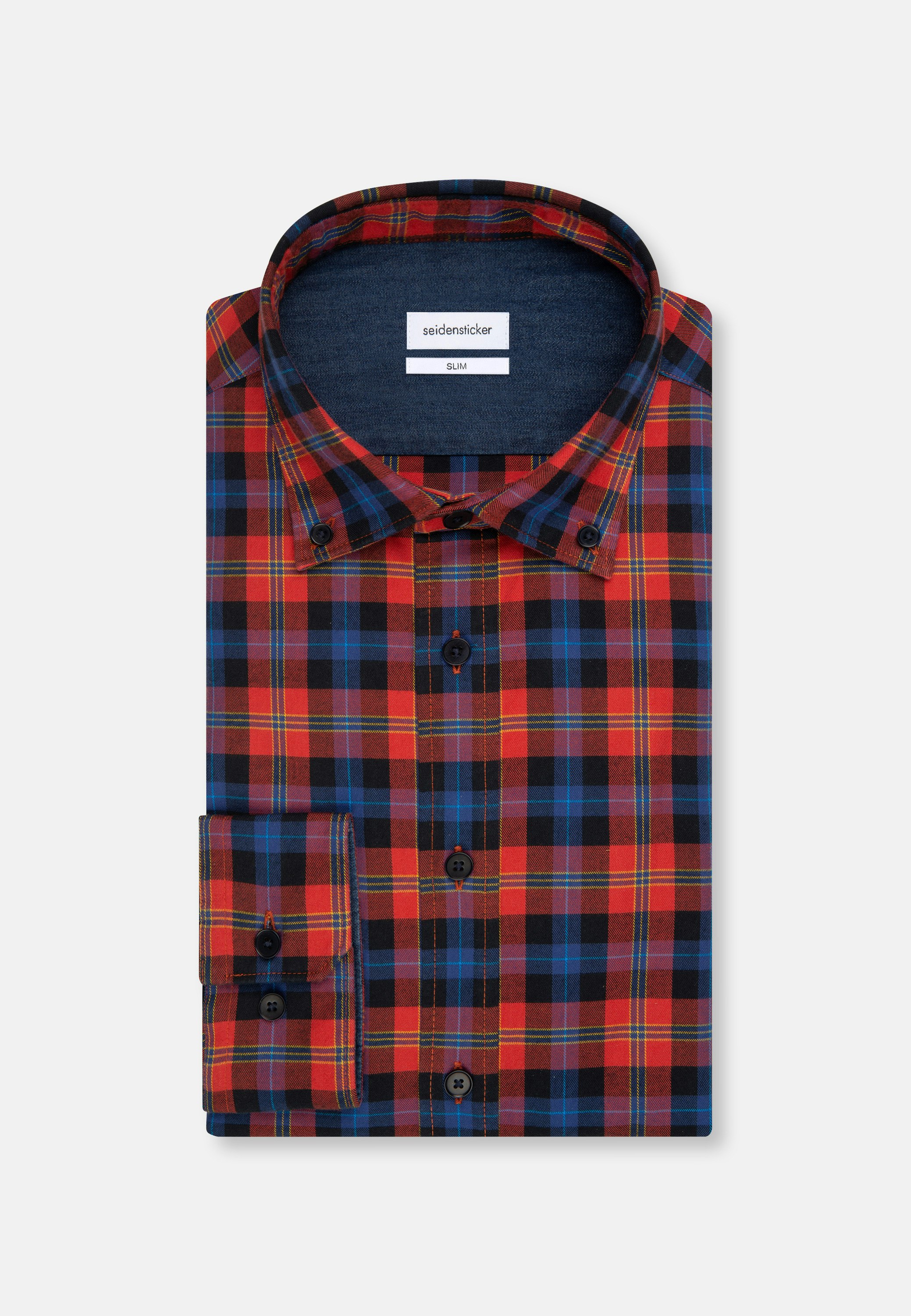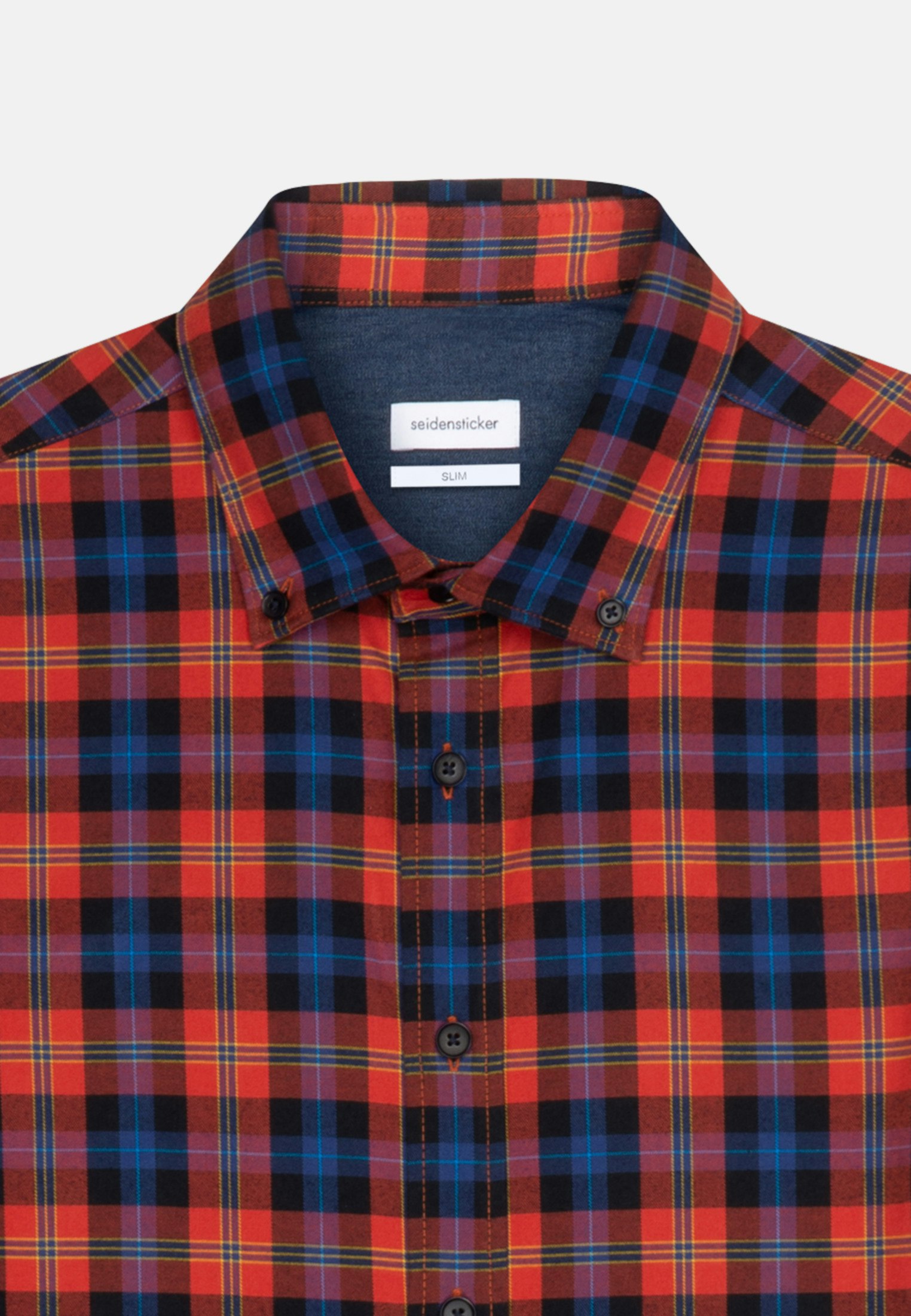 Maskuline Ästhetik: Das Casual Hemd von Seidensticker aus der "SMART CASUAL" Kollektion erweitert Ihre Garderobe um ein vielseitig einsetzbares Kleidungsstück. Es kann in der Freizeit, im Homeoffice, im Büro oder bei Veranstaltungen zu Ihrer schlichten Eleganz beitragen. Die Webart Twill aus 100% Baumwolle ist besonders hochwertig gewebt, was sie bequem zu tragen und mit schräg umlaufender Struktur sehr griffig macht. In Slim Fit zeigt sich das Casual Hemd äußerst figurbetont. Durch das Karo-Muster mit Patch in Passe, Manschetten, Ärmelschlitz und Beinecken ist Ihr neues Kleidungsstück die perfekte Wahl für geschmackvolle Looks. Balanceakt zwischen Klassik und Moderne: das elegante Seidensticker Hemd. Bei diesem Langarm-Casual Hemd werden Stilsicherheit und Eleganz hervorgehoben. Es wird durch weitenverstellbare Manschetten perfektioniert. Hervorragend herausgearbeitet wird der sportlich-moderne Charakter durch einen Button-Down-Kragen.