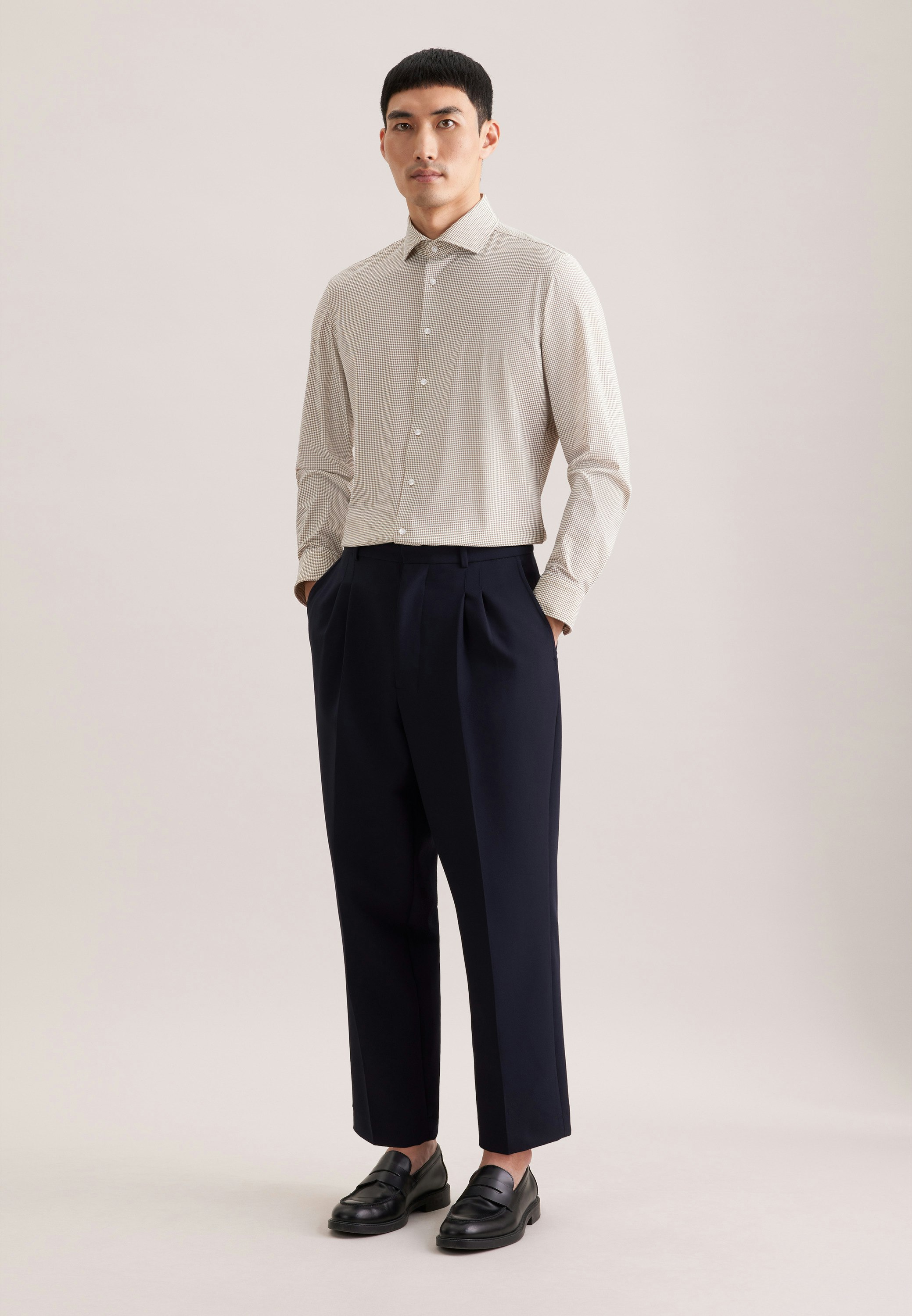 Unsere Performance Shirts mit funktionalen Features sorgen dafür, dass man sich perfekt angezogen fühlt – in jeder Situation. Vom Stretchanteil, der Bewegungsfreiheit garantiert, über wärme- und feuchtigkeitsregulierende, knitterfreie sowie hautfreundliche Eigenschaften bis hin zu effektivem UV-Schutz – hier stimmt die Balance zwischen korrekt und komfortabel. Wie stylen? Everything goes, von smarten Anzügen bis zu lässigen Jeans