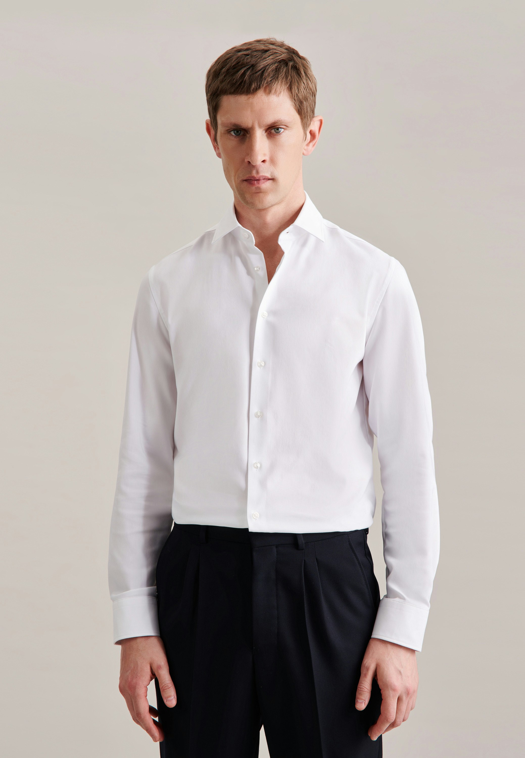 Unsere Performance Shirts mit funktionalen Features sorgen dafür, dass man sich perfekt angezogen fühlt – in jeder Situation. Vom Stretchanteil, der Bewegungsfreiheit garantiert, über wärme- und feuchtigkeitsregulierende, knitterfreie sowie hautfreundliche Eigenschaften bis hin zu effektivem UV-Schutz – hier stimmt die Balance zwischen korrekt und komfortabel. Wie stylen? Everything goes, von smarten Anzügen bis zu lässigen Jeans