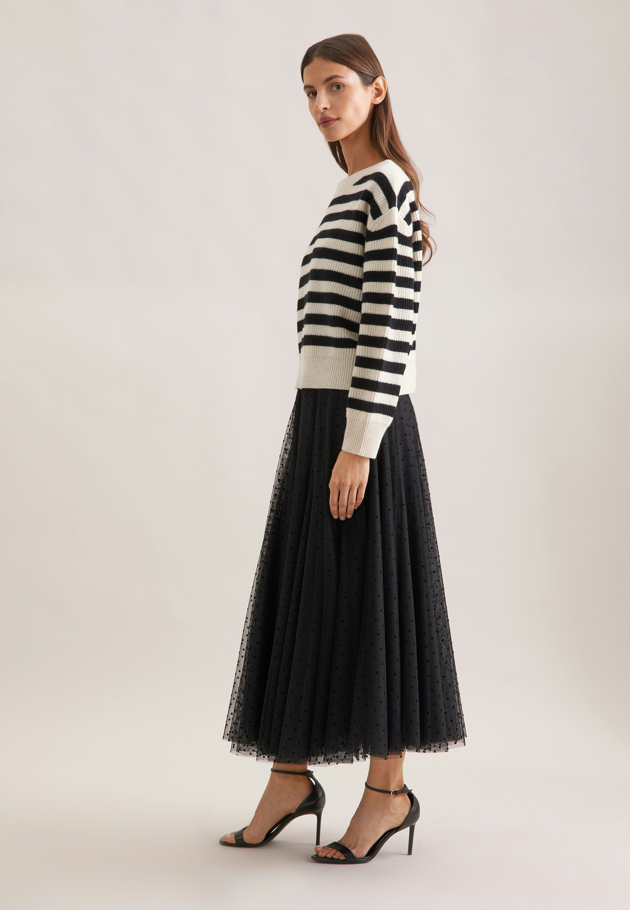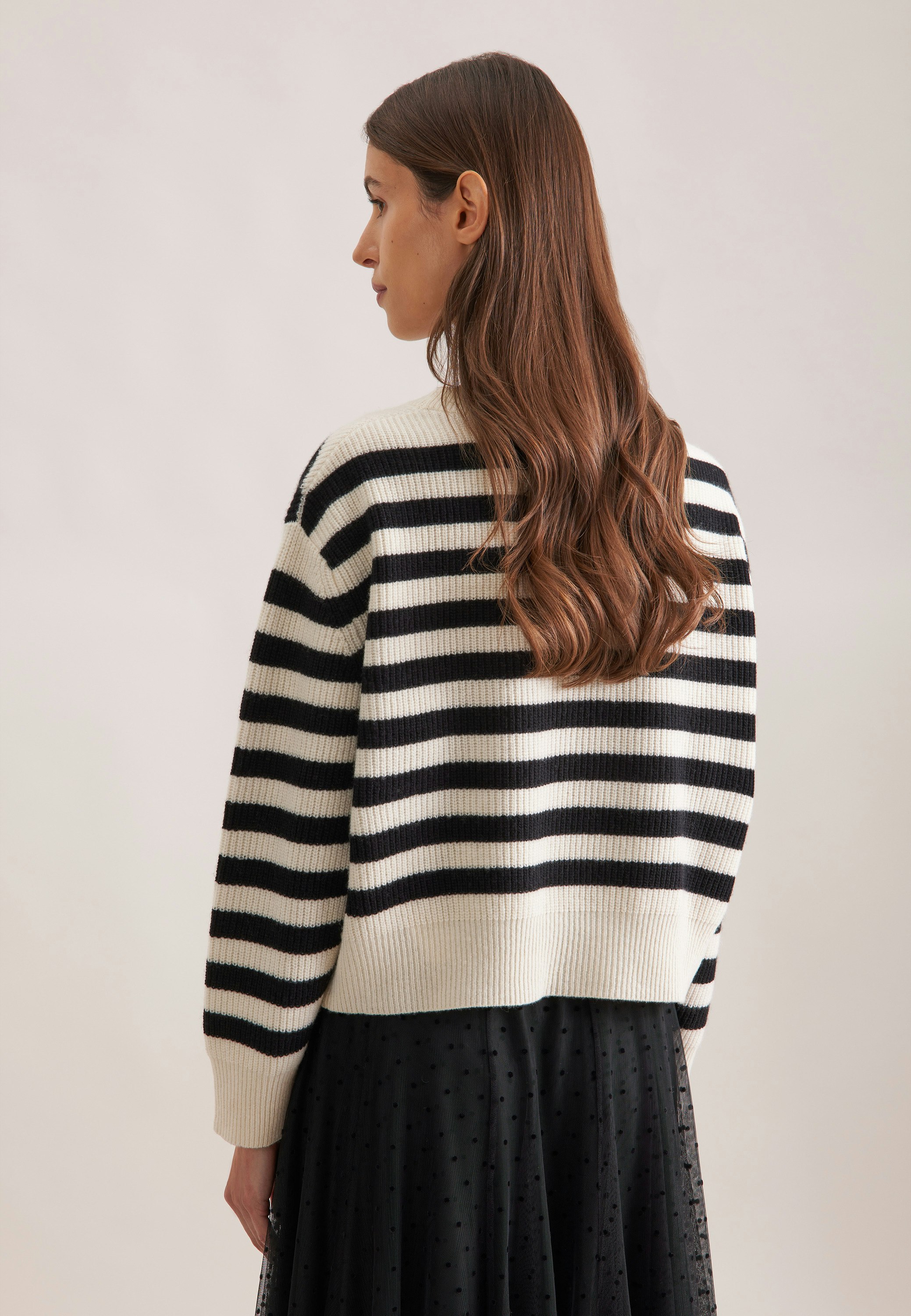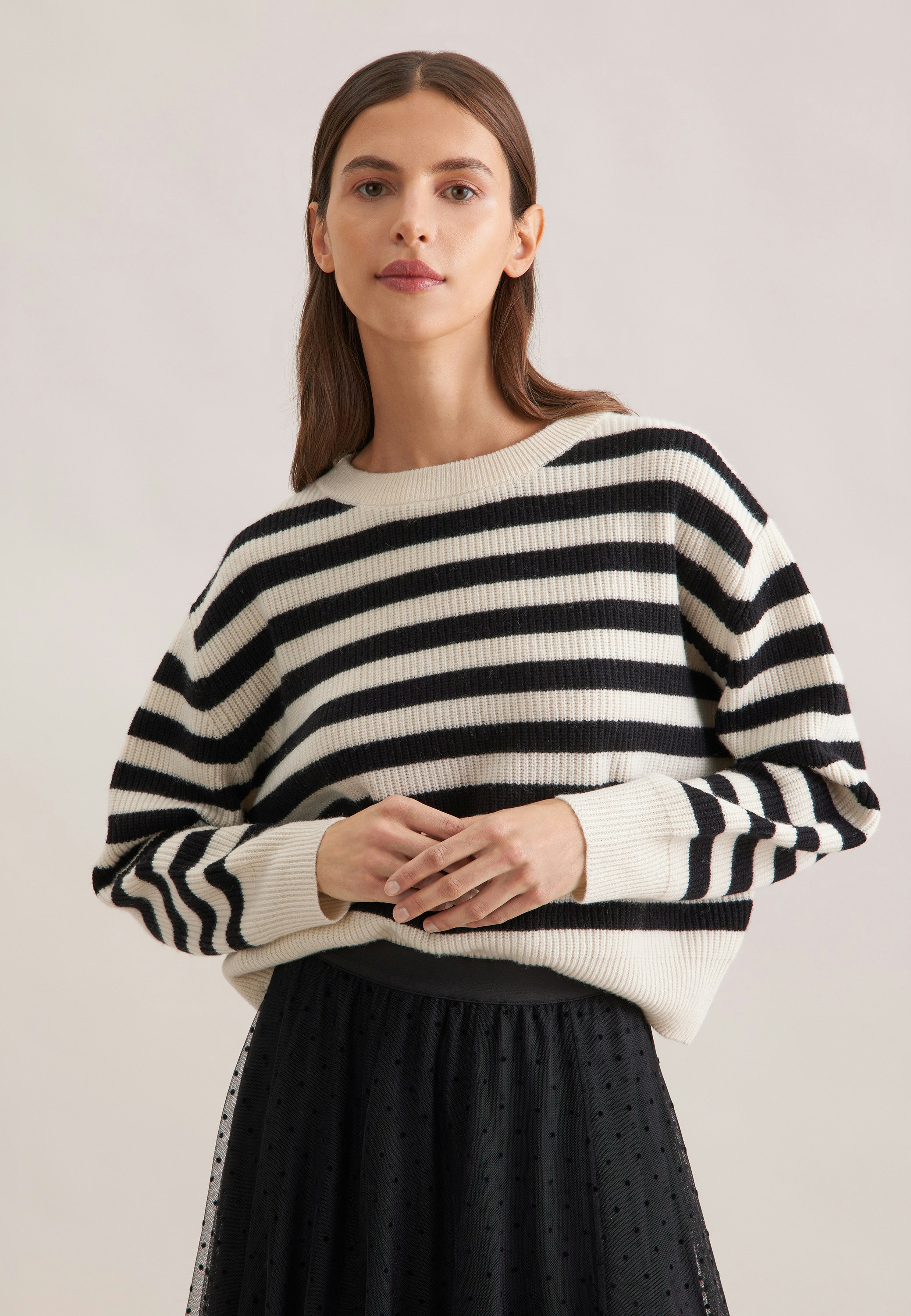 Komplettiert Ihr Outfit und darf in keiner Garderobe fehlen: Dieser 1/1-Pullover aus der "Alexandra Lapp" Kollektion von Seidensticker überzeugt durch stylishen Komfort. Das schicke Gestreift-Muster ist eine stilvolle Ergänzung. Ein Basic wird neu interpretiert: Der stilsichere Pullover verbindet Moderne und Stilsicherheit.