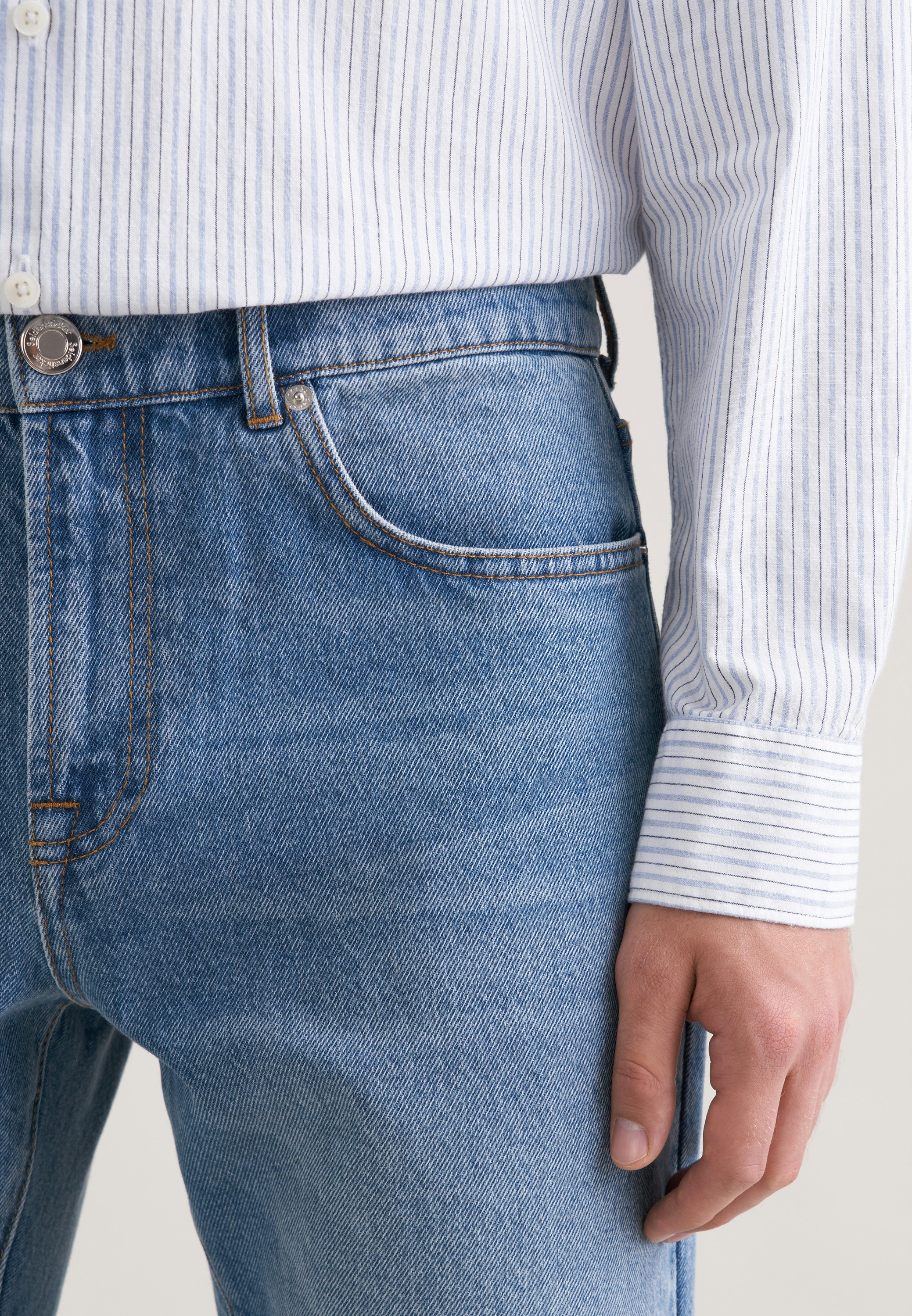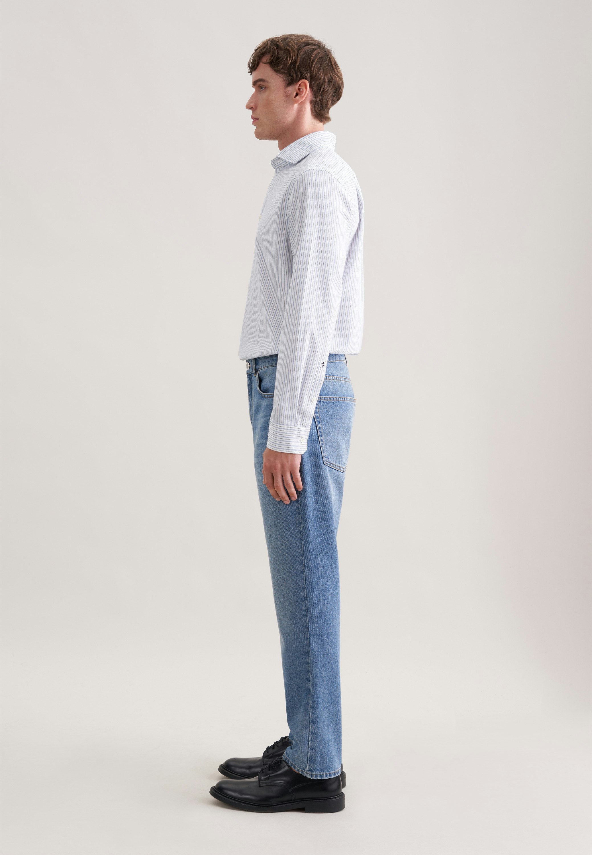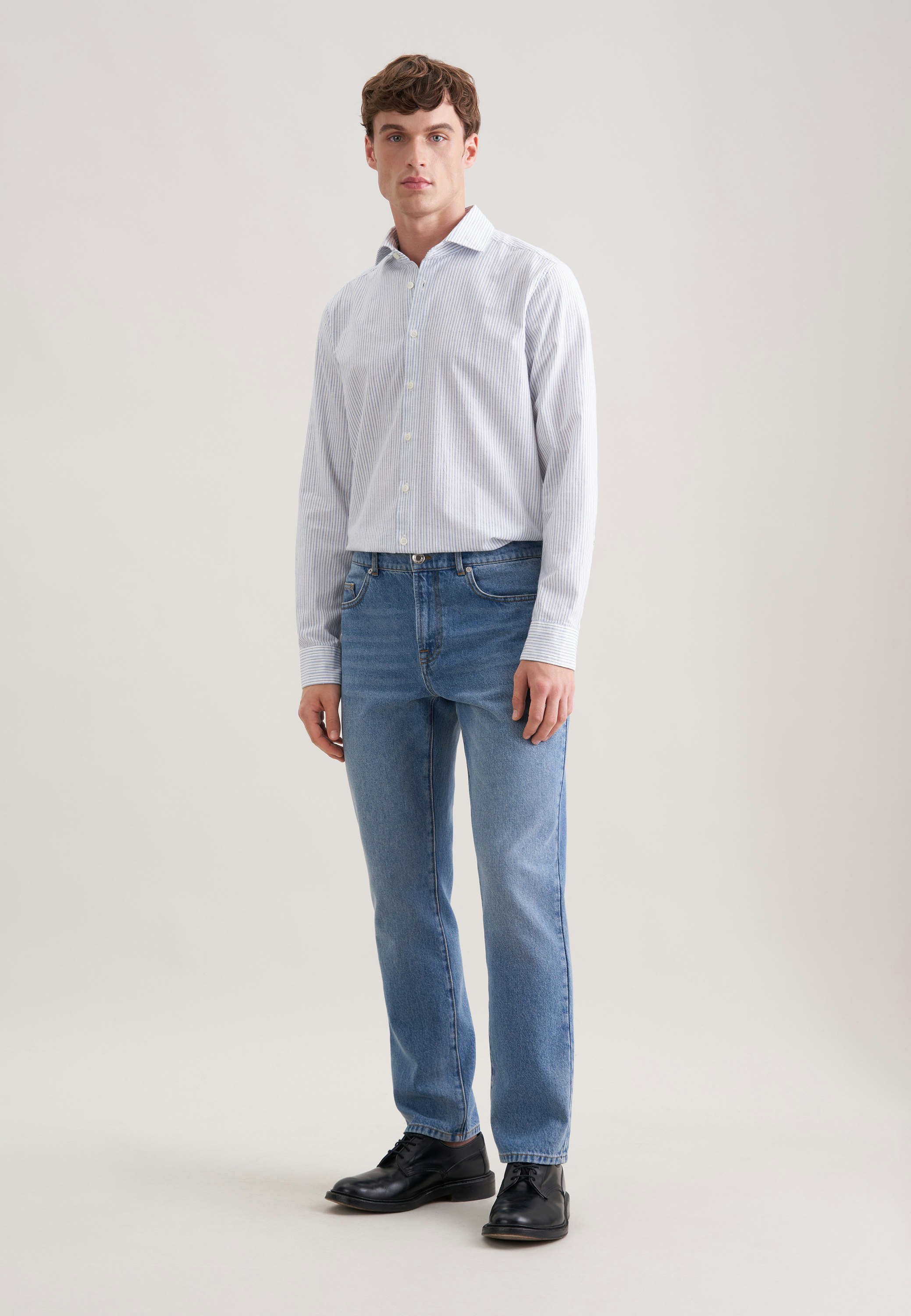 : Ihre Silhouette wird stilvoll inszeniert mit 1/1-5-Pocket Denim von Seidensticker aus der "CASUAL BUSINESS" Kollektion. Im klassisch-geraden Regular Schnitt bietet 5-Pocket Denim hohen Tragekomfort und liegt weniger eng an. Das schicke Denim-Muster ist eine stilvolle Ergänzung. Entdecken Sie mit diesem Accessoire neue Kombinationsmöglichkeiten.