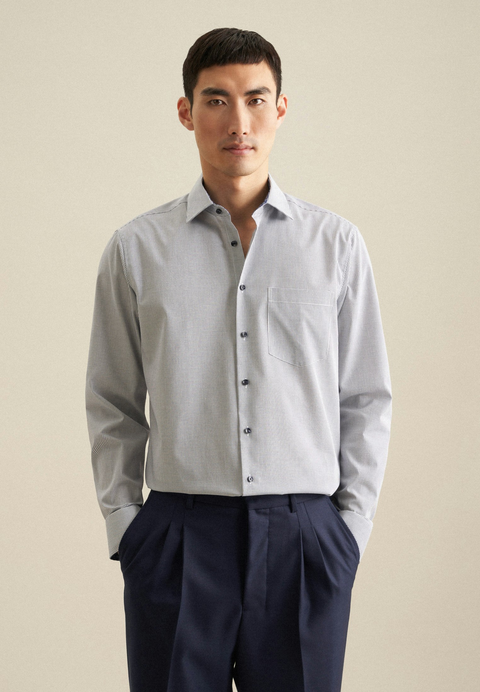 Les chemises de la collection Seidensticker se distinguent par leur modernité élégante, leur aspect formel et décontracté. L'attitude de base imprègne l'ensemble de la collection Seidensticker Men et peut être ressentie dans tous les styles, qualités et coupes. L'homme le reflète dans son attitude décontractée et son approche contemporaine de la mode et du style. La coupe Regular offre une découpe droite classique avec des dimensions de chemise modérées. Deux plis latéraux à l'arrière permettent une plus grande liberté d'action.