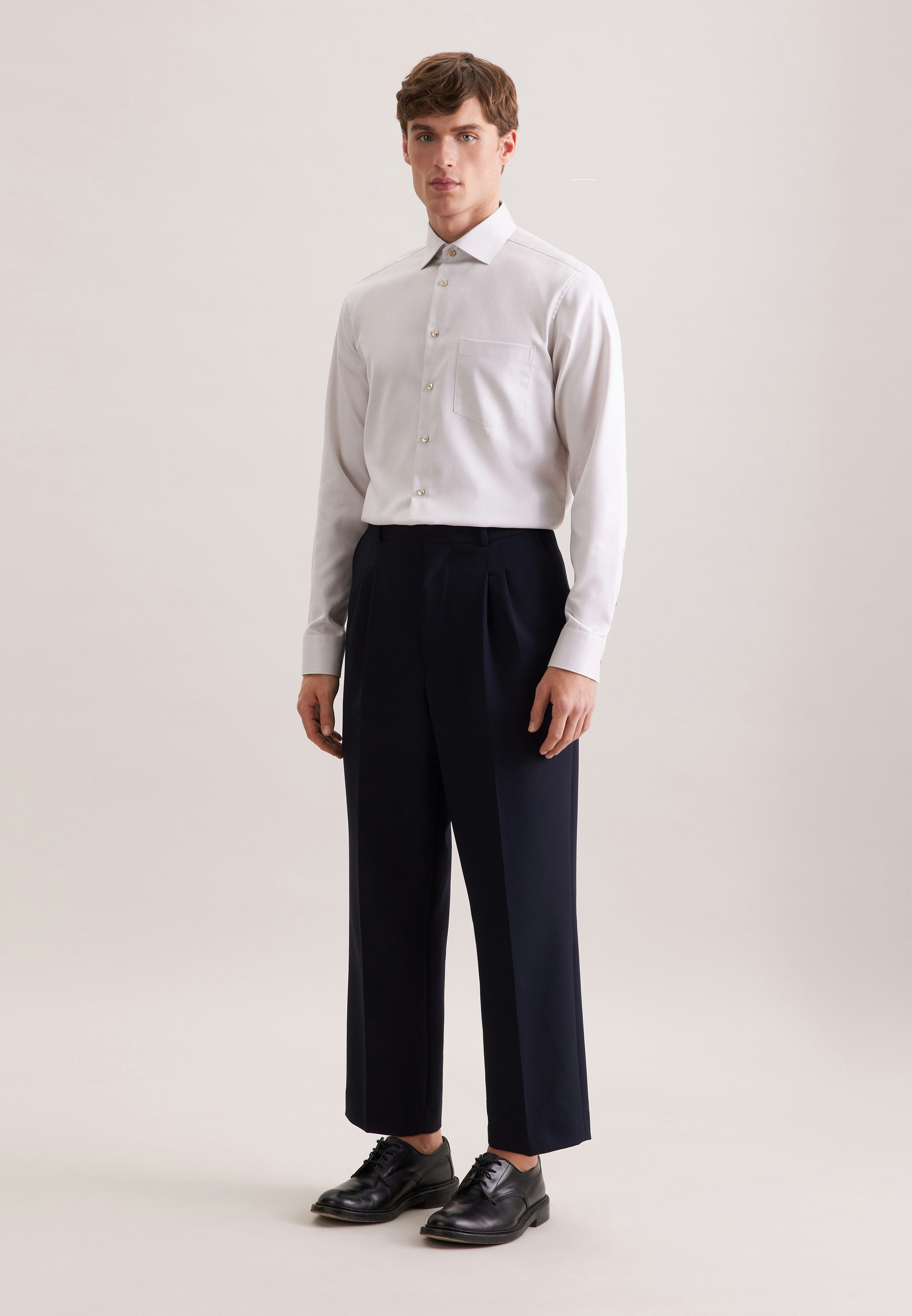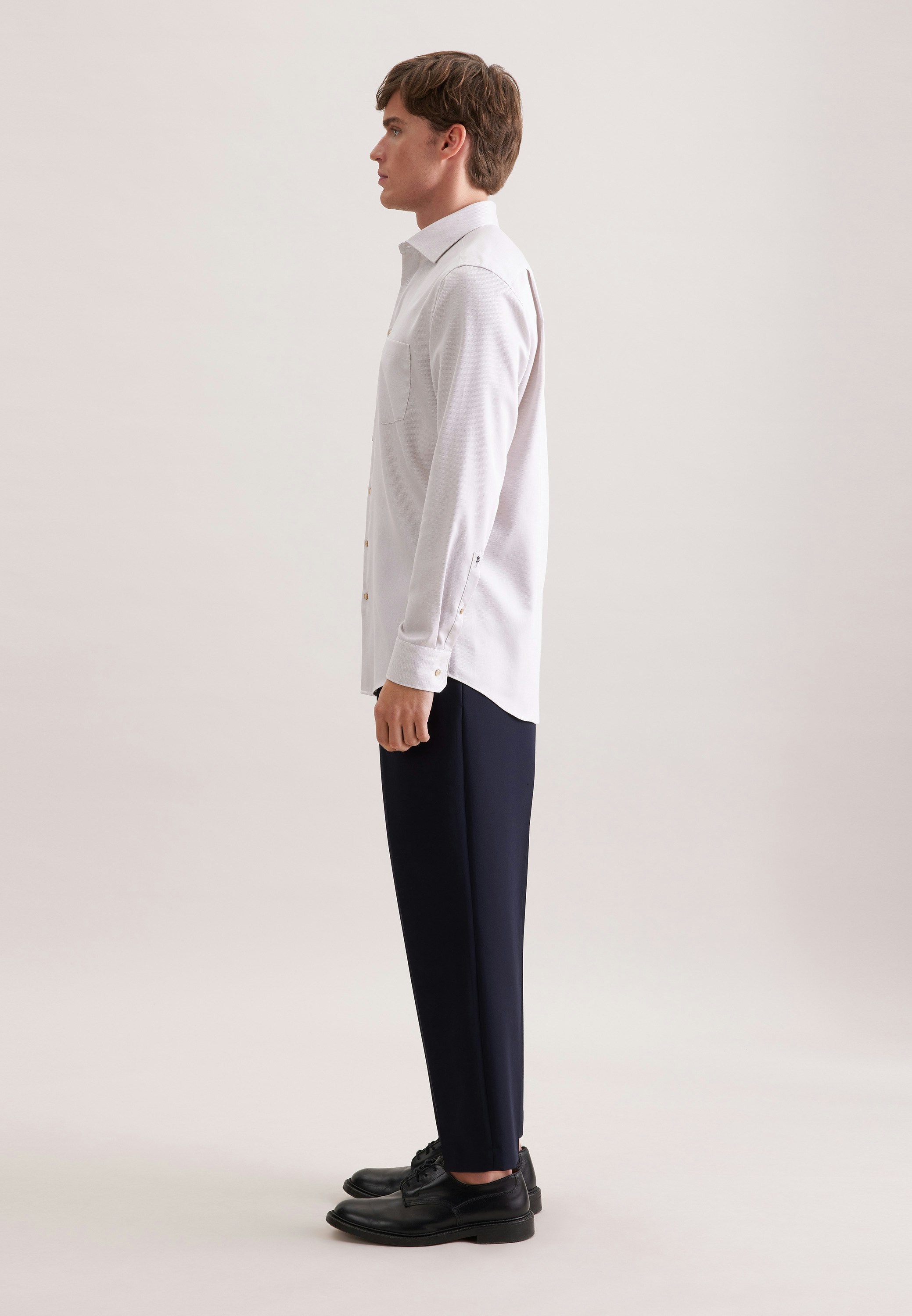 Maskuline Ästhetik: Ihre Silhouette wird stilvoll inszeniert mit dem 1/1-Business Hemd von Seidensticker aus der "SMART ESSENTIALS" Kollektion. Es ist ein perfekter Begleiter, der sich ideal für Freizeit, Homeoffice, Büro oder Veranstaltungen eignet und überall überzeugt. Im klassisch-geraden Regular Schnitt bietet das Business Hemd hohen Tragekomfort und liegt leger an. Das raffinierte Struktur-Muster mit Patch in Kragen und Manschetten verleiht dazu die passenden modischen Nuancen. Dieses Hemd verkörpert zeitlose Eleganz mit modernem Stil. Hervorragend unterstrichen wird der universelle Business-Charakter durch einen Kentkragen.