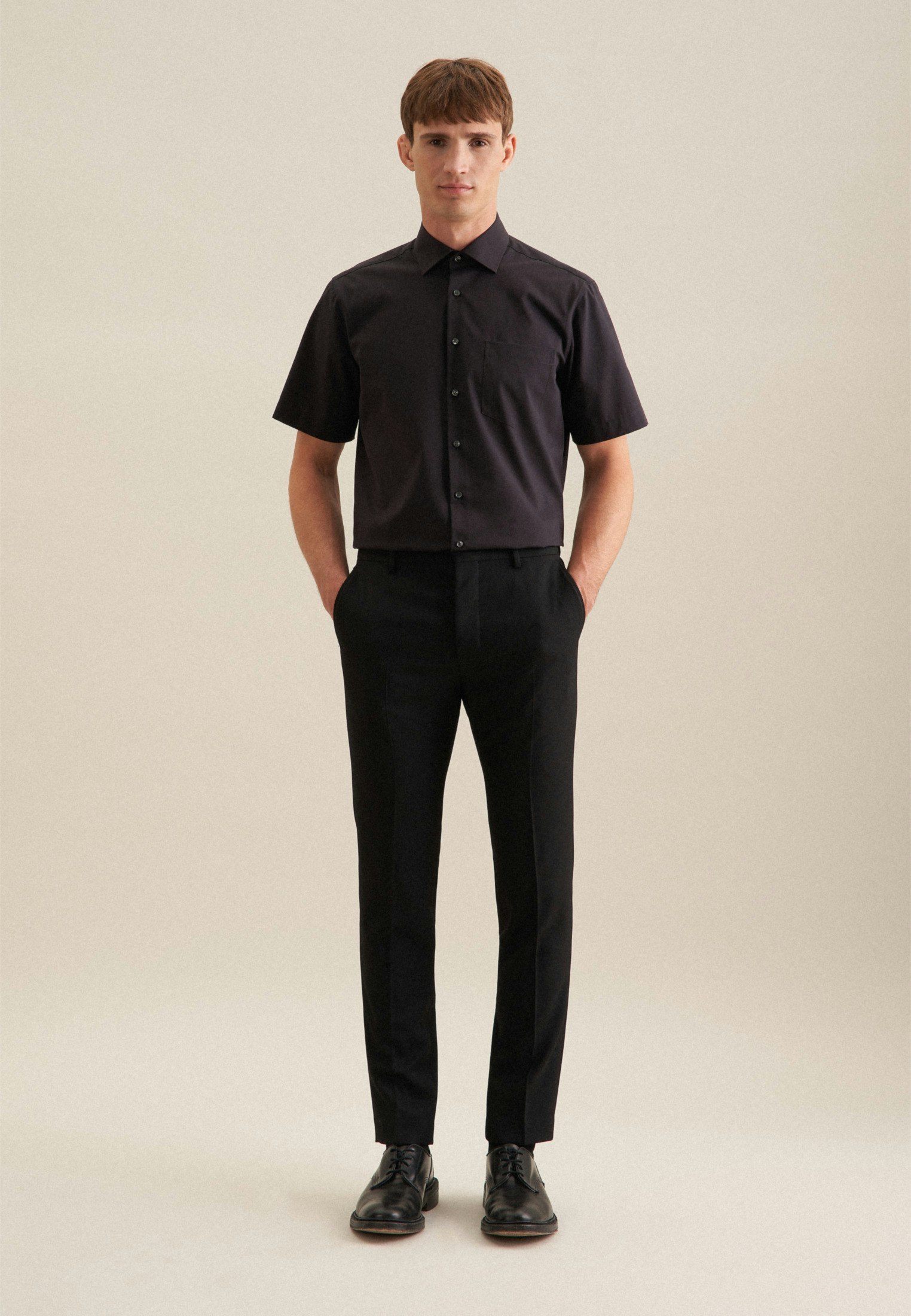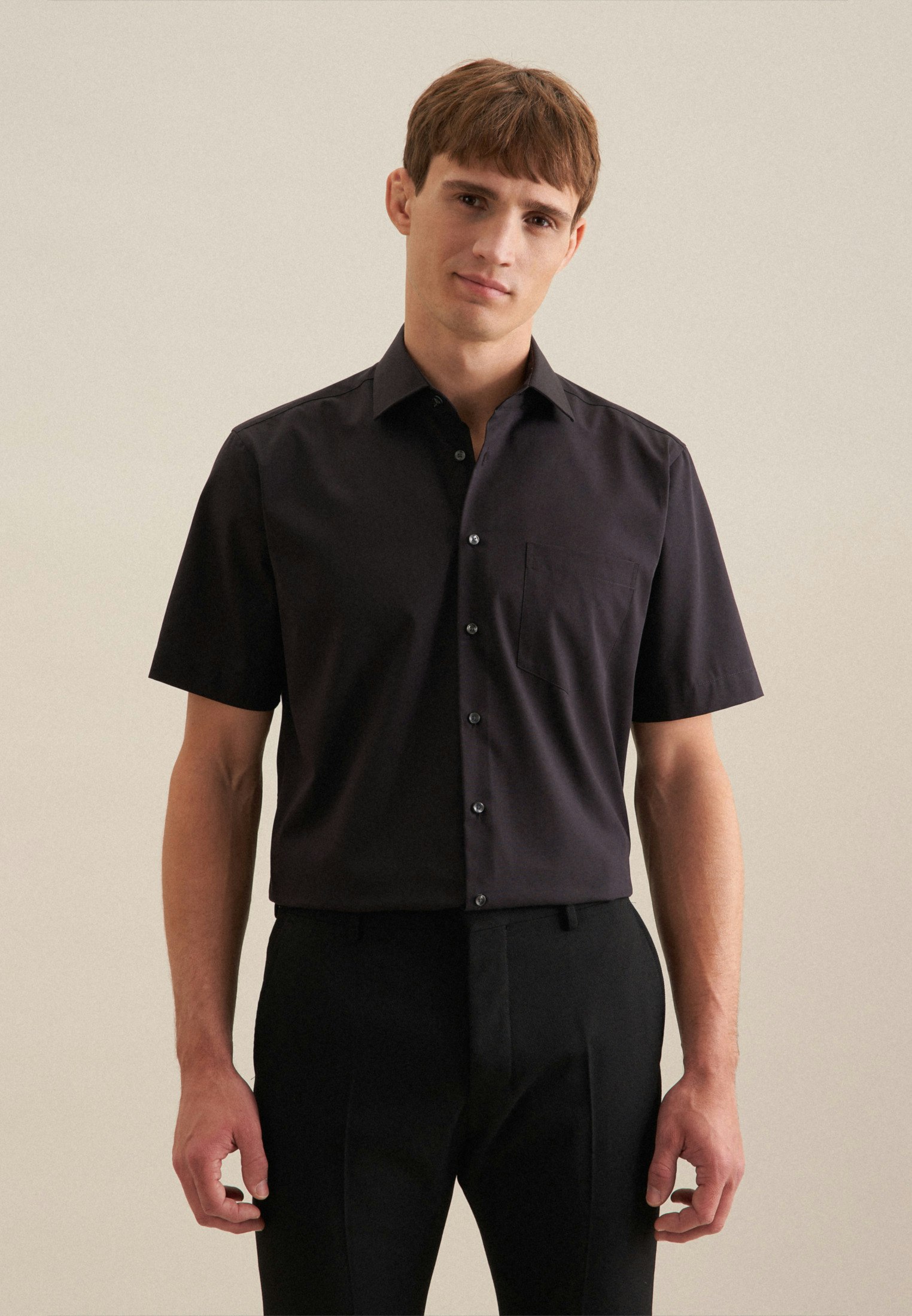 Facile à vivre et à combiner, cette chemise manches courtes REGULAR de la marque Seidensticker arbore fièrement son joli col ville, une coupe droite avec poche poitrine taillée dans une belle étoffe en 100% coton popeline dotée de la technologie sans repassage.