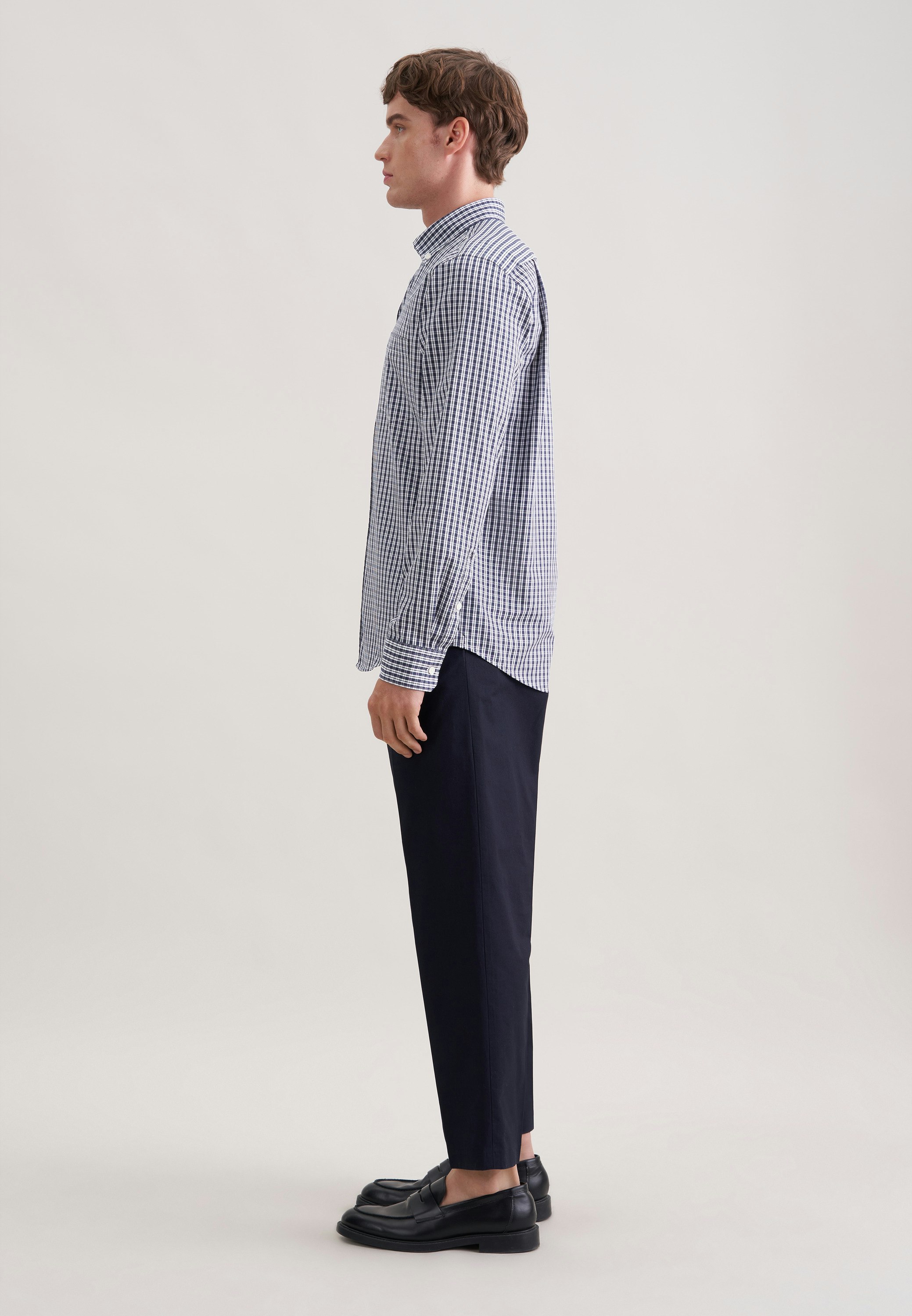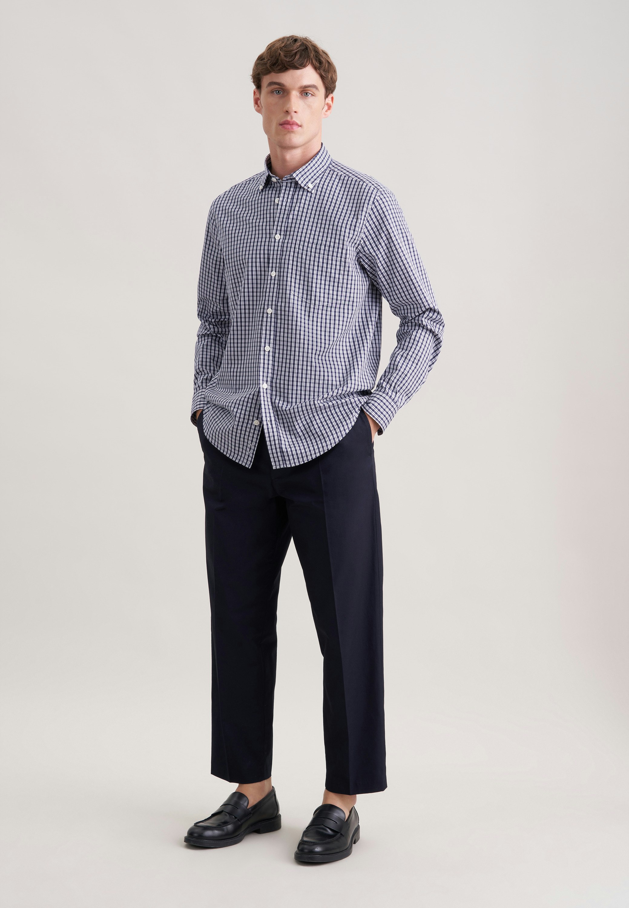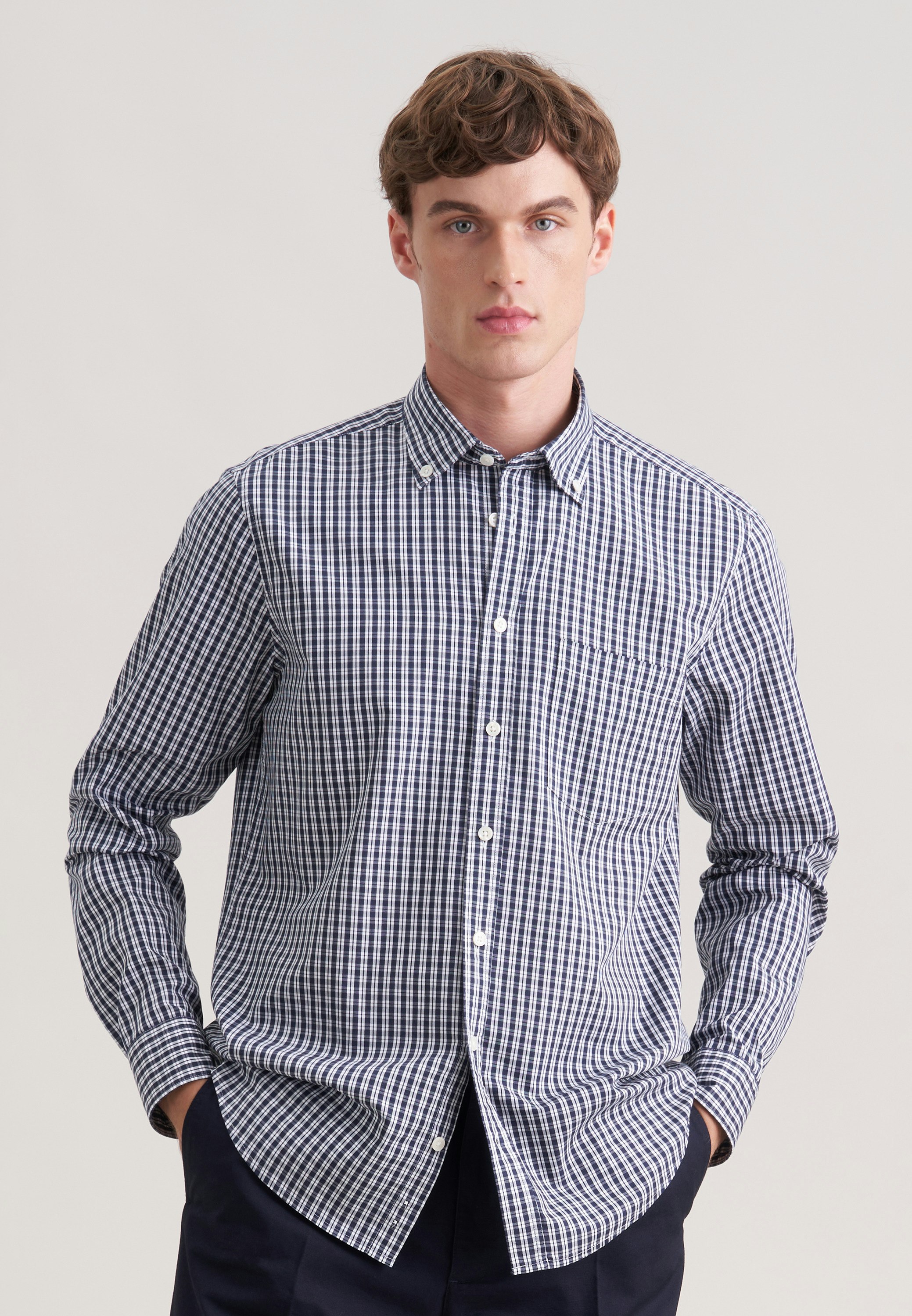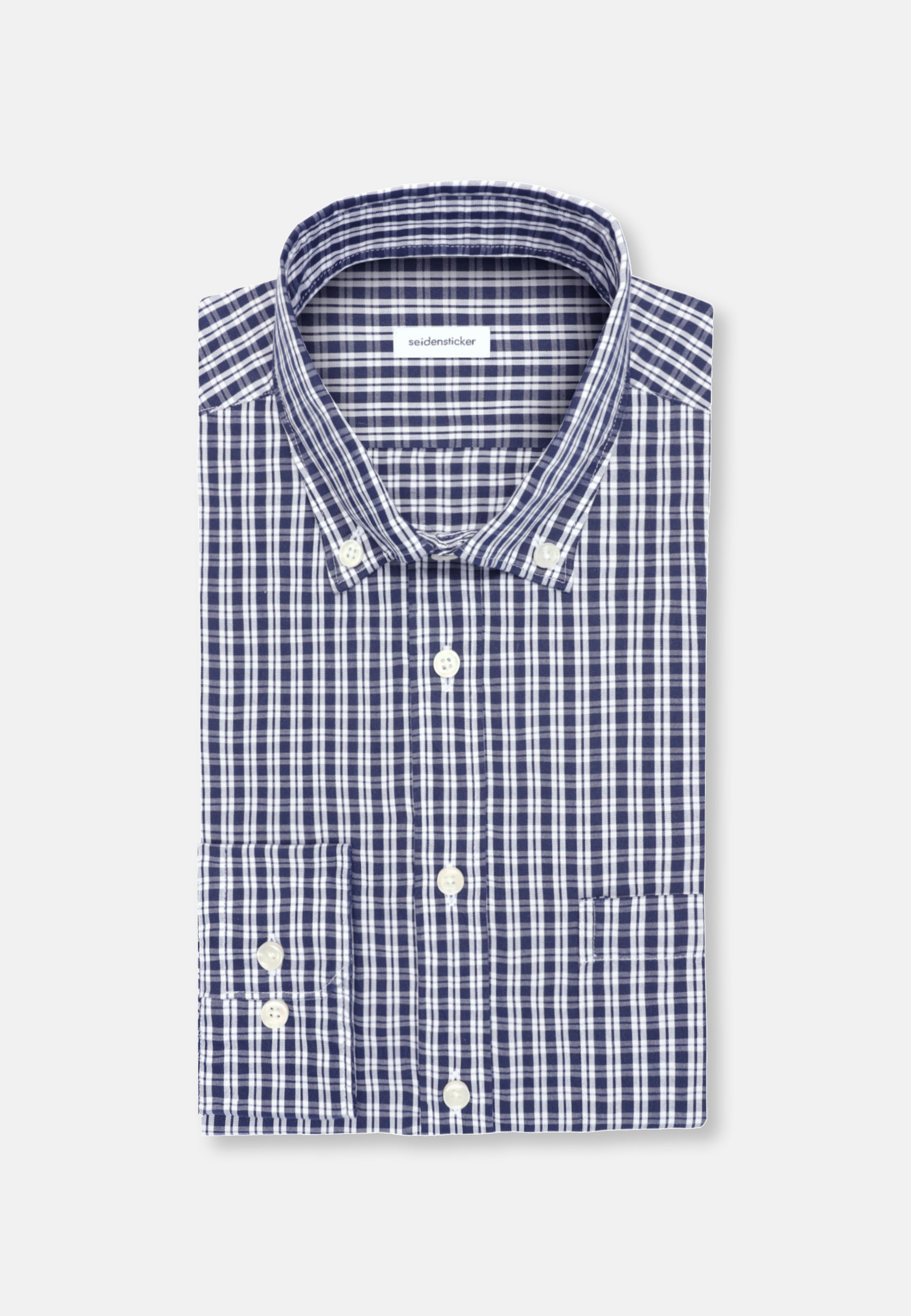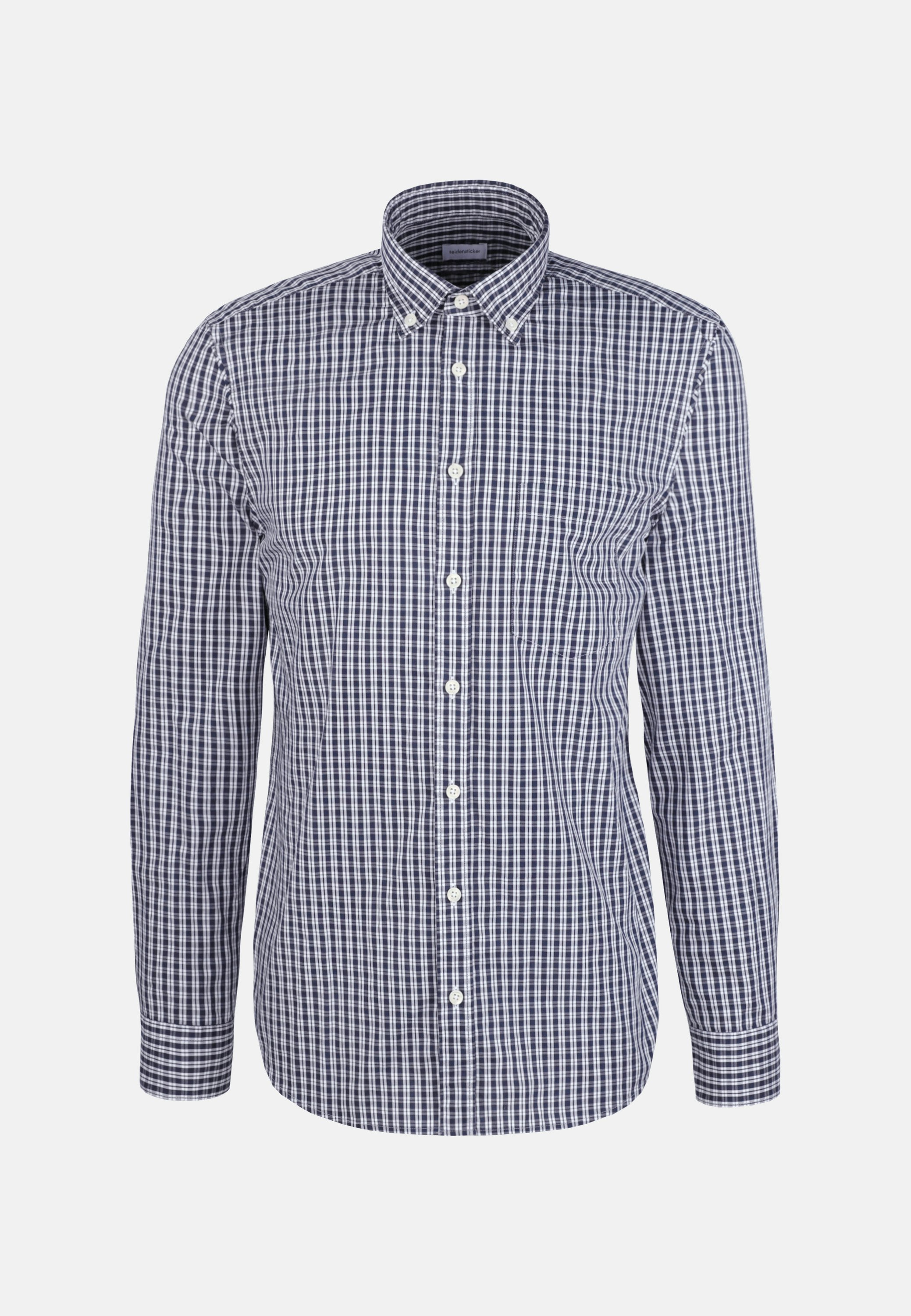 Maskuline Ästhetik: Das 1/1-Casual Hemd von Seidensticker aus der "CASUAL BUSINESS" Kollektion erweitert Ihre Garderobe um einen hochwertigen Look, der den Geist der Zeit trifft. Im klassisch-geraden Regular Schnitt bietet das Casual Hemd höchsten Tragekomfort und liegt weniger eng an. Das raffinierte Karo-Muster verleiht dazu die passenden modischen Nuancen. Smarte Modernität mit formellen und legeren Aspekten prägt dieses Hemd von Seidensticker. Hervorragend herausgearbeitet wird der sportlich-moderne Charakter durch einen Button-Down-Kragen.