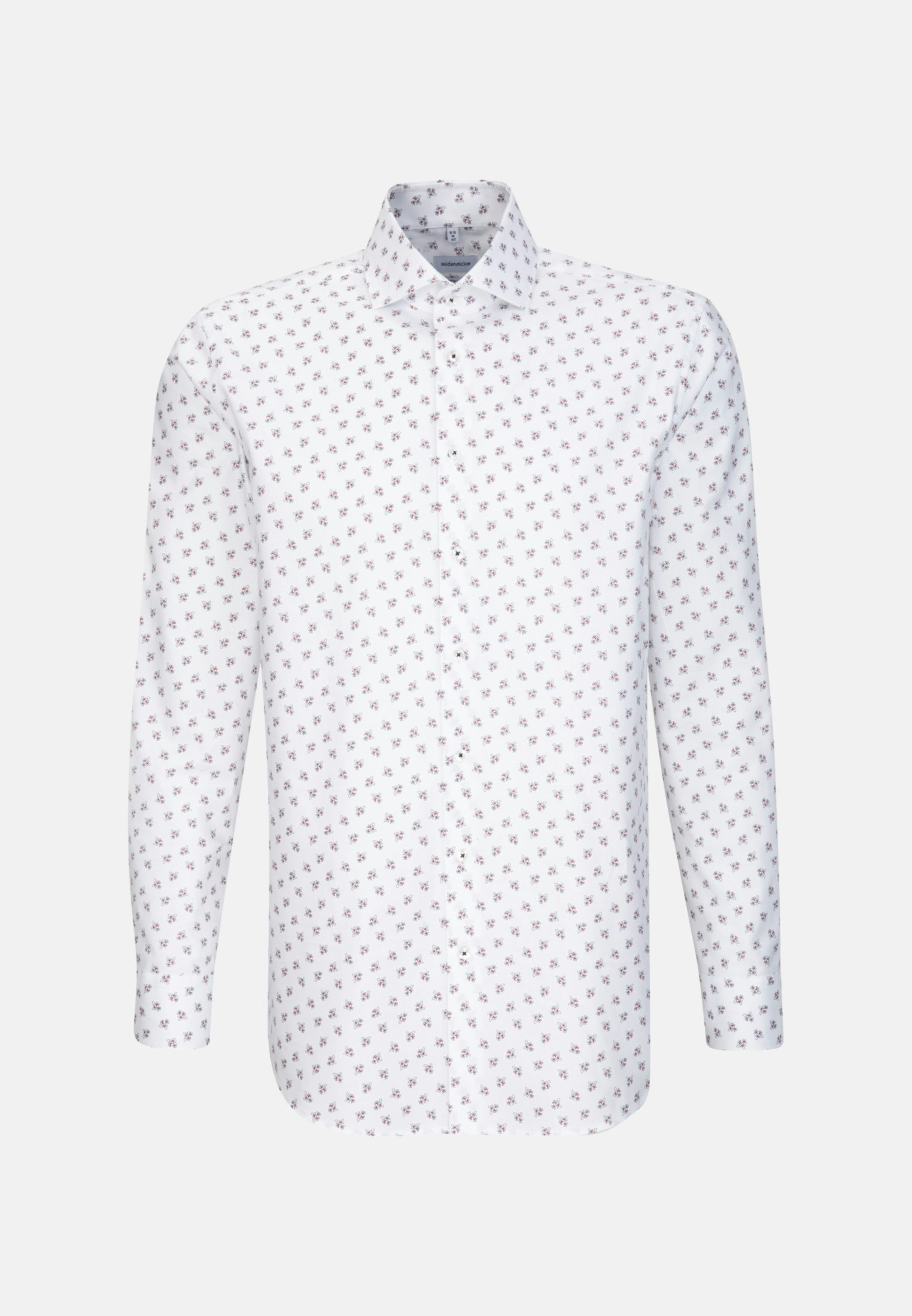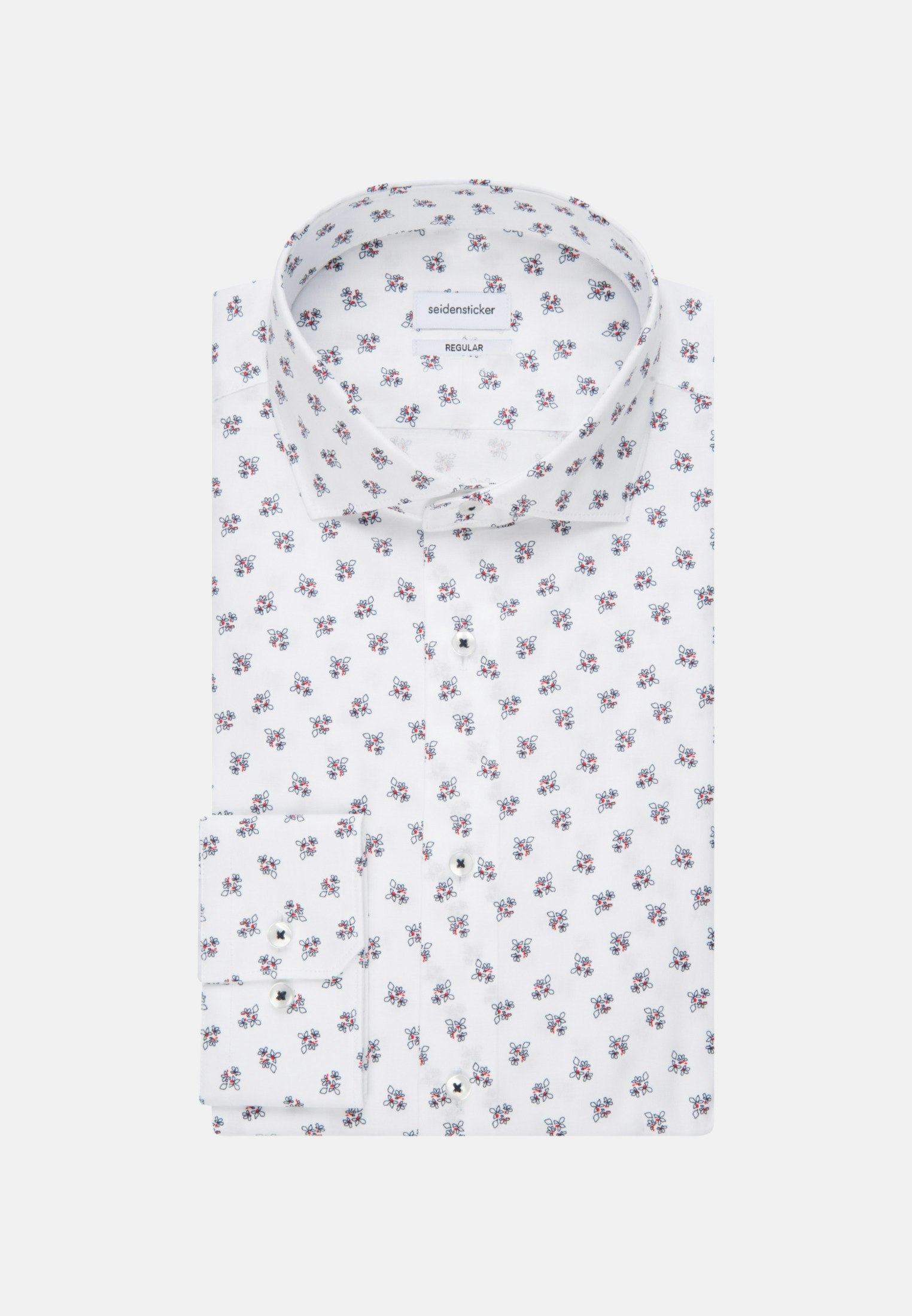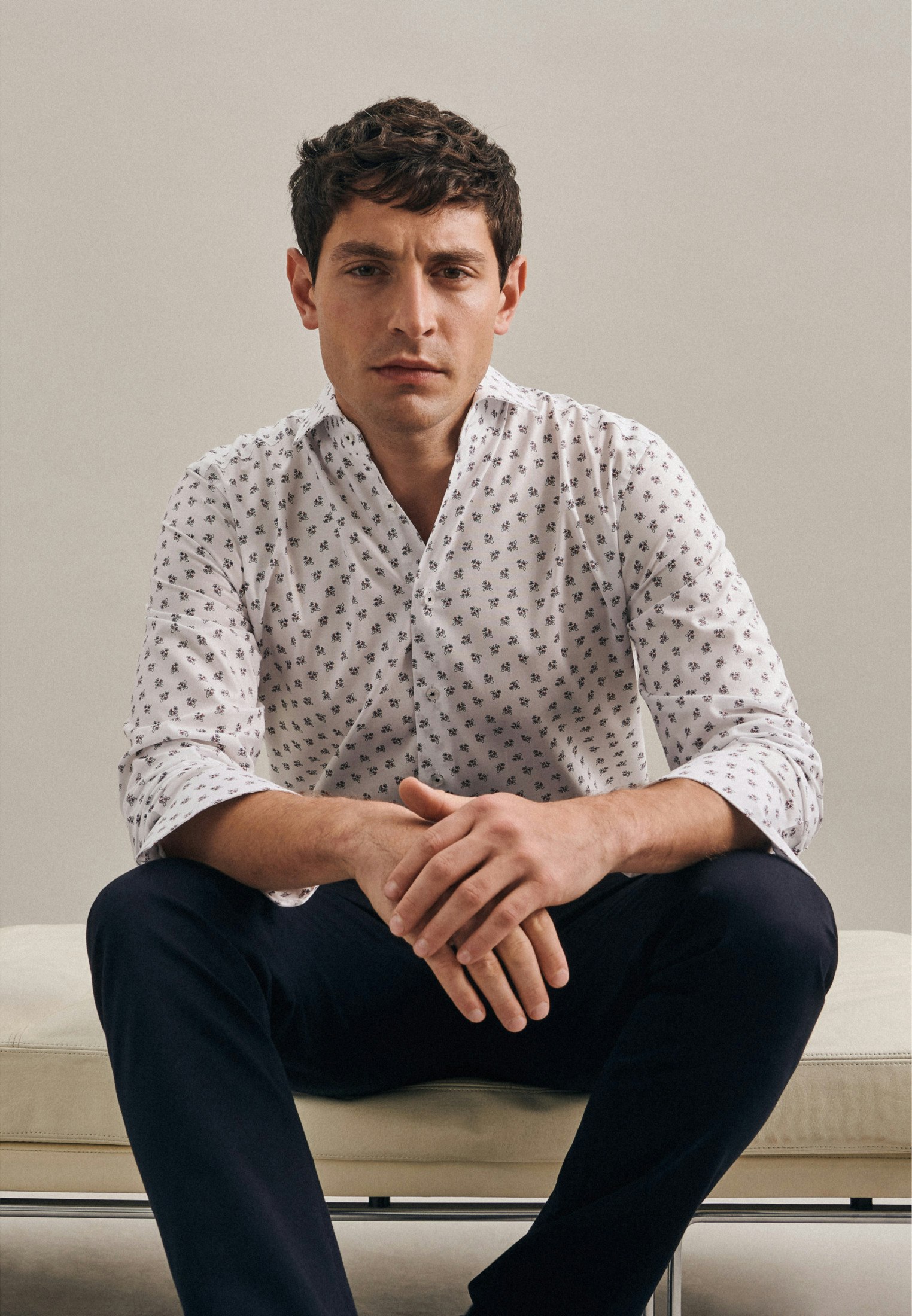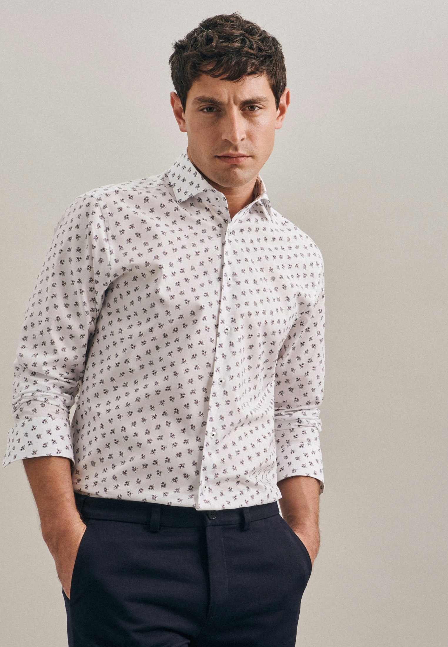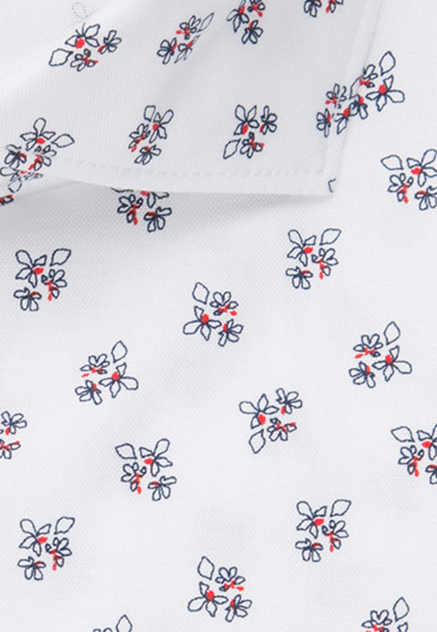 A distance respectable l'une de l'autre, de ravissantes grappes de fleurs stylisées bicolores animent le fond uni de cette chemise REGULAR de la marque Seidensticker. On aime le tissage à grains de son étoffe en 100% coton oxford de repassage facile, on succombe au charme de son col semi-italien et de sa coupe droite confortable...
