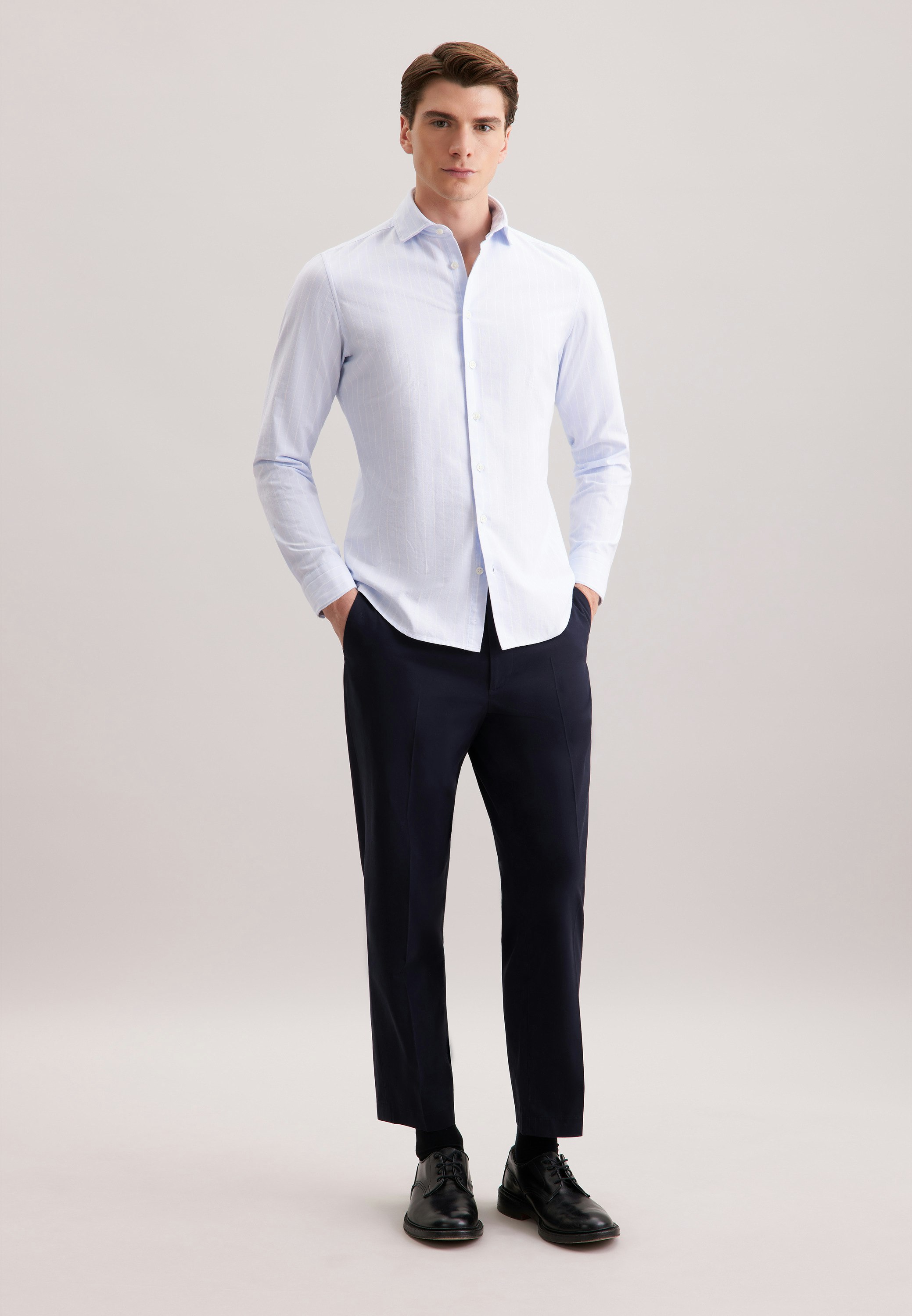 Maskuline Ästhetik: Das 1/1-Casual Hemd von Seidensticker aus der "SMART CASUAL" Kollektion erweitert Ihre Garderobe um einen hochwertigen Look, der den Geist der Zeit trifft. Es ist ein perfekter Begleiter, der sich ideal für Veranstaltungen, Büro, Homeoffice oder Freizeit eignet und zu vielen unterschiedlichen Looks passt. Mit einer dezenten Taillierung entspricht das Casual Hemd im Slim Fit dem derzeitigen Zeitgeist und fügt sich perfekt in jedes Outfit ein. Das raffinierte Gestreift-Muster setzt optische Akzente. Smarte Modernität mit formellen und lockeren Aspekten zeichnet dieses Hemd von Seidensticker aus. Dank des Kentkragens wird der universelle Business-Charakter betont.