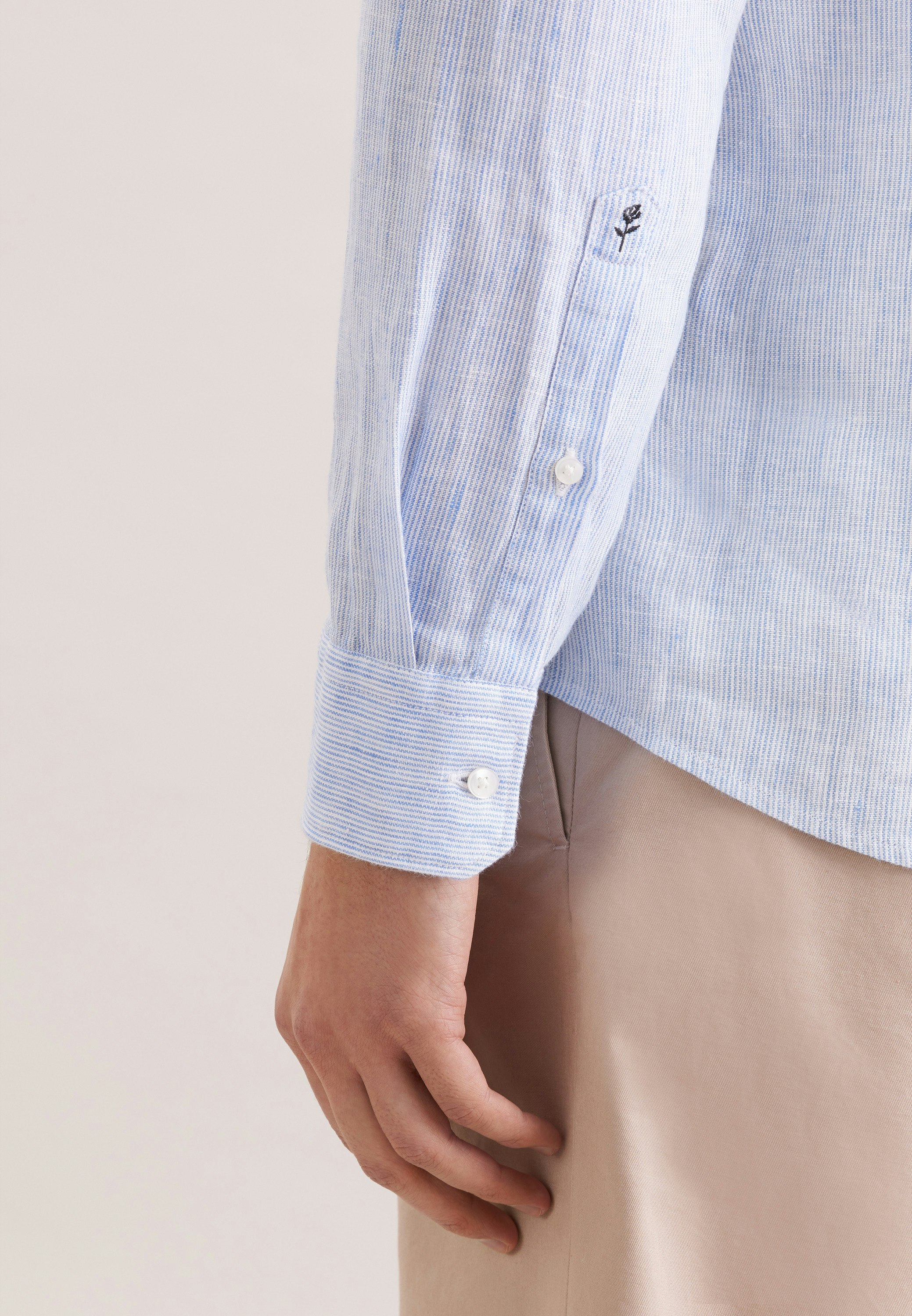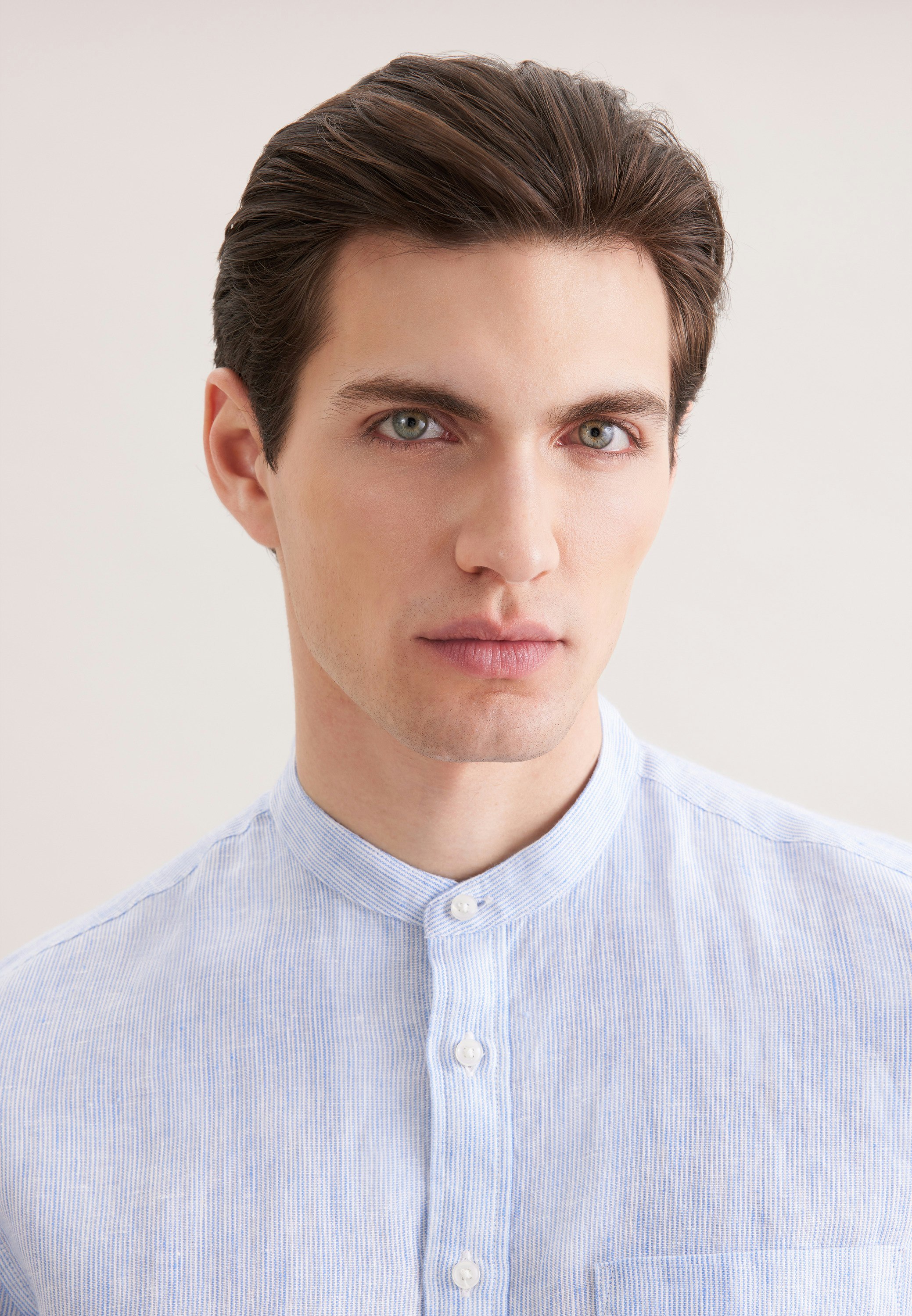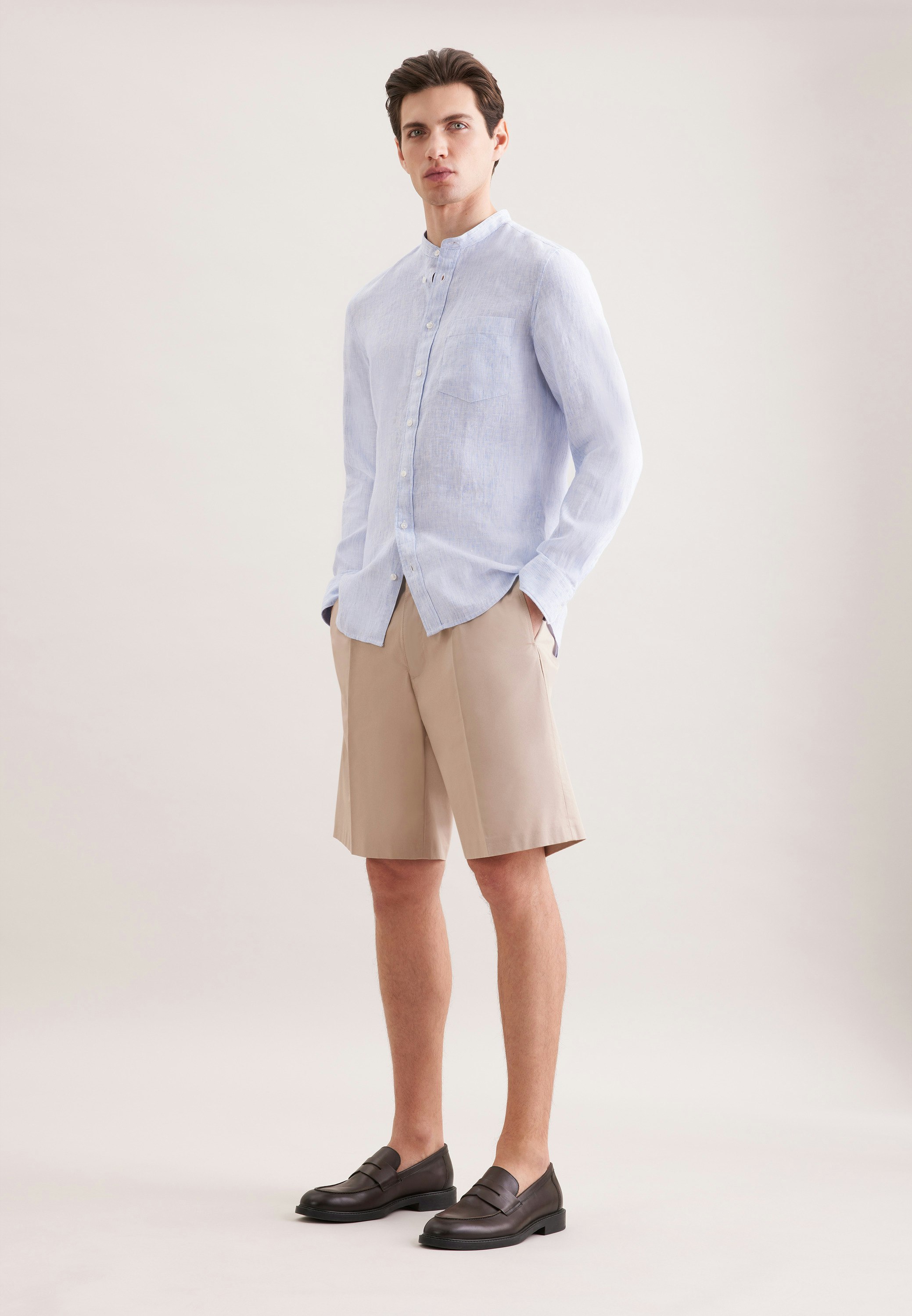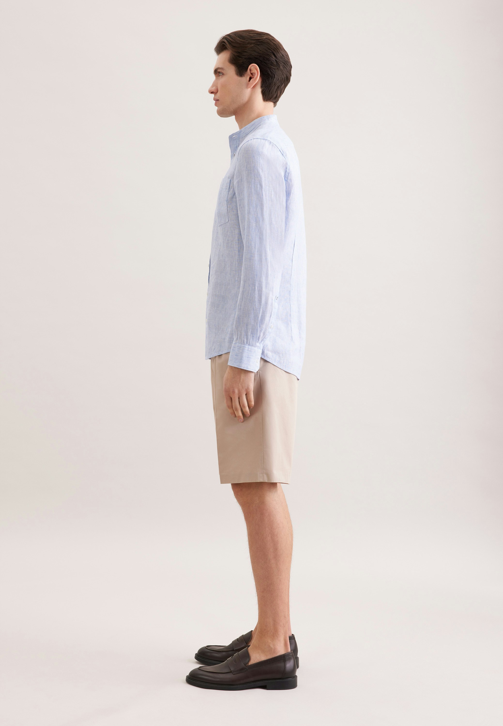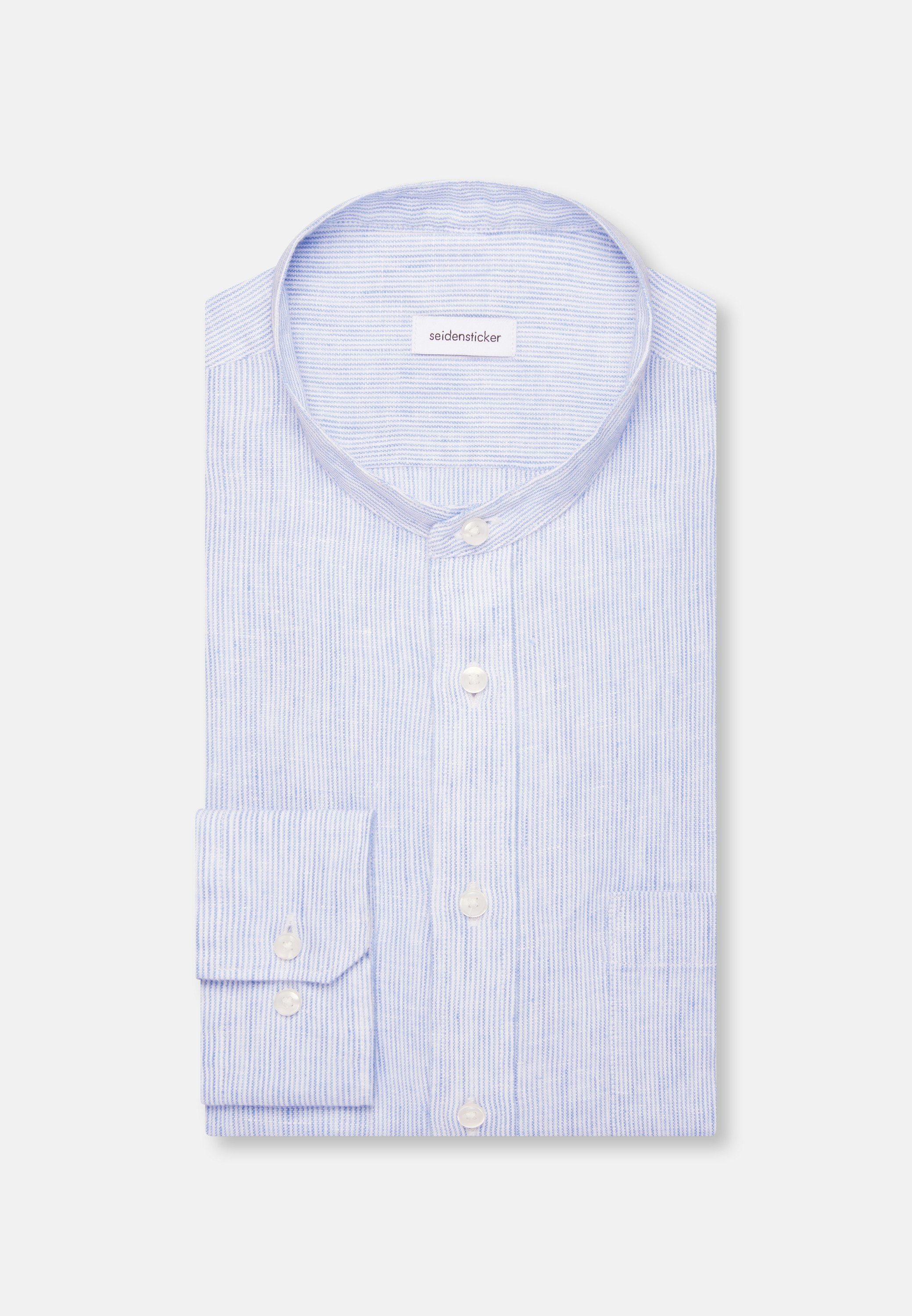 Maskuline Ästhetik: Das 1/1-Leinenhemd von Seidensticker aus der "SMART LINEN" Kollektion erweitert Ihre Garderobe um einen hochwertigen Look, der den Geist der Zeit trifft. Ob Freizeit oder Sommer - es ist ein eleganter Begleiter, der sich leicht kombinieren lässt. In Slim Fit zeigt sich das Leinenhemd äußerst figurbetont. Das schicke Gestreift-Muster ist eine stilvolle Ergänzung. Smarte Modernität mit formellen und lockeren Aspekten zeichnet dieses Hemd von Seidensticker aus. Besonders hervorgehoben wird der nostalgisch-smarte Charakter durch einen Stehkragen.