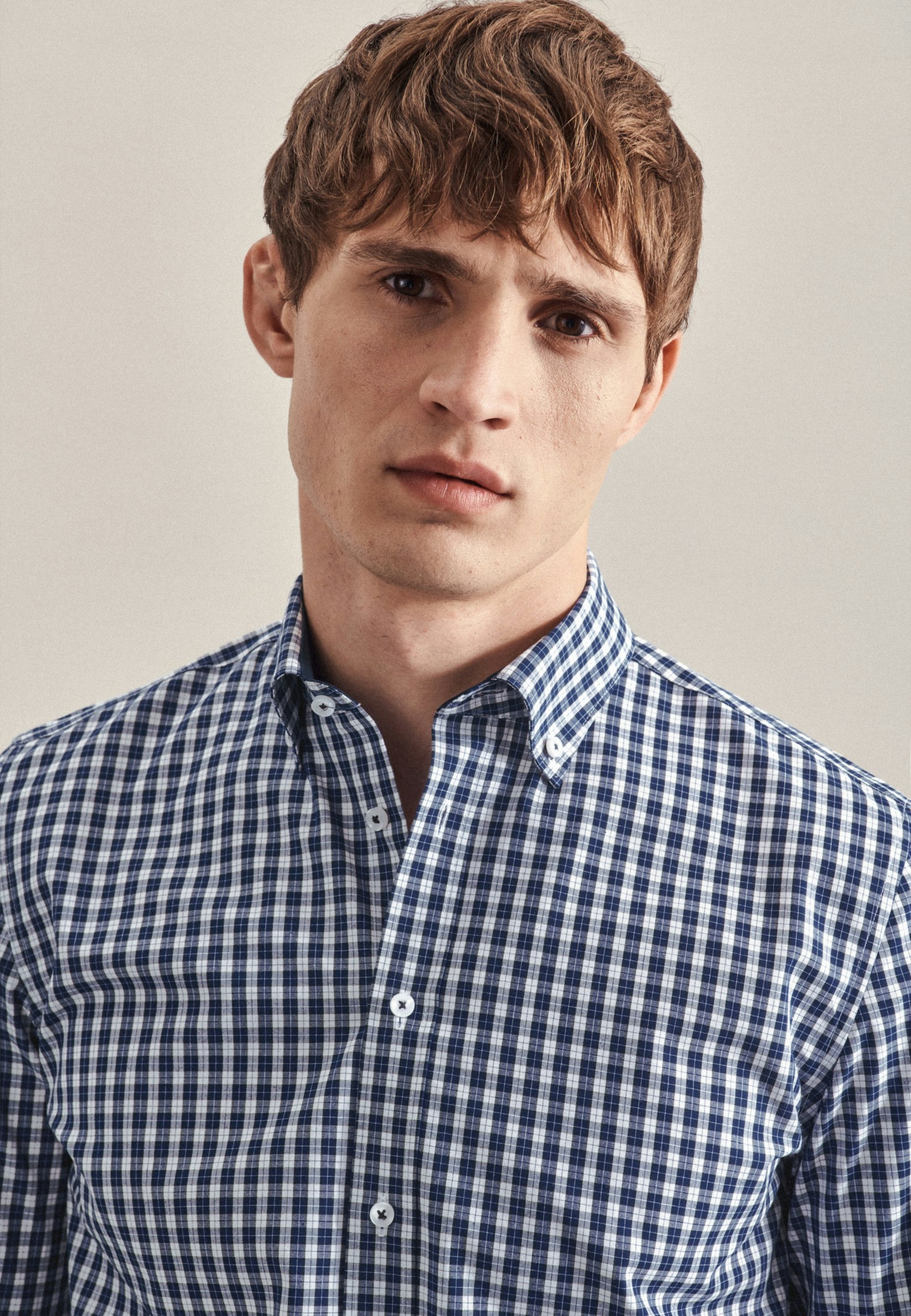Frais et lumineux, le petit carreau de cette chemise X-SLIM de la marque Seidensticker est rejoint par la prestance d'un joli col boutonné. Sa coupe extra-slim très près du corps est taillée dans une belle étoffe en 100% coton popeline dotée de la technologie sans repassage.
