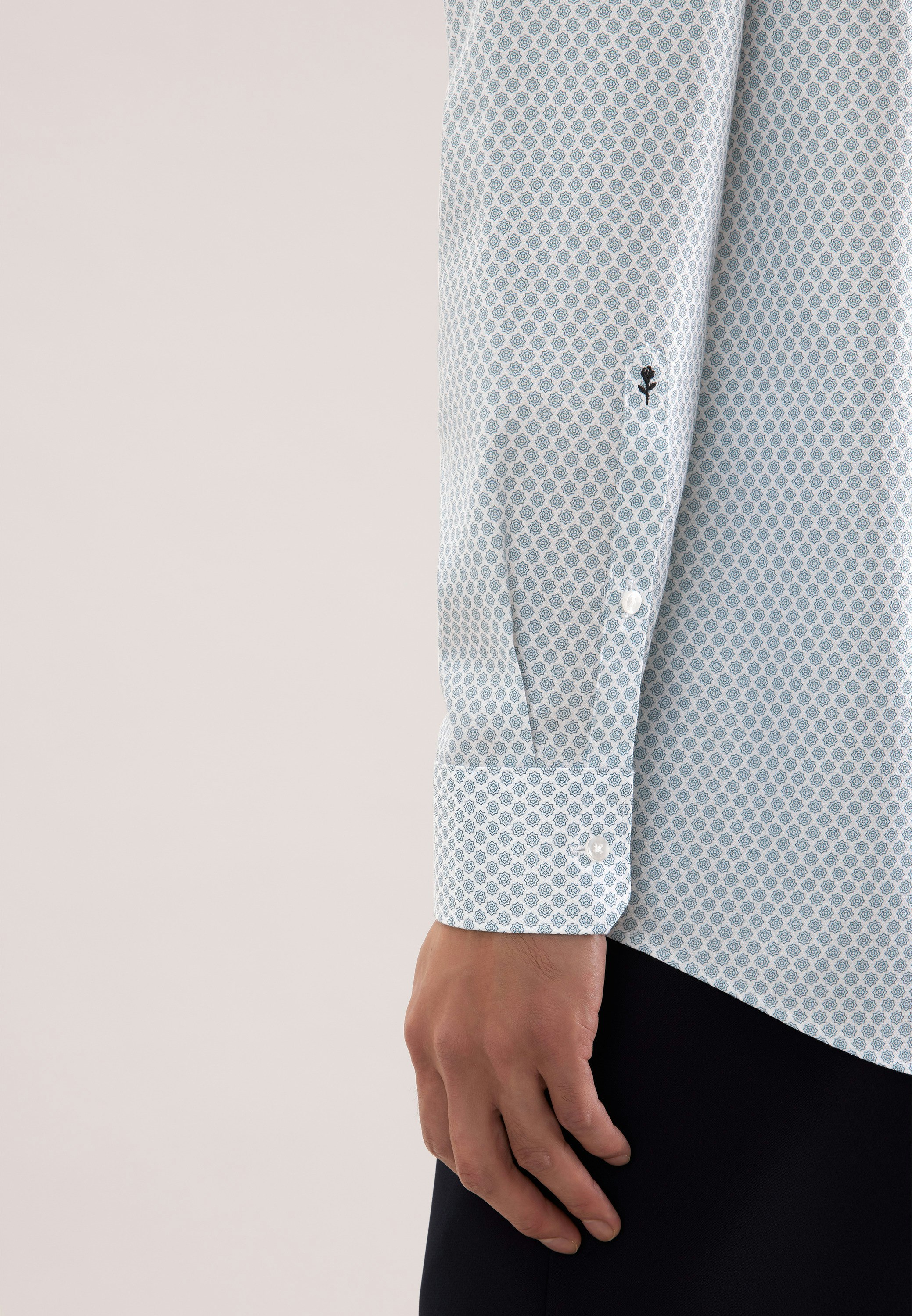 Die Bestickung erfolgt auf der Manschette des rechten Ärmels. Die gezeigte Abbildung dient lediglich zur Vorschau und kann von Ihrer tätsächlichen Auswahl abweichen.