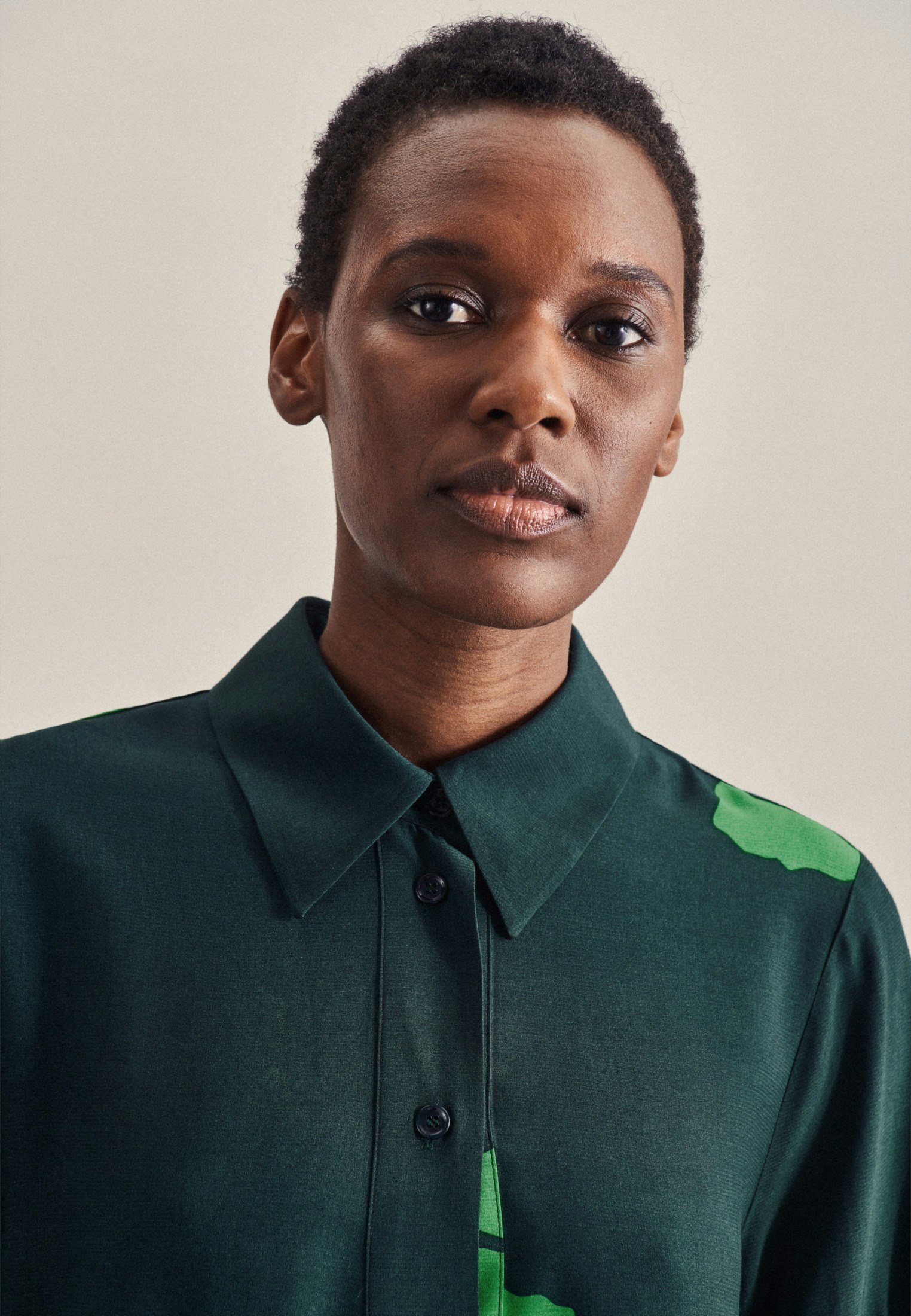 Komplettiert Ihr Outfit und darf in keiner Garderobe fehlen: Diese Hemdbluse aus der "The Statement Prints" Kollektion von Seidensticker überzeugt durch feminine Eleganz. Der gewebte Krepp ist aus 100% Viskose - die perfekte Leinwand für Ihre individuellen Kombinationen. Durch das Druck-Muster ist Ihr neues Kleidungsstück elegant und zugleich modisch. Ein zeitloses Basic, das nicht nur modisches Know-How sondern auch feminines Selbstbewusstsein vermittelt. Bei dieser Langarm-Hemdbluse werden Stil und Eleganz hervorgehoben. Hervorragend hervorgehoben wird der feminin-klassische Charakter durch einen Hemdblusenkragen. Edle Perlmuttknöpfe überzeugen als dezente Details.