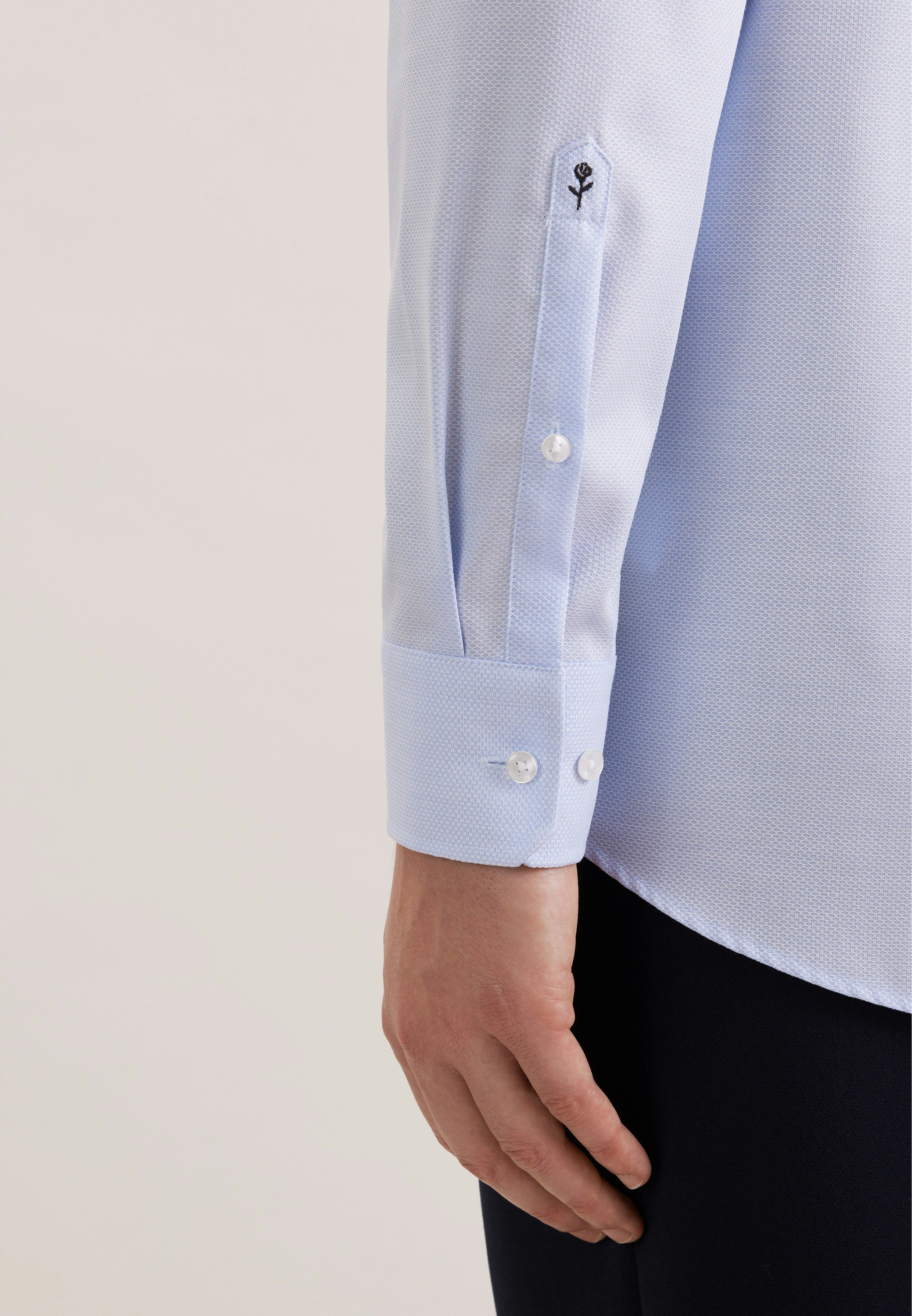 Die Bestickung erfolgt auf der Manschette des rechten Ärmels. Die gezeigte Abbildung dient lediglich zur Vorschau und kann von Ihrer tätsächlichen Auswahl abweichen.
