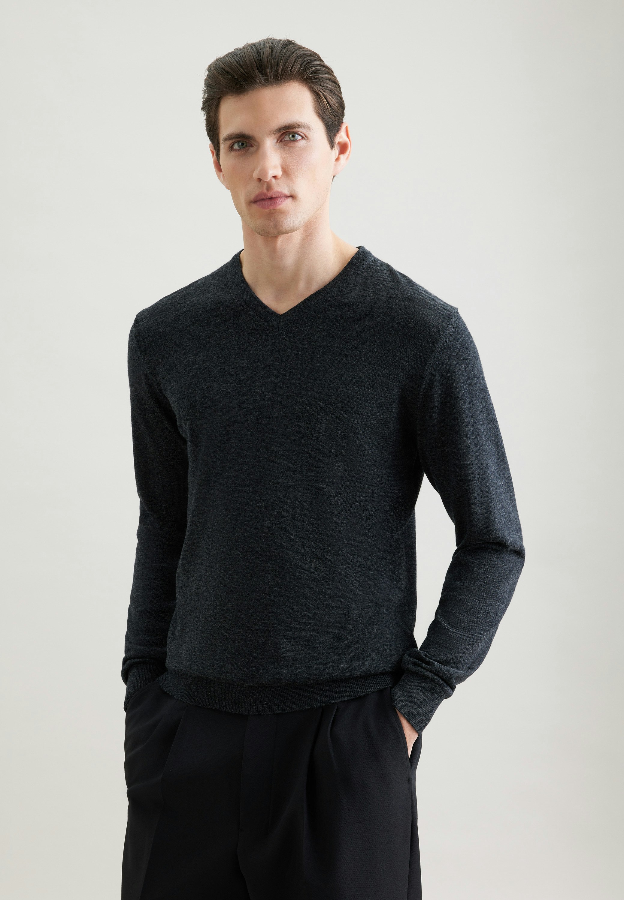 Bequem und dennoch stylish: Sorgen Sie für ein stilvolles Erscheinungsbild mit dem Pullover von Seidensticker aus der "SMART KNIT" Kollektion. Das gewebte Plain Knitted ist aus 100% Wolle - die ideale Leinwand für Ihre ansprechenden Kombinationen. Das Uni-Muster ist eine stilvolle Ergänzung. Ein Basic wird neu interpretiert: Der stilsichere Pullover verbindet Moderne und Stilsicherheit. Stilsicher und elegant liegen Sie mit diesem Langarm-Pullover immer goldrichtig. Ein V-Neck betont den smarten Charakter.