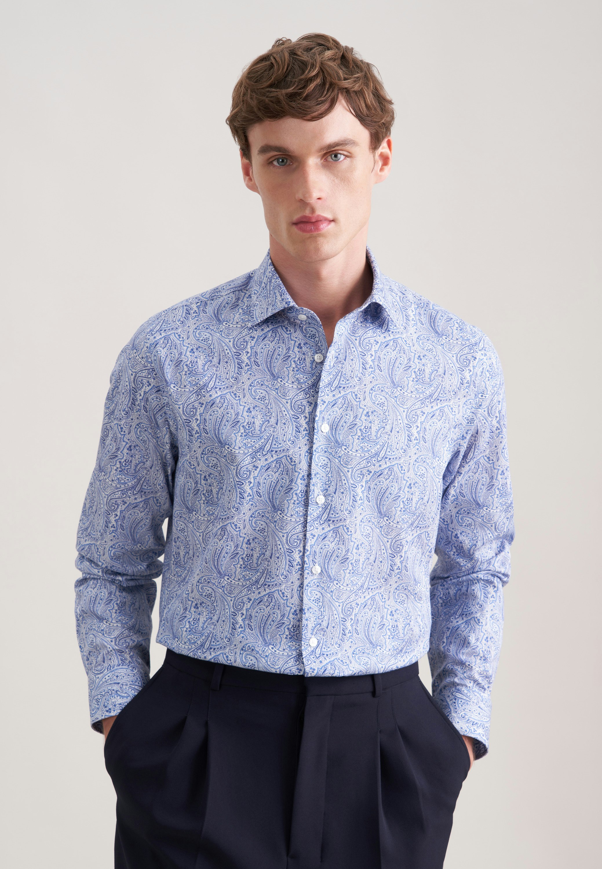 Maskuline Ästhetik: Das 1/1-Business Hemd von Seidensticker aus der "CLASSIC ESSENTIALS" Kollektion erweitert Ihre Garderobe um ein vielseitig einsetzbares Kleidungsstück. Mit einem figurbetonten Schnitt gibt das Business Hemd in der Passform Shaped Ihnen genug Raum, ohne zu eng anzuliegen. Durch das Druck-Muster ist Ihr neues Kleidungsstück die perfekte Wahl für geschmackvolle Looks. Dieses Hemd verkörpert zeitlose Eleganz mit modernem Schliff. Ein Kentkragen betont den universellen Business-Charakter.