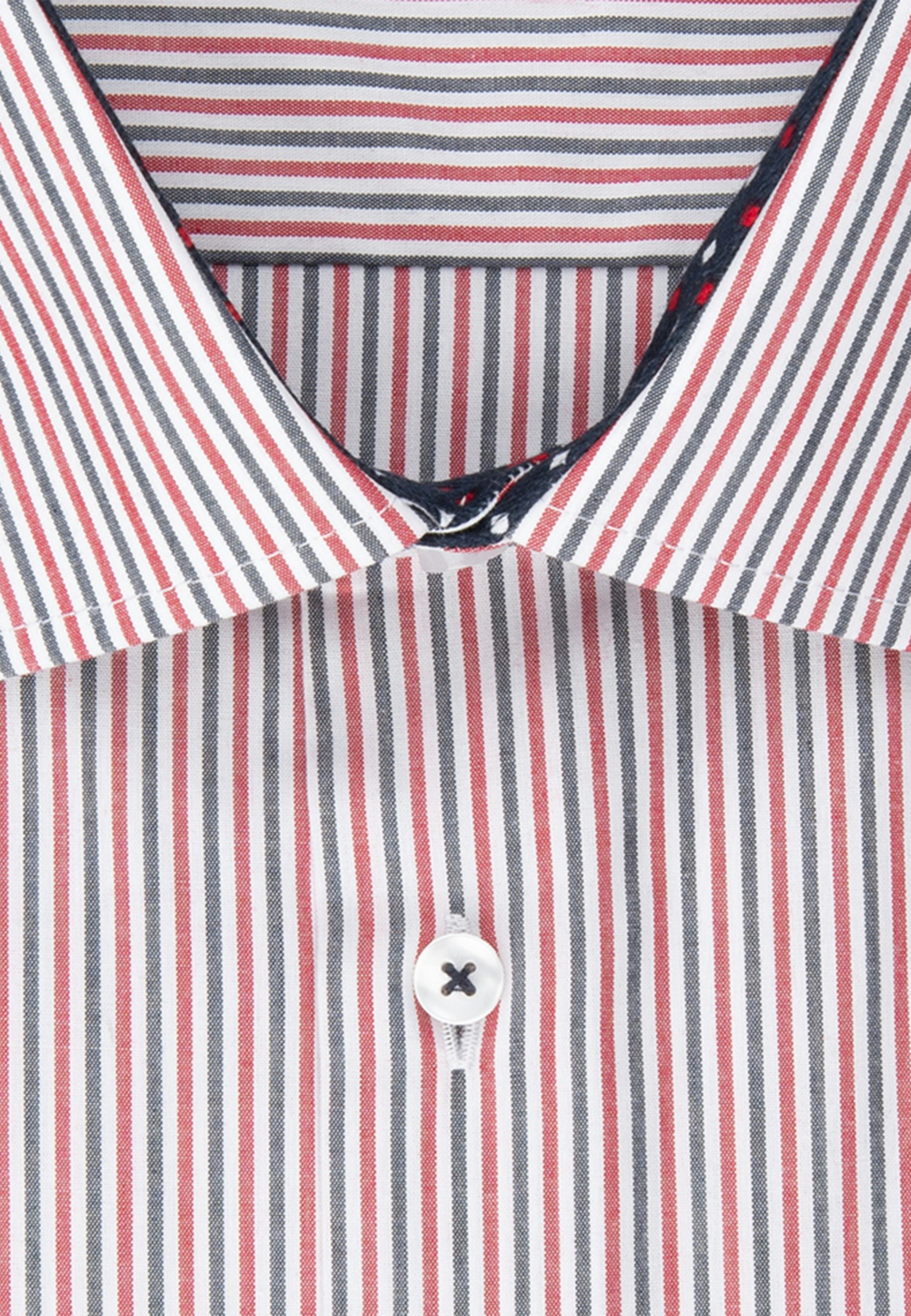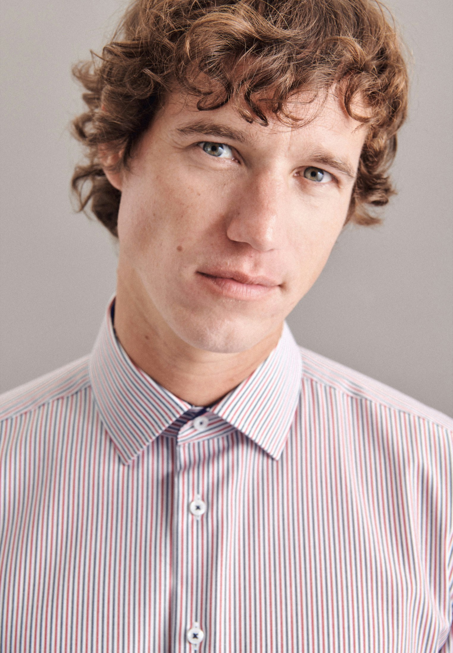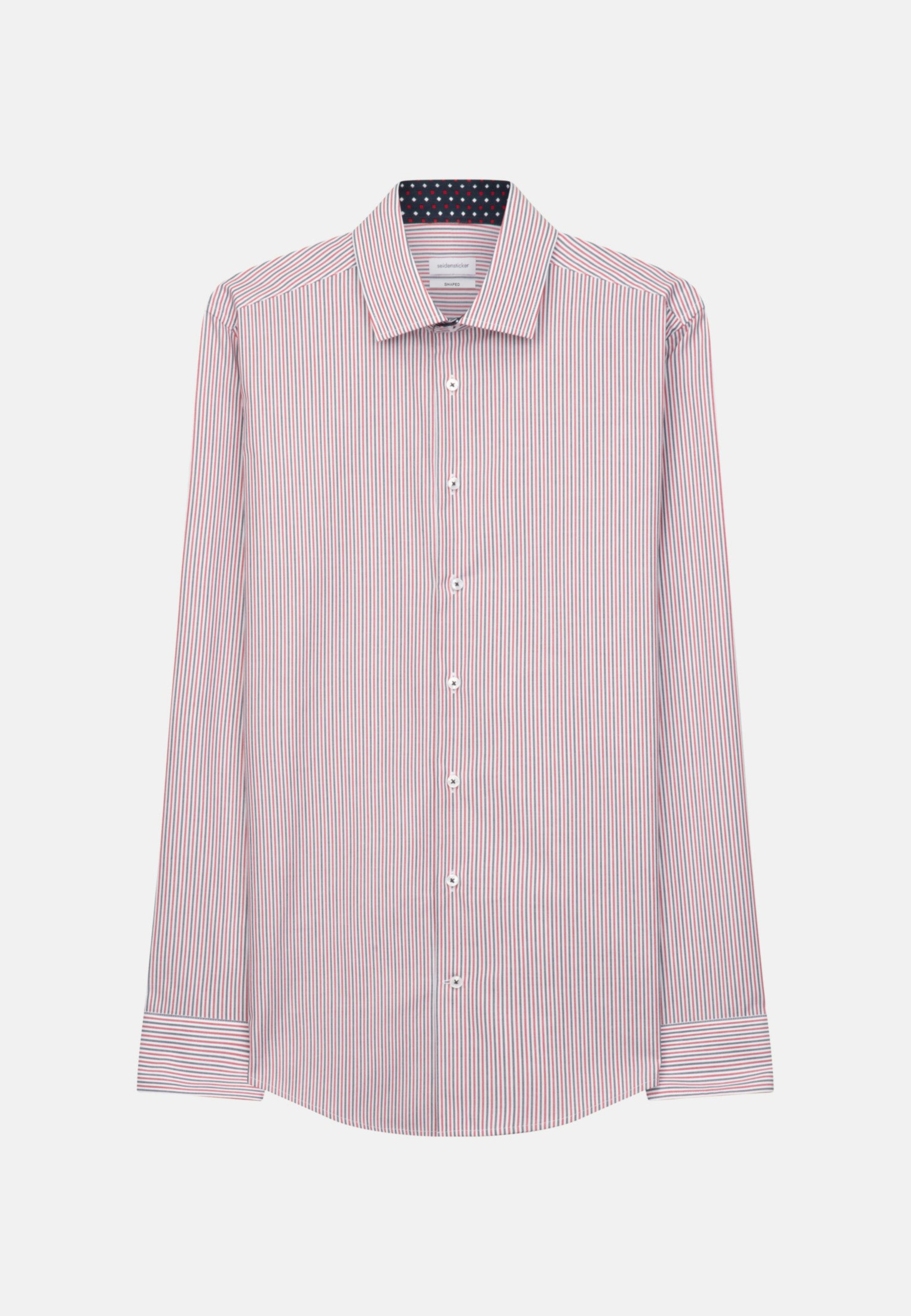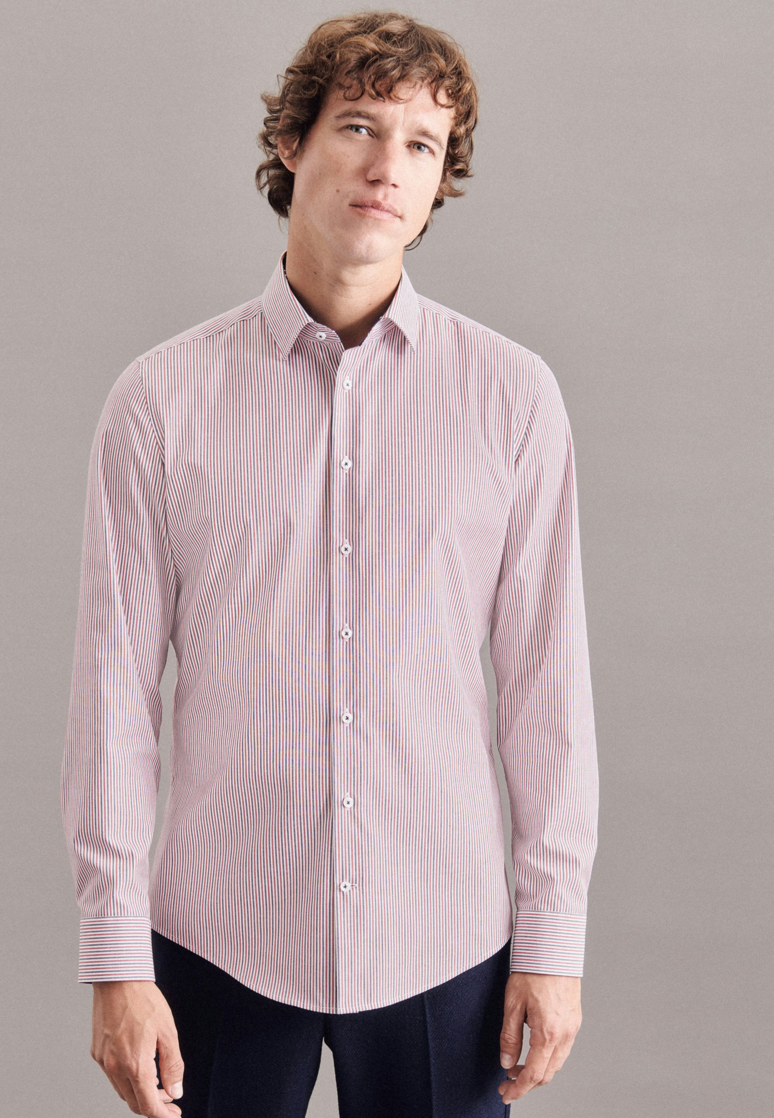 Vervollständigt Ihr Outfit und sollte in keiner Garderobe fehlen: Dieses Business Hemd aus der "SMART ESSENTIALS" Kollektion von Seidensticker überzeugt durch maskuline Ästhetik. Ob Veranstaltungen, Homeoffice, Freizeit oder Büro - es ist ein eleganter Begleiter, der sich einfach kombinieren lässt. Die Webart Popeline aus 100% Baumwolle ist mit hoher Dichte gewebt und daher besonders widerstandsfähig, was sie perfekt für pflegeleichte Business-Outfits macht. Mit einem figurbetonten Schnitt gibt das Business Hemd in der Passform Shaped Ihnen genügend Raum, ohne zu eng zu sein. Das charakteristische Streifen-Muster mit Patch in Kragen und Manschetten macht es zu einem absoluten Must-have. Dieses Hemd verkörpert zeitlose Eleganz mit modernem Stil. Für Liebhaber von eleganten Looks ist dieses Langarm-Business Hemd eine sehr gute Wahl. Es wird durch weitenverstellbare Manschetten abgerundet. Durch den Kentkragen wird der universelle Business-Charakter betont.