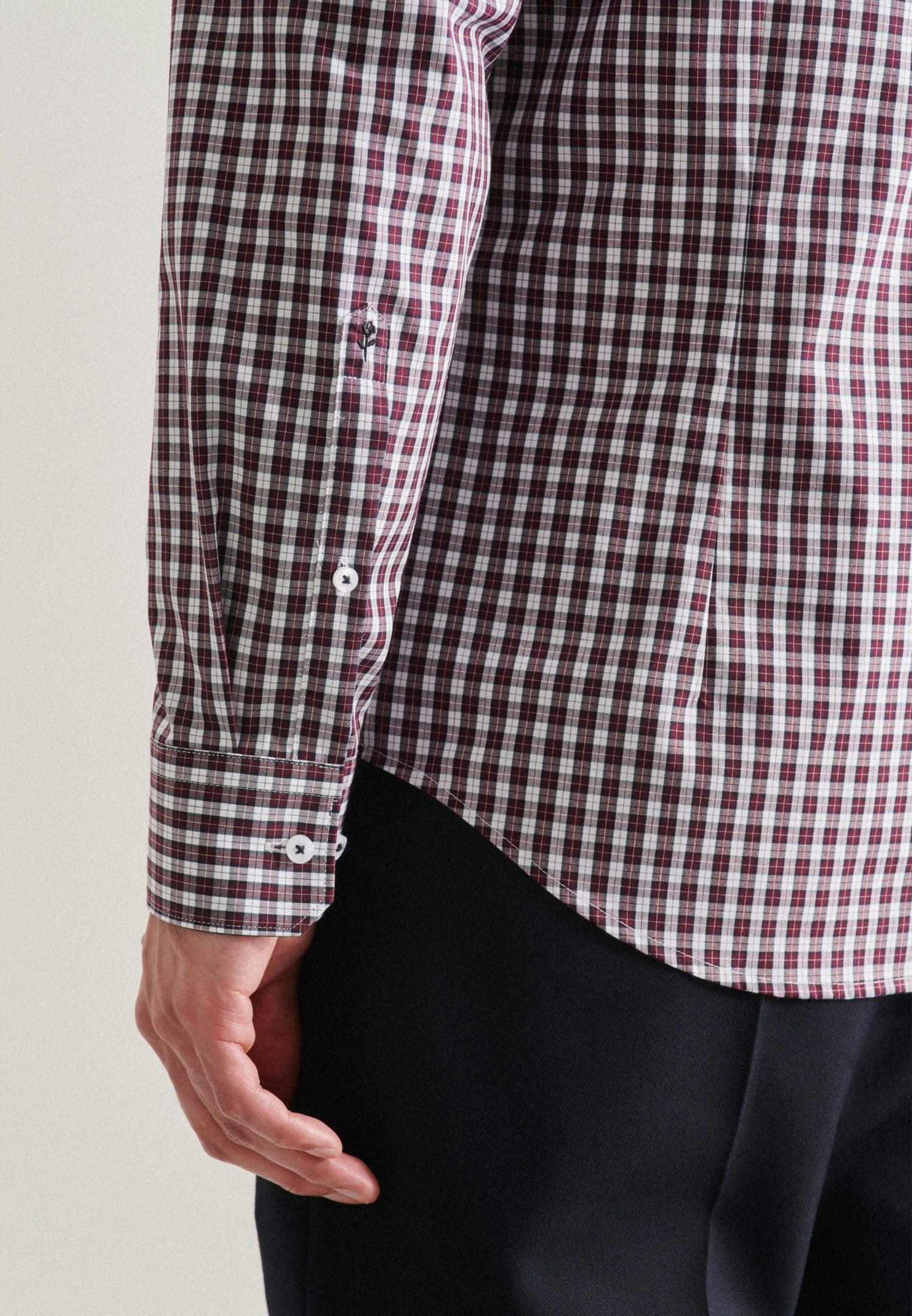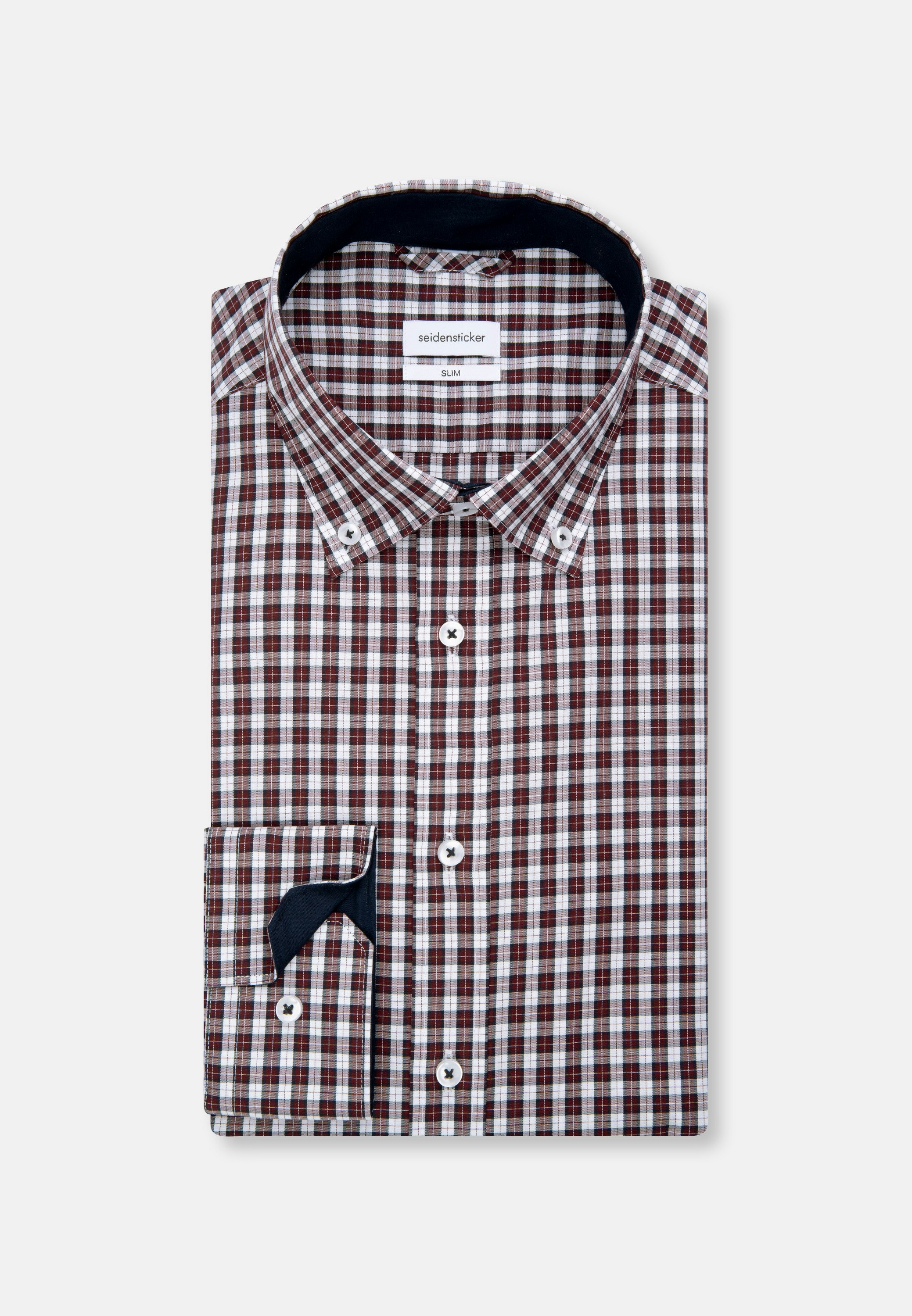 Maskuline Ästhetik: Das Business Hemd von Seidensticker aus der "SMART ESSENTIALS" Kollektion erweitert Ihre Garderobe um einen hochwertigen Look, der den Geist der Zeit trifft. Es kann in der Freizeit, im Homeoffice, im Büro oder bei Veranstaltungen zu Ihrer schlichten Eleganz beitragen. Popeline wird mit hoher Dichte gewebt und ergibt daher ein besonders widerstandsfähiges Material. In Kombination mit 100% Baumwolle ist er perfekt für pflegeleichte Business-Outfits. Als Slim Fit ist das Business Hemd recht schmal und figurbetont. Durch das Karo-Muster mit Patch in Kragen und Manschetten ist Ihr neues Kleidungsstück elegant und zugleich modisch. Balanceakt zwischen Klassik und Moderne: das smarte Seidensticker Hemd. Für Liebhaber von eleganten Looks ist dieses Langarm-Business Hemd exakt die richtige Wahl. Weitenverstellbare Manschetten perfektionieren das Gesamtbild. Dank des Button-Down-Kragens wird der sportlich-moderne Charakter besonders unterstrichen.