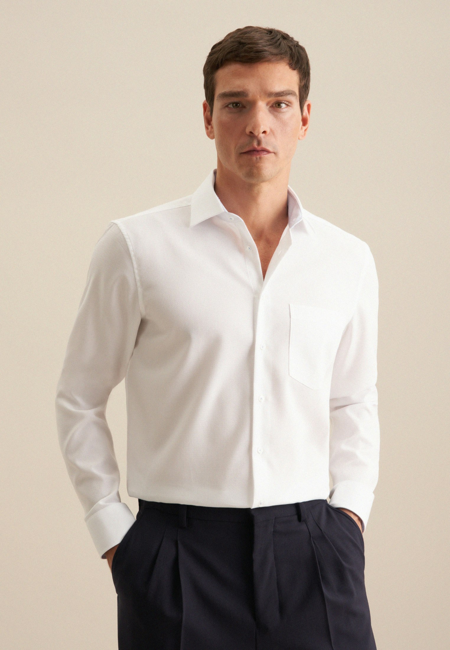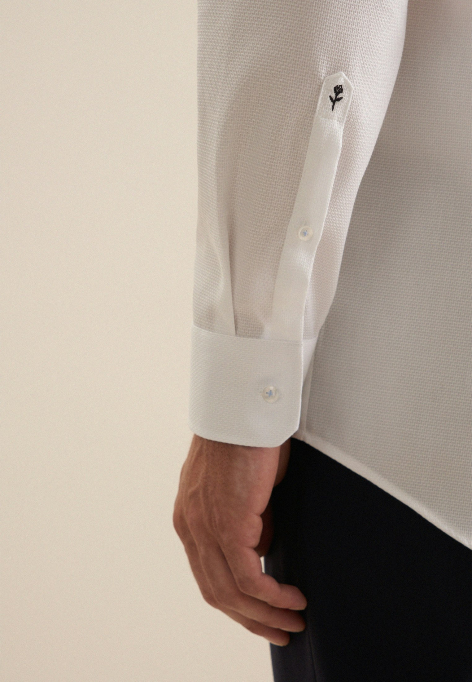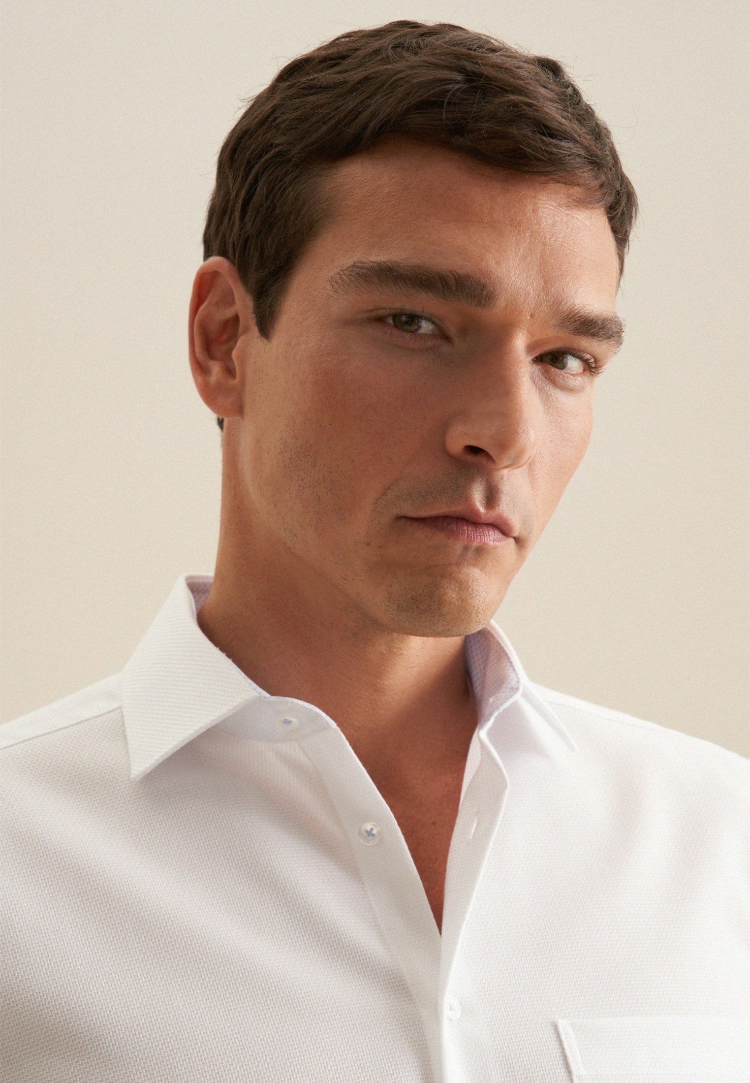 Masculine look - add variety and flair to your wardrobe with Seidensticker's opaque business shirt from our "SMART ESSENTIALS" collection. Whether you're working from home, going to events, enjoying some free time or heading to the office, our stylish business shirt goes with almost anything. Our structure is 100% cotton - the perfect fabric for your stylish dress sense. Our comfort fit makes for a relaxed and casual option. Your new business shirt is the perfect choice for stylish looks thanks to its small pattern pattern and contrasting details in the patch in collar and cuffs. This business shirt embodies timeless elegance with a modern touch. Look elegant and stylish in this long-sleeve business shirt. It also boasts adjustable cuffs. Plus a kent collar shows you mean business. A breast pocket is refreshingly subtle detail. This business shirt meets the high standards we place on our products in terms of the sustainable use of raw materials, responsible production and plastic-free packaging. Because social responsibility is our responsibility.