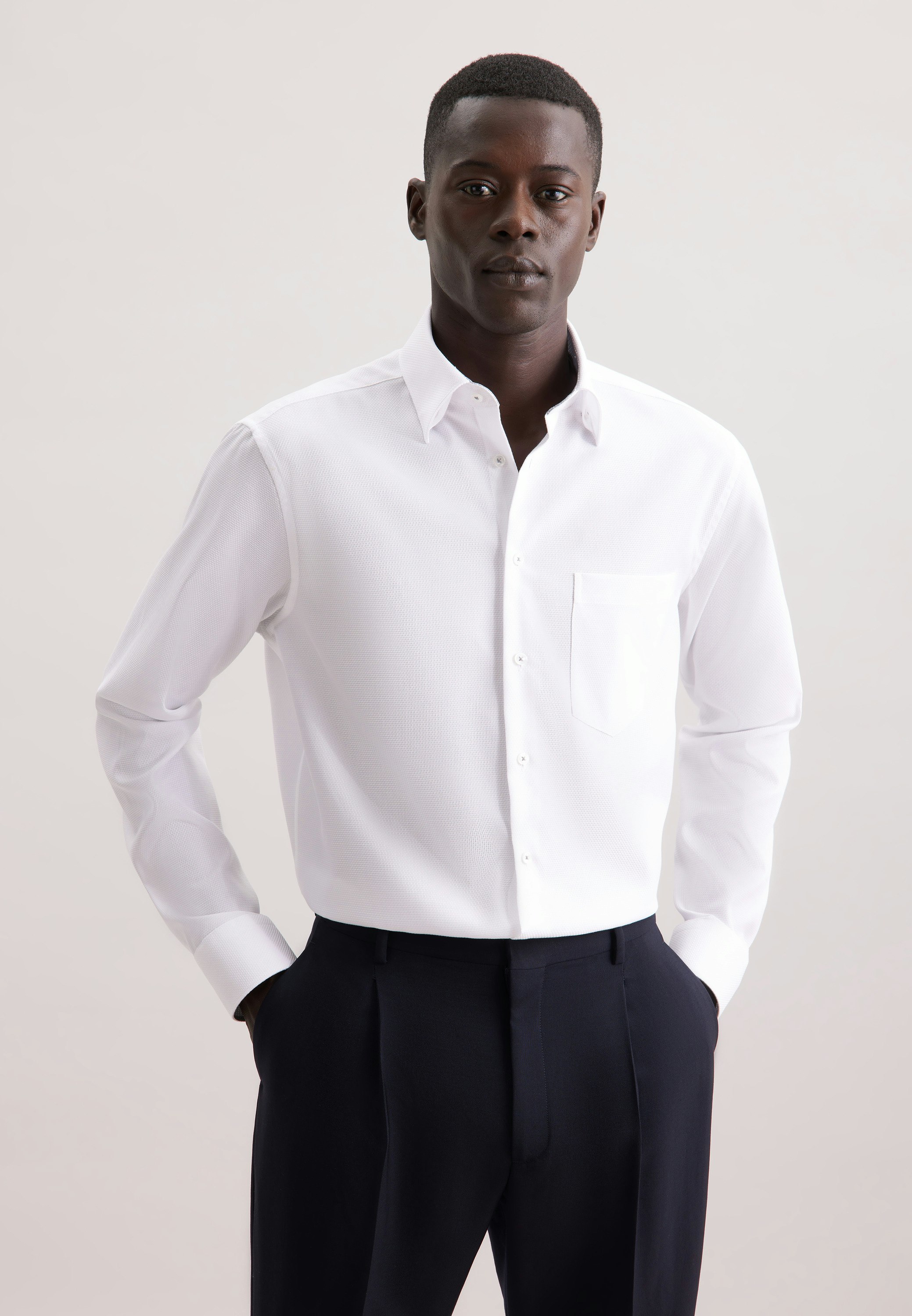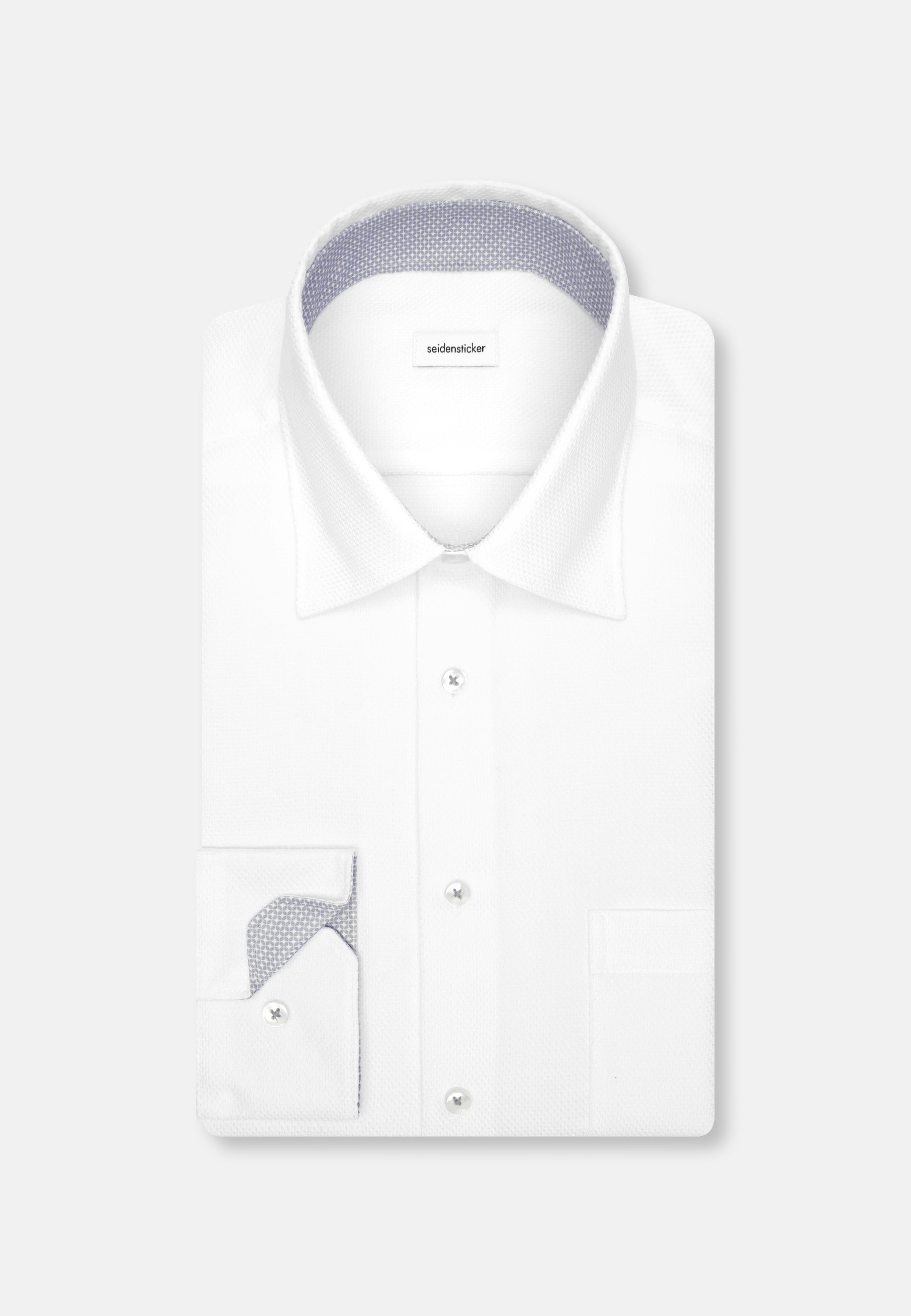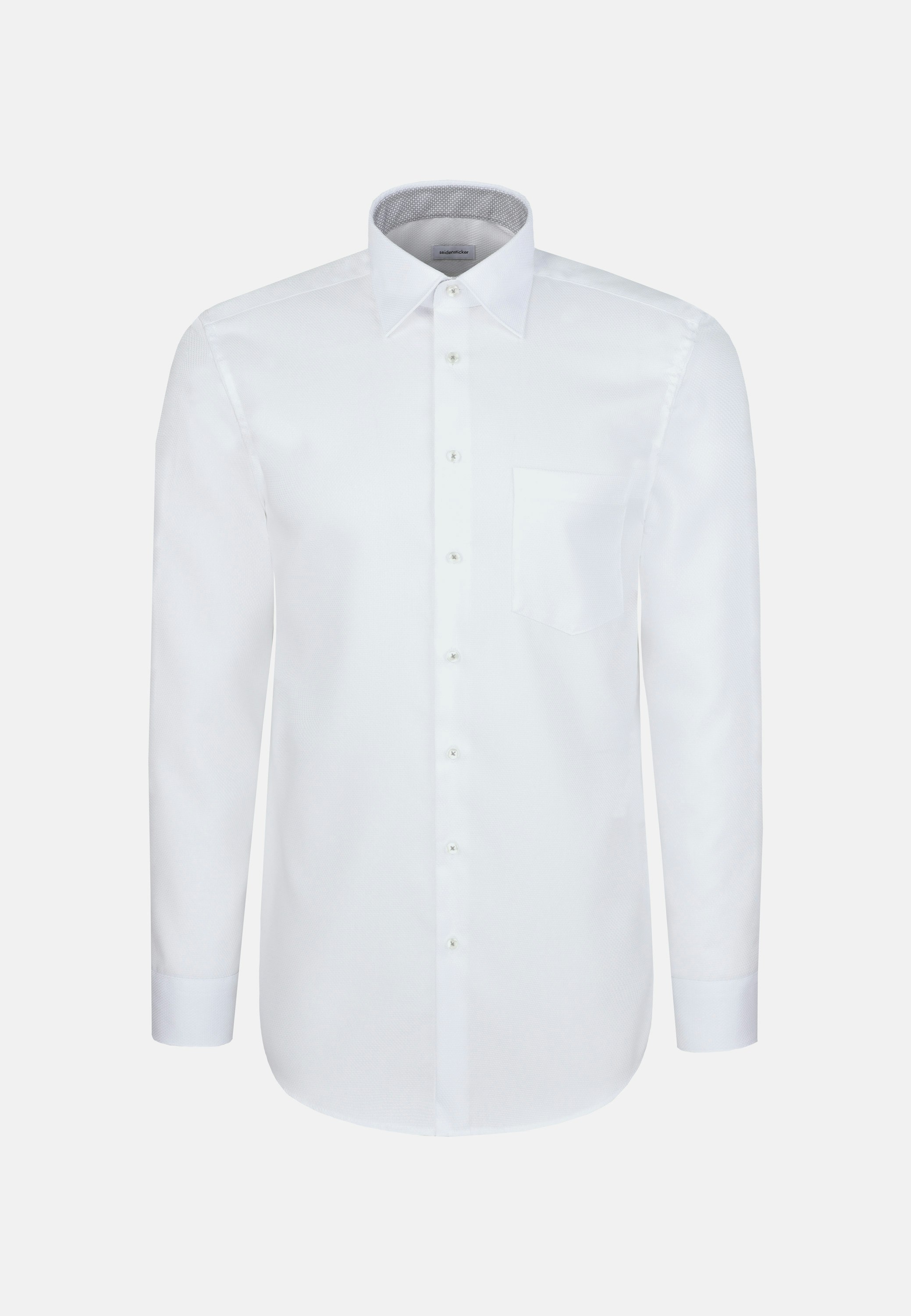 Complete any outfit with this must-have opaque 1/1-business shirt by Seidensticker - so you can turn heads. Our comfort fit is perfect for simple looks thanks to its relaxed design. Your new business shirt is the perfect choice for stylish looks thanks to its structure pattern and contrasting details in the Patch in collar and cuffs. Create a whole range of different outfits with this wonderful item. Plus a covered-button-down-collar so you can look smart. Refreshingly fine detail include a breast pocket.
