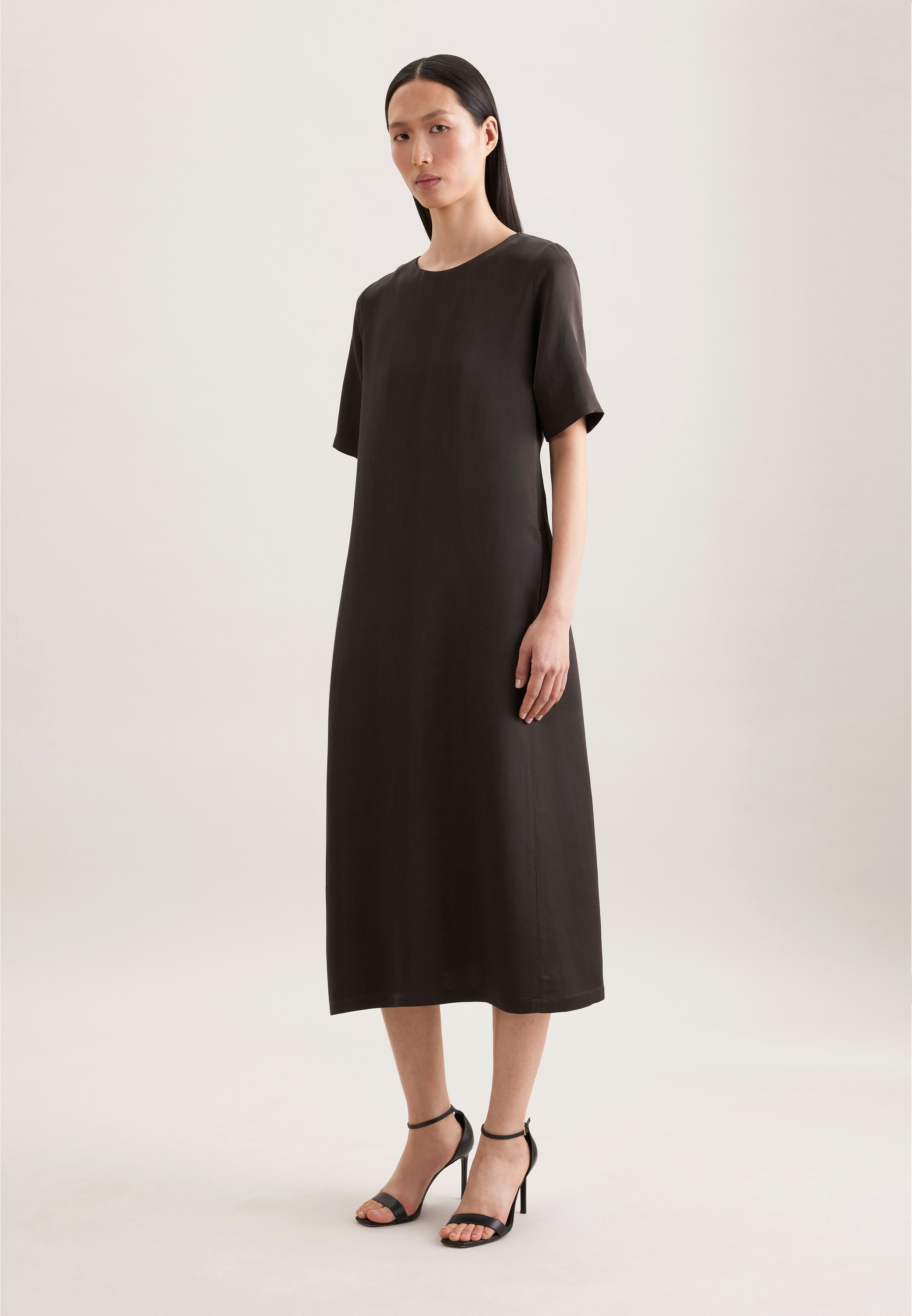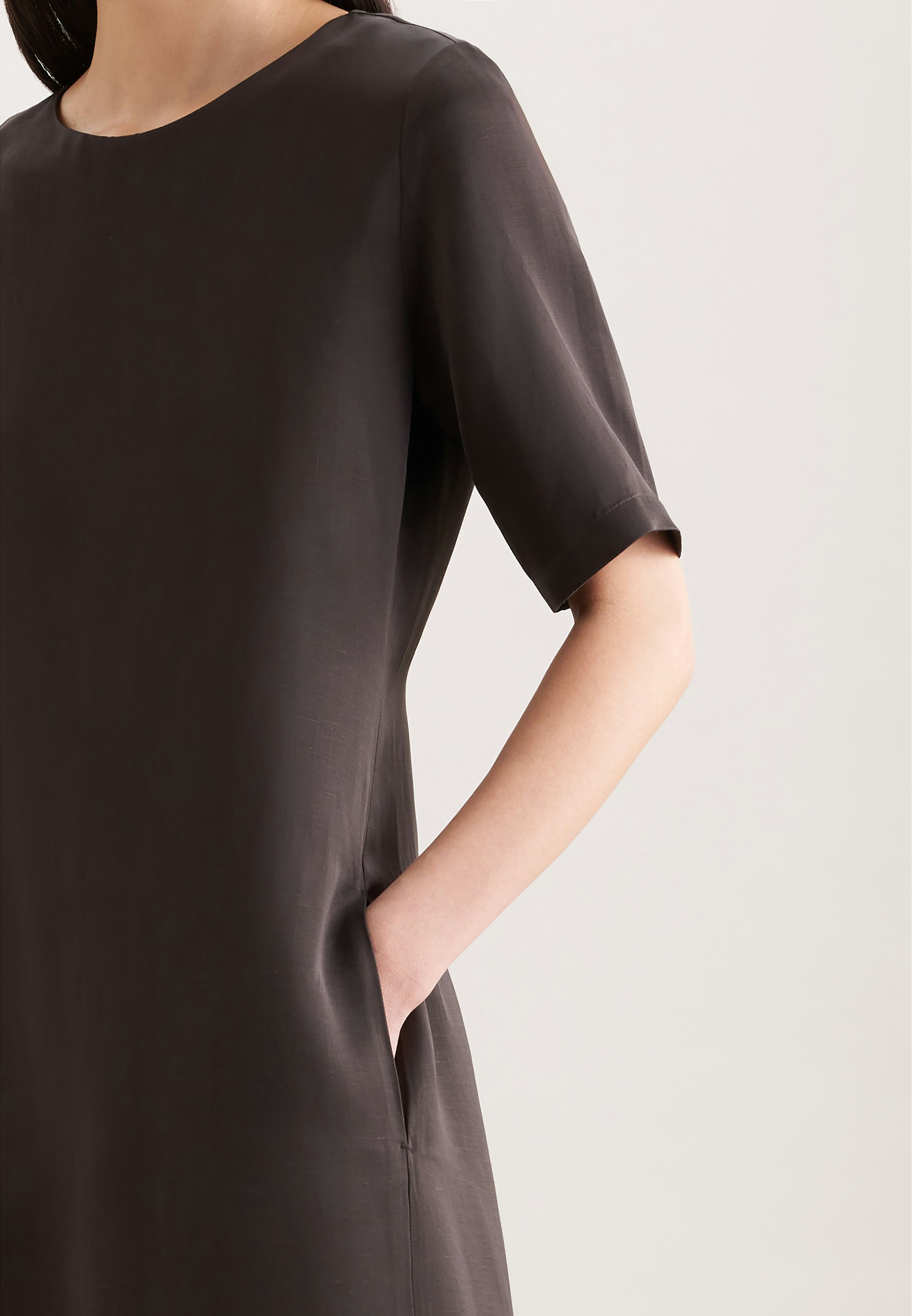 Stylish fit - look and feel great in this midi-dress. Try the dress in modern fit for unparalleled comfort- light, casual and not too tight. Level up your look with this stylish dress and start turning heads. Plus a Round neck for that smart look.