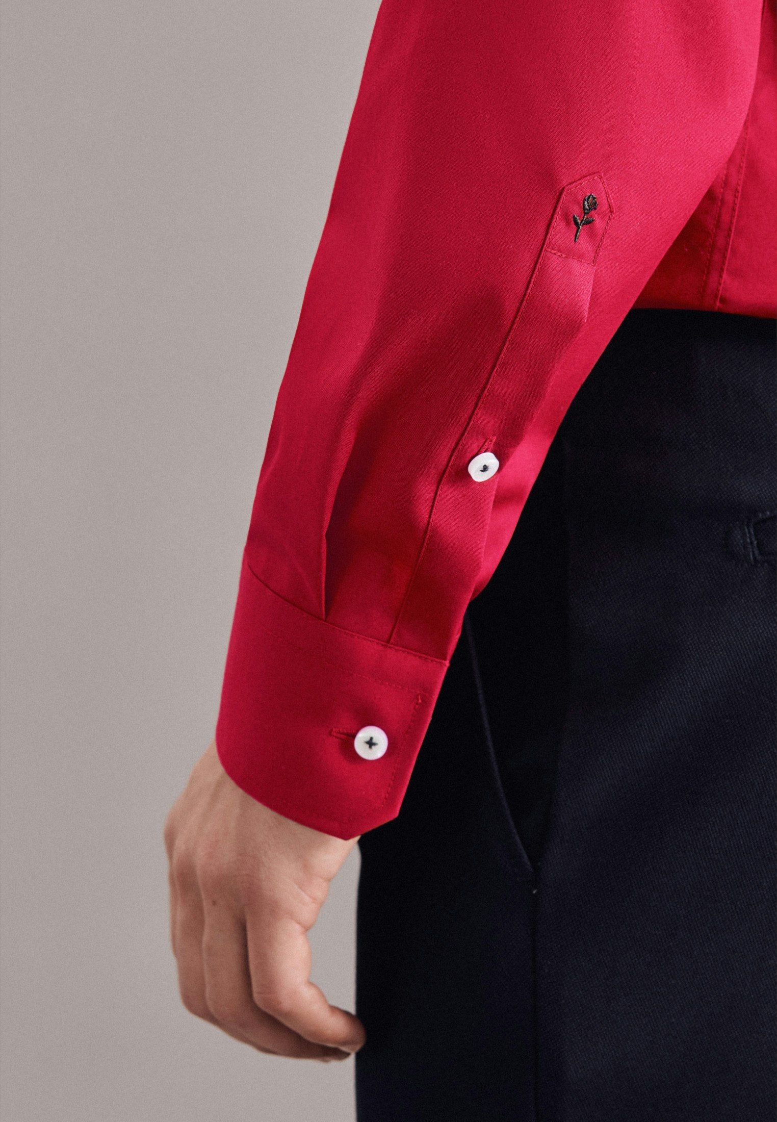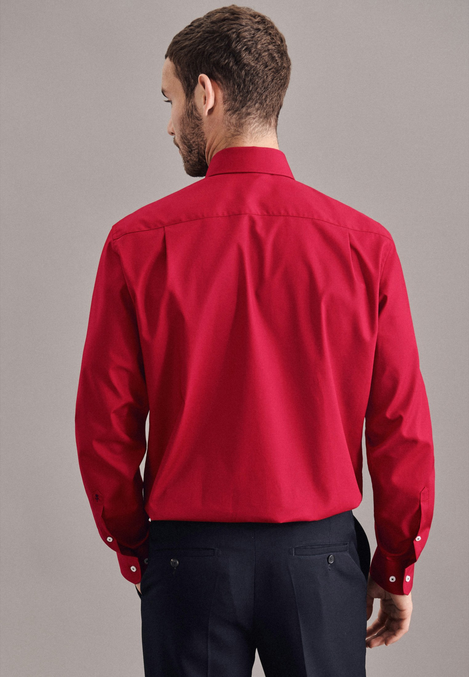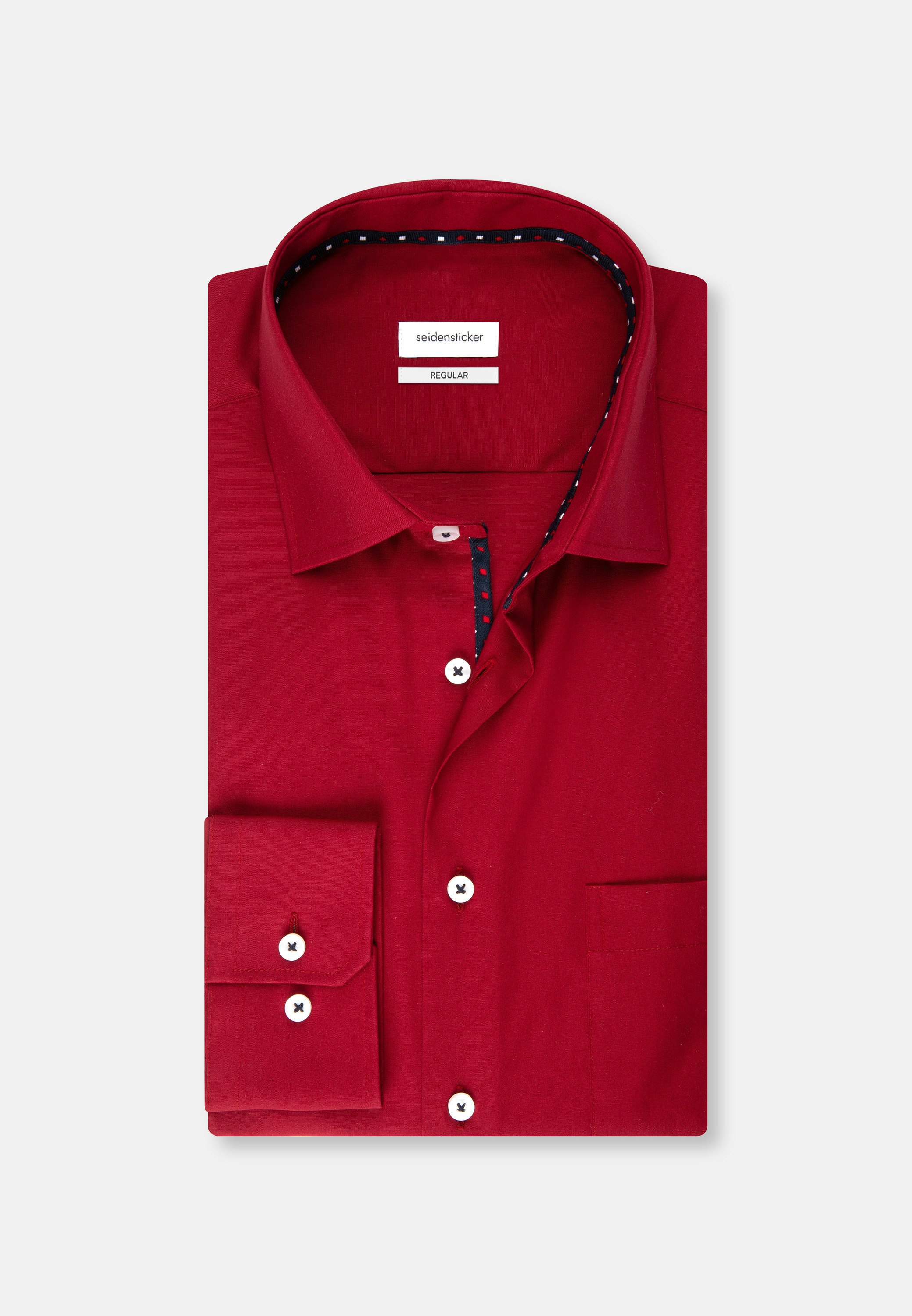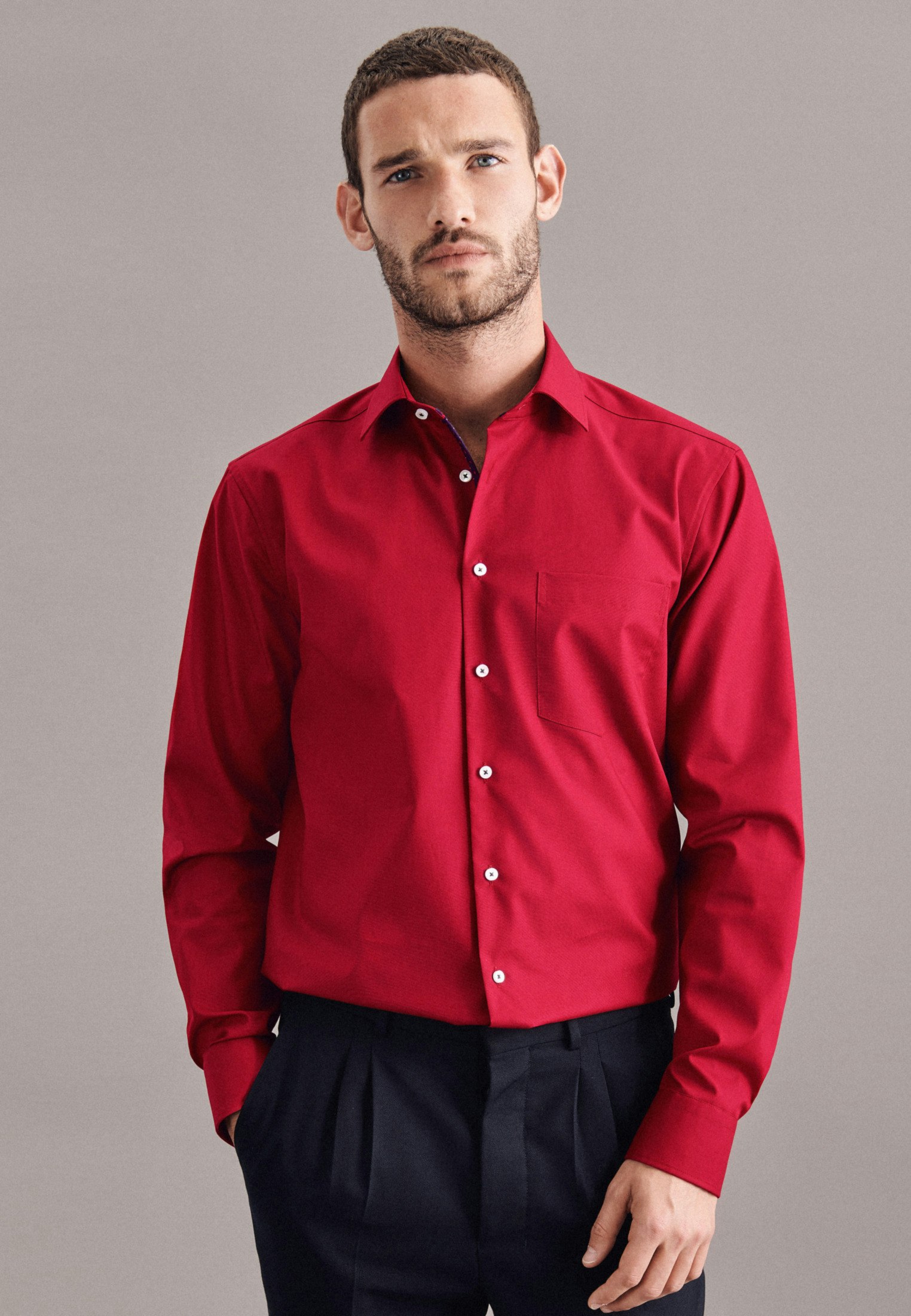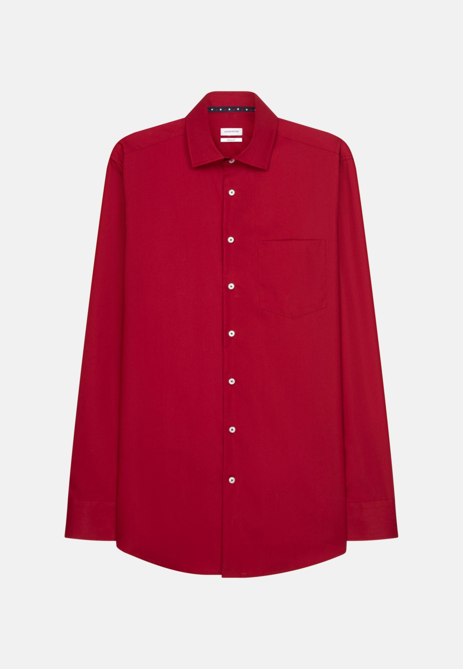 Masculine aesthetics: the Seidensticker business shirt from the "SMART ESSENTIALS" collection adds a versatile garment to your wardrobe. Whether home office, leisure, events or office - it is an elegant classic that convinces with simple elegance. The high-density woven and therefore particularly durable poplin fabric is made of 100% cotton - perfect for easy-care outfits. Thanks to its regular fit, the business shirt is not so tight and fits rather casually, thus creating optimal wearing comfort. The plain pattern with patch in the collar and button placket sets visual accents. Balancing act between classic and modern: the elegant Seidensticker shirt. Width-adjustable cuffs round off the overall look. The Kent collar emphasises the universal business character. A breast pocket is a convincing, unobtrusive detail. This business shirt meets our own high standards for our products in terms of sustainable raw material use, responsible manufacturing and plastic-free packaging. In this way, we too can take on social responsibility. A real highlight.