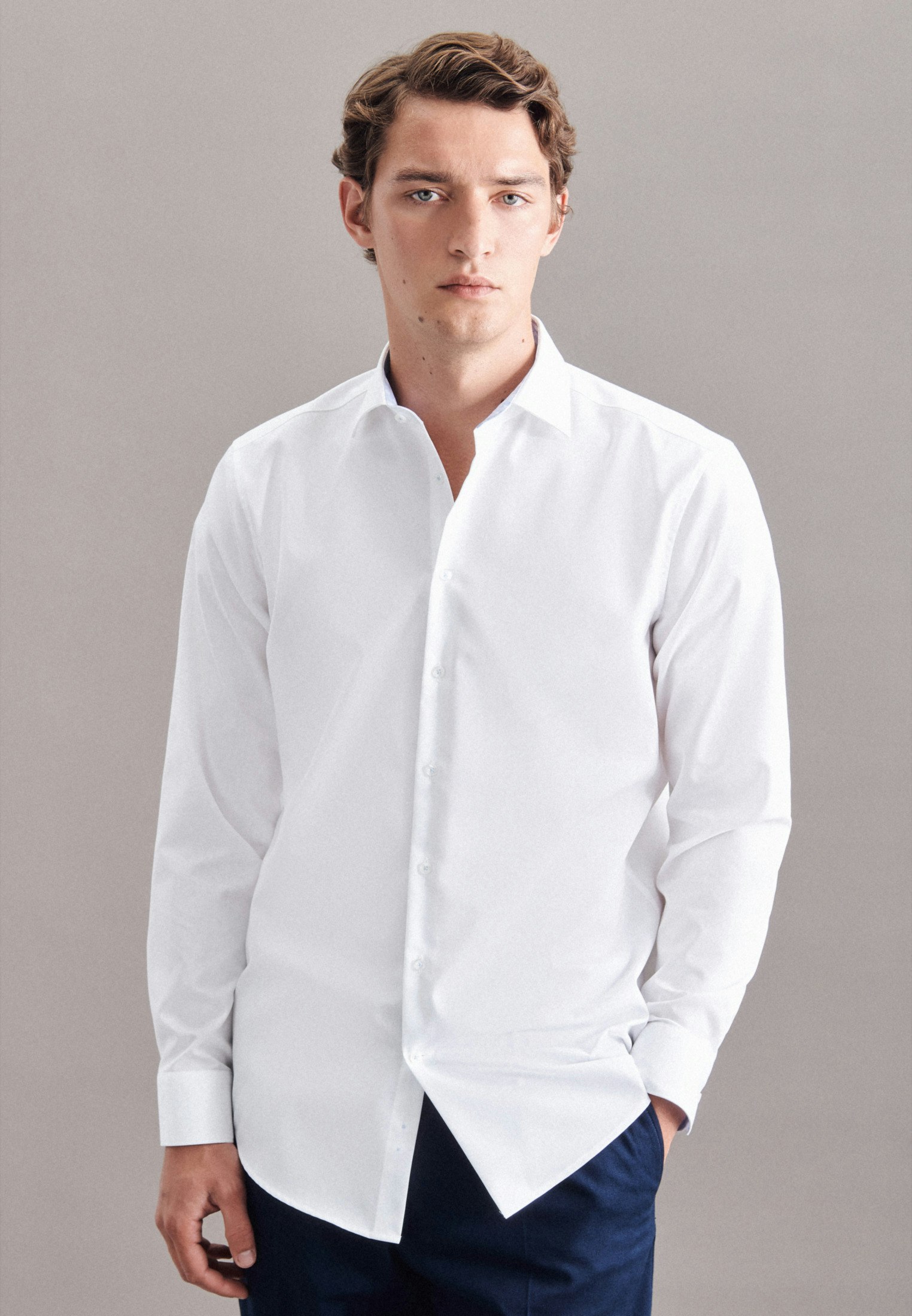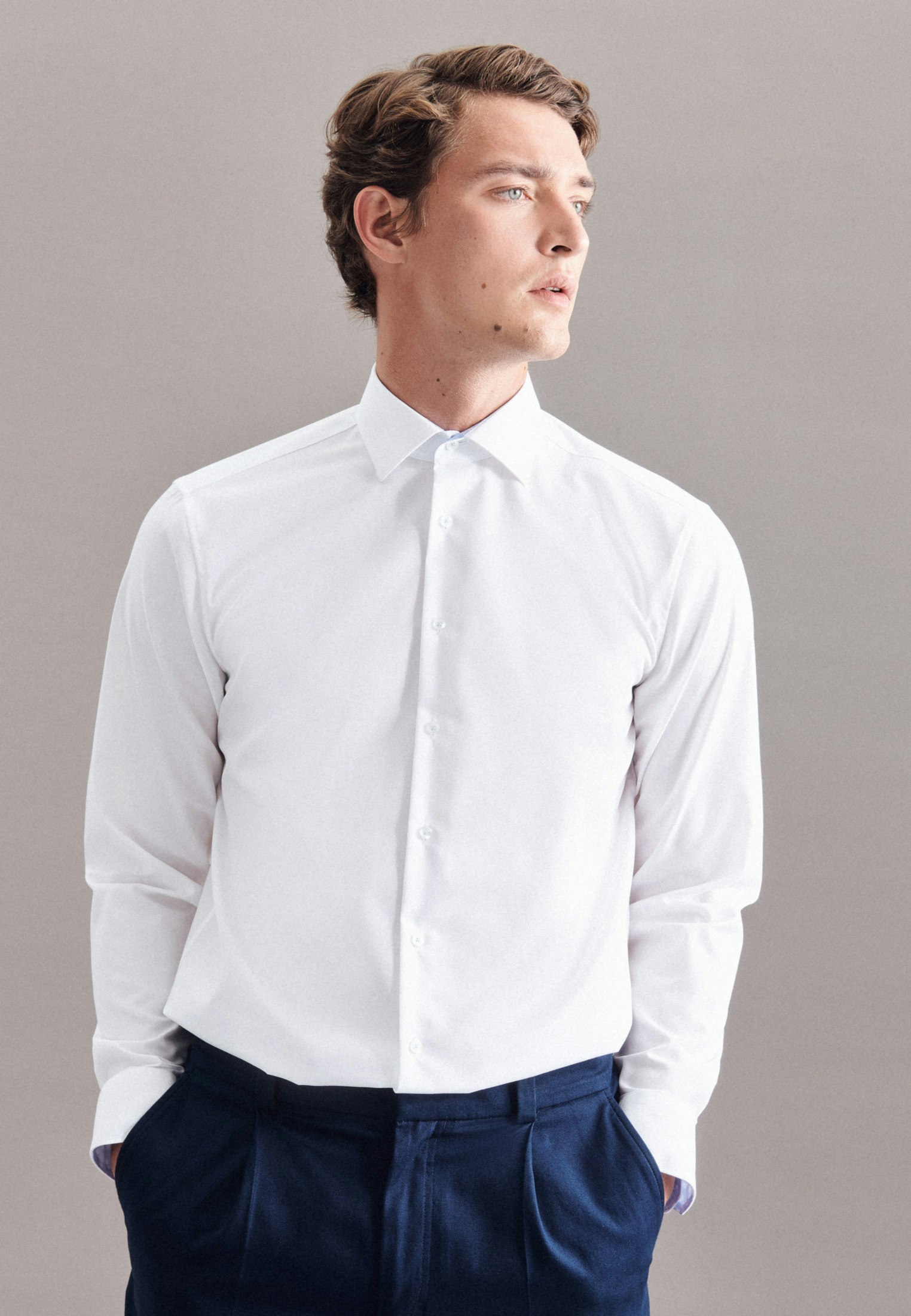 Masculine design - look stylish and classy in this business shirt from Seidensticker's "SMART CLASSICS" collection. A little more style for working from home, the office and going to events. Our poplin fabric made from 100% cotton is tightly woven and incredibly durable, making it ideal for easy-care business outfits. Our regular fit is casual, comfortable and not restrictive at all. All the style you need thanks to its plain pattern with contrasting details in the patch in collar and cuffs. Elegant Seidensticker shirts offer the perfect balance between classic looks and modern styles. Stylish and elegant, you can't go wrong with this long-sleeve business shirt. It features adjustable cuffs to complete your outfit. Plus a kent collar ensures an immaculate business look. We don't shy away from our social responsibility: this business shirt conforms to our own high standards on sustainable cultivation of raw materials and responsible production. What's more, it also comes in plastic-free packaging.