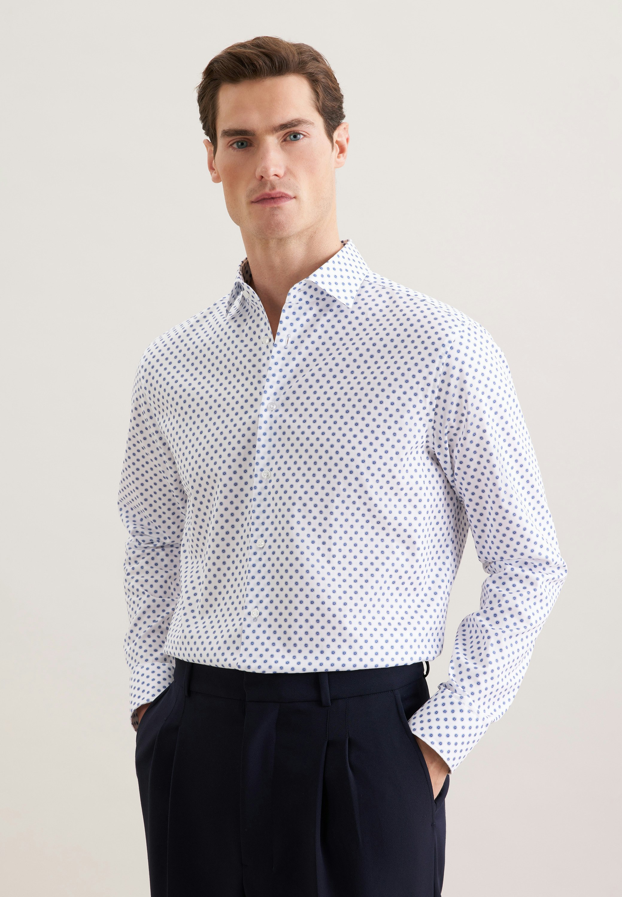 Start turning heads - look and feel great in this 1/1-business shirt. Try the business shirt in classic fit for unparalleled comfort- light, casual and not restrictive. Your new style boasts a chic print pattern. A true classic that goes with business and casual outfits alike. A kent collar shows off your business credentials.