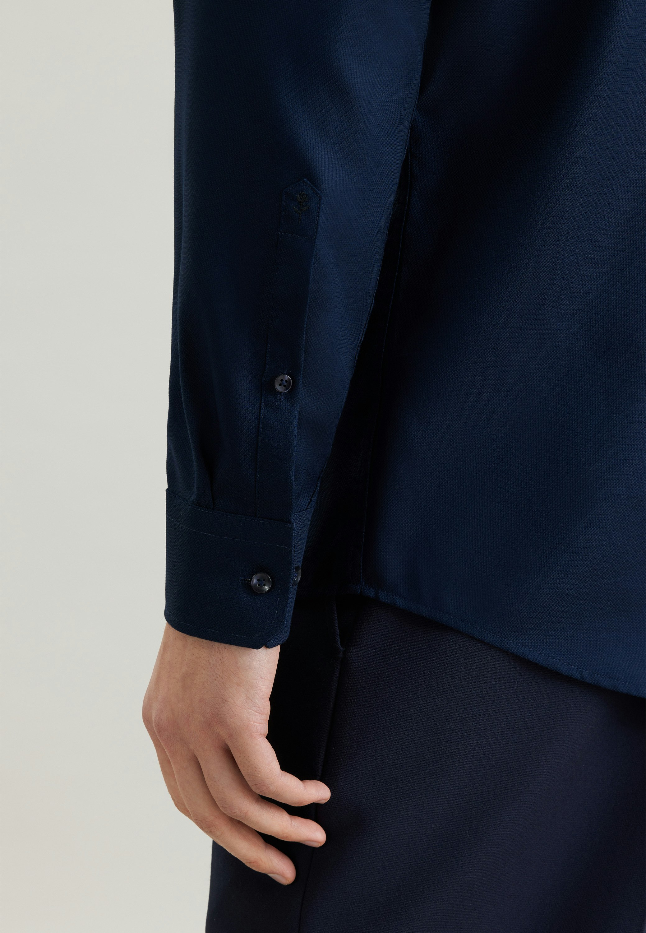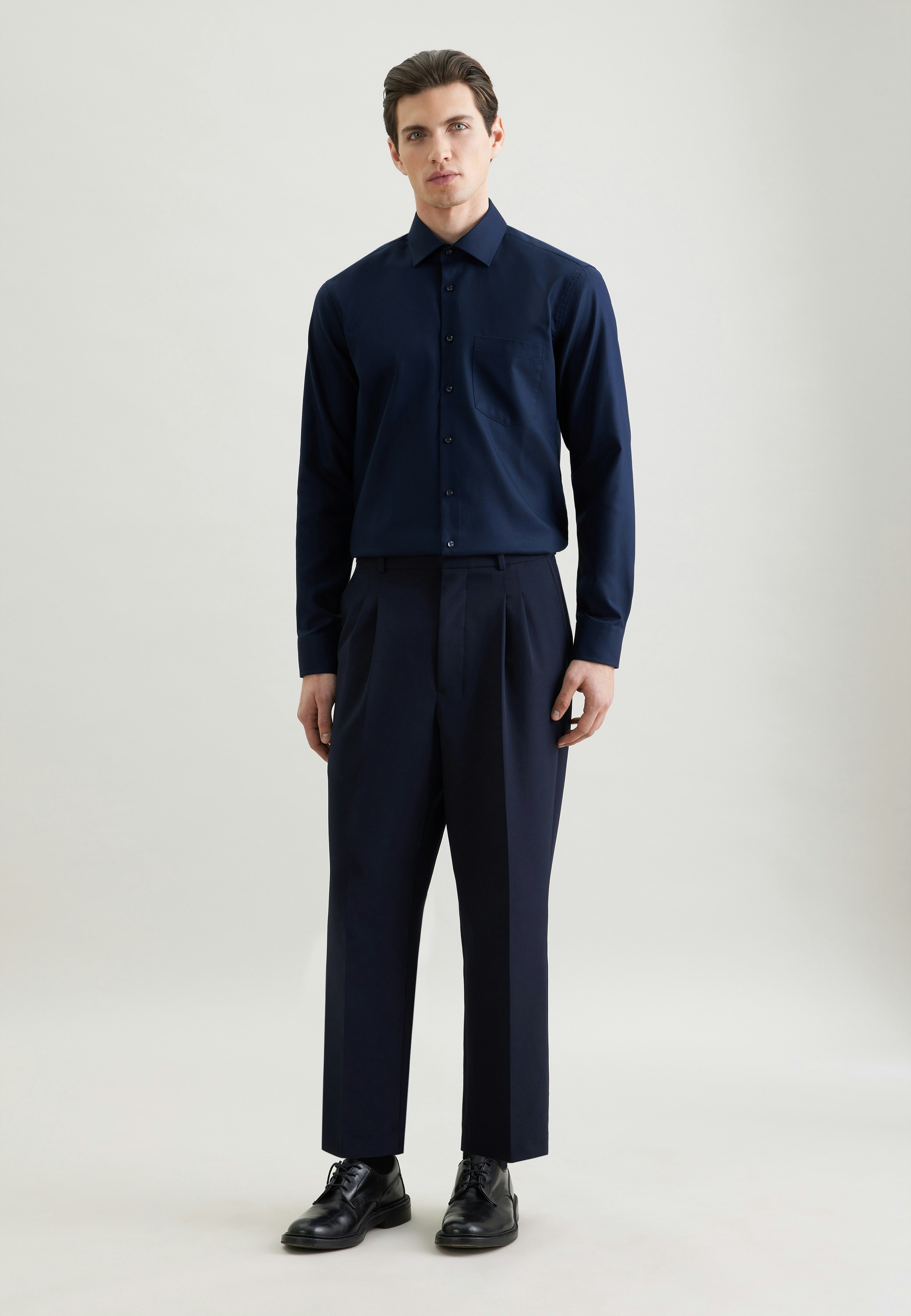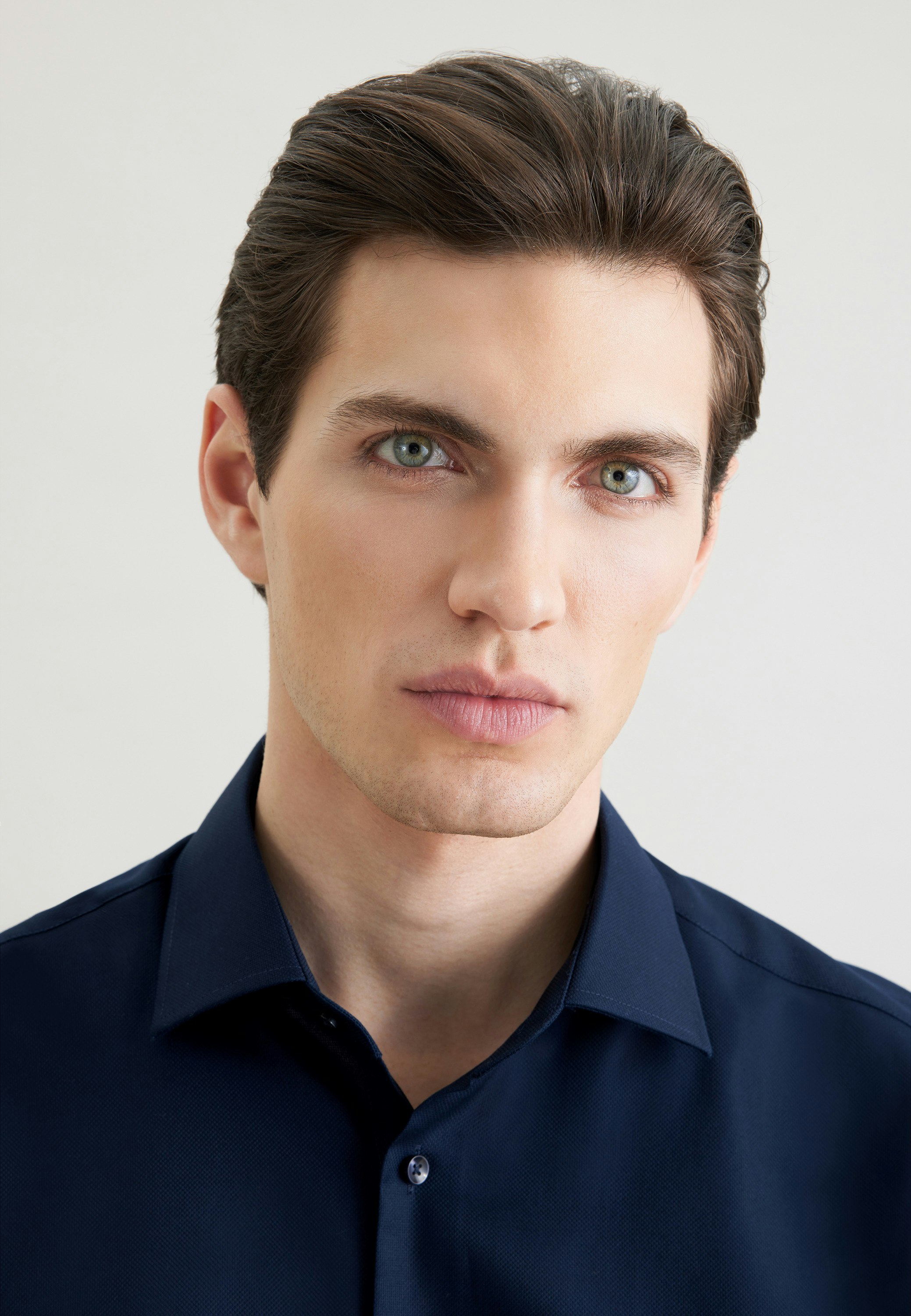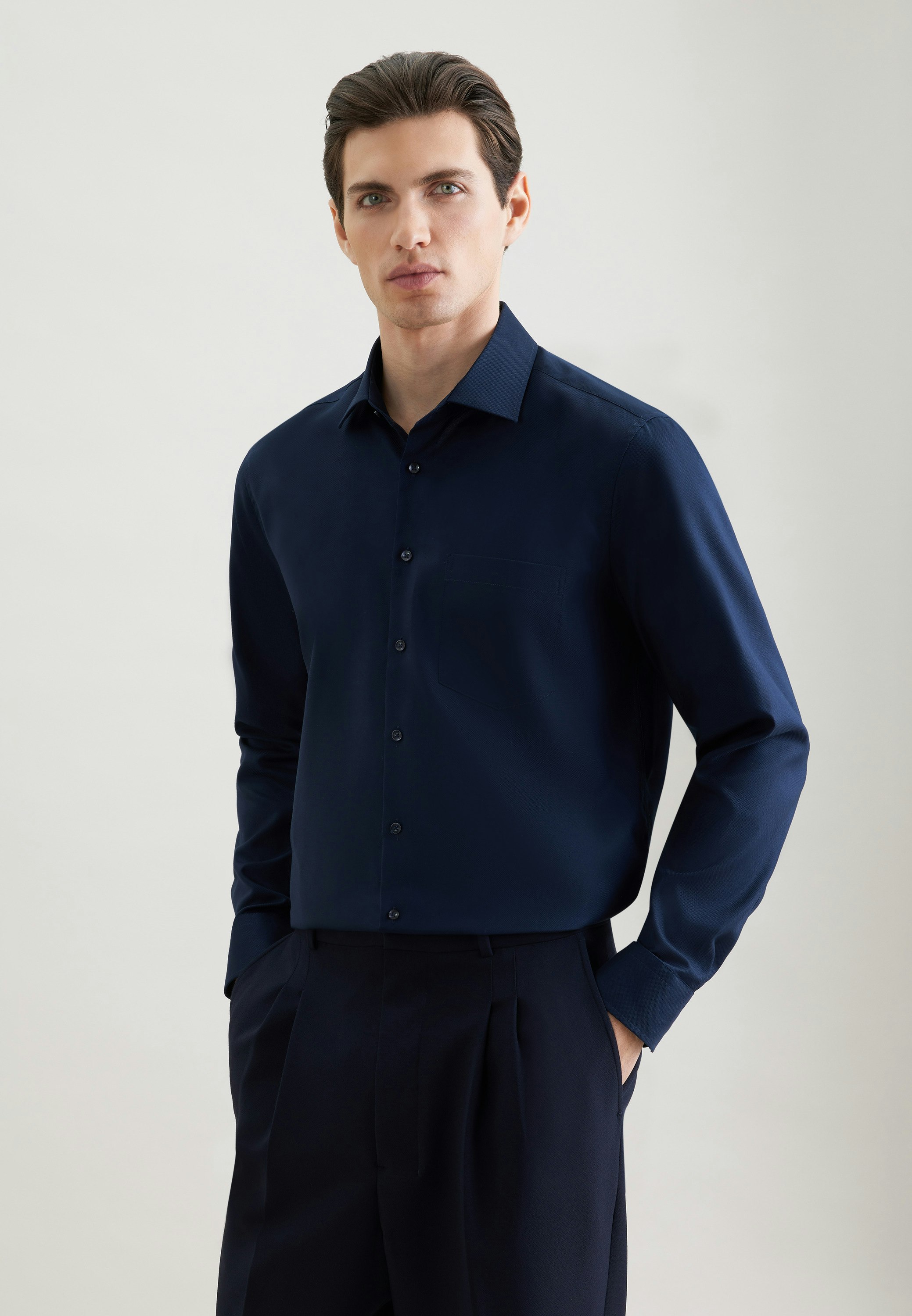 The plain-coloured Seidensticker Regular men's shirt convinces with classic restraint and thus sets fashionable standards. The non-iron textured cotton fabric gives the shirt a special look, while the casual fit completes the overall concept and guarantees perfect freedom of movement. Featuring a fashionably appealing business Kent collar and breast pocket. The cotton fabric is treated in an elaborate process so that it pulls itself back into shape after washing.