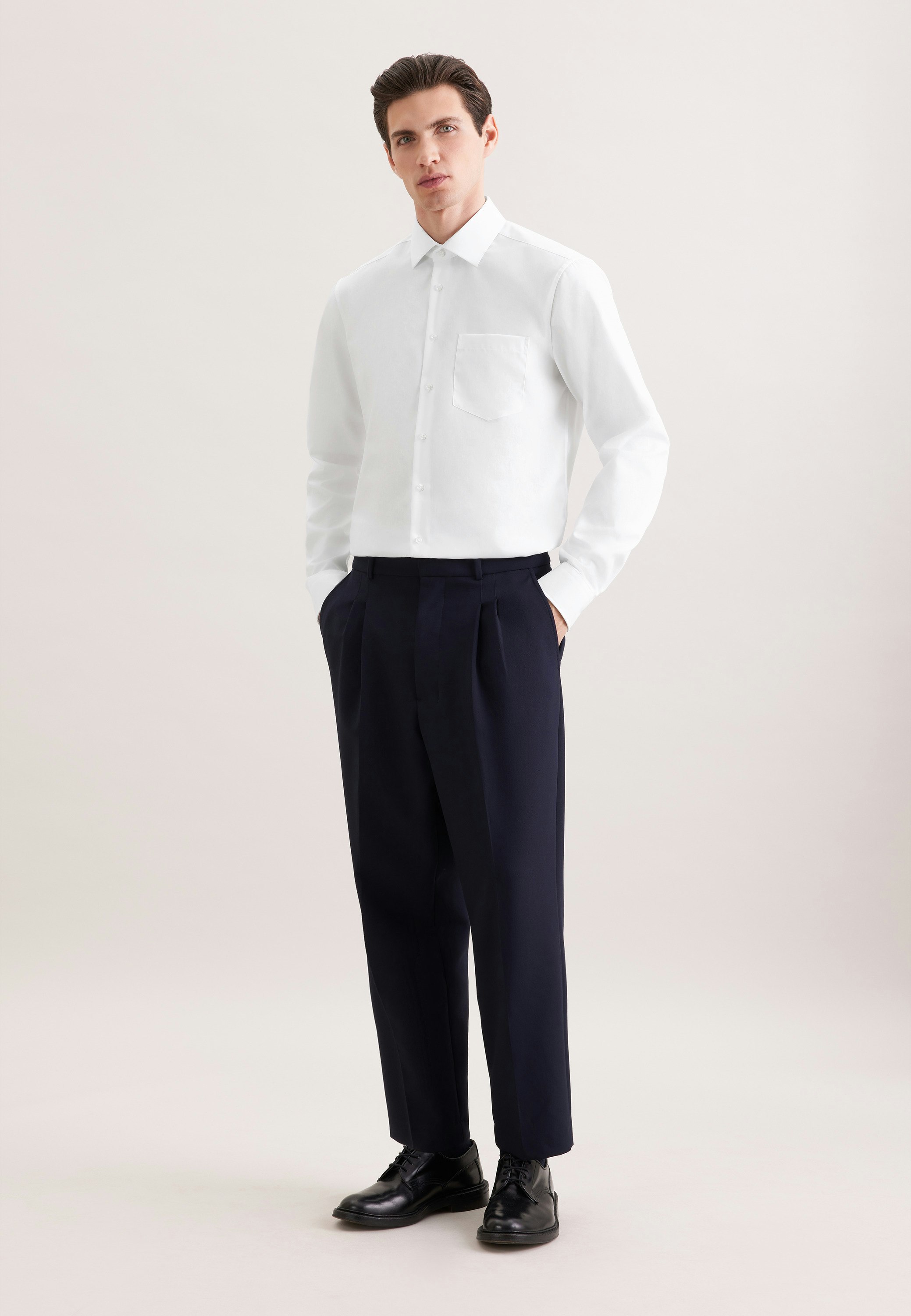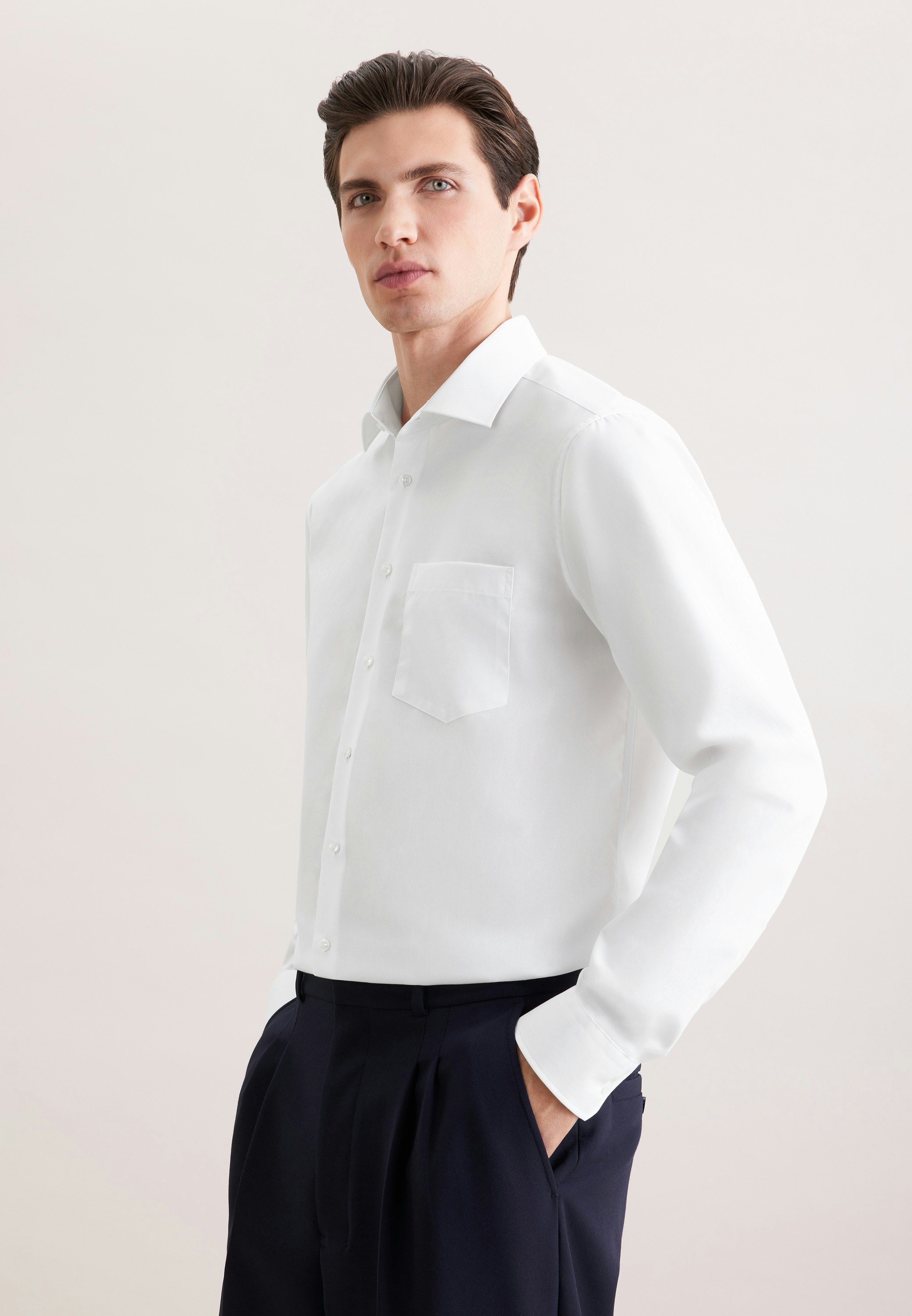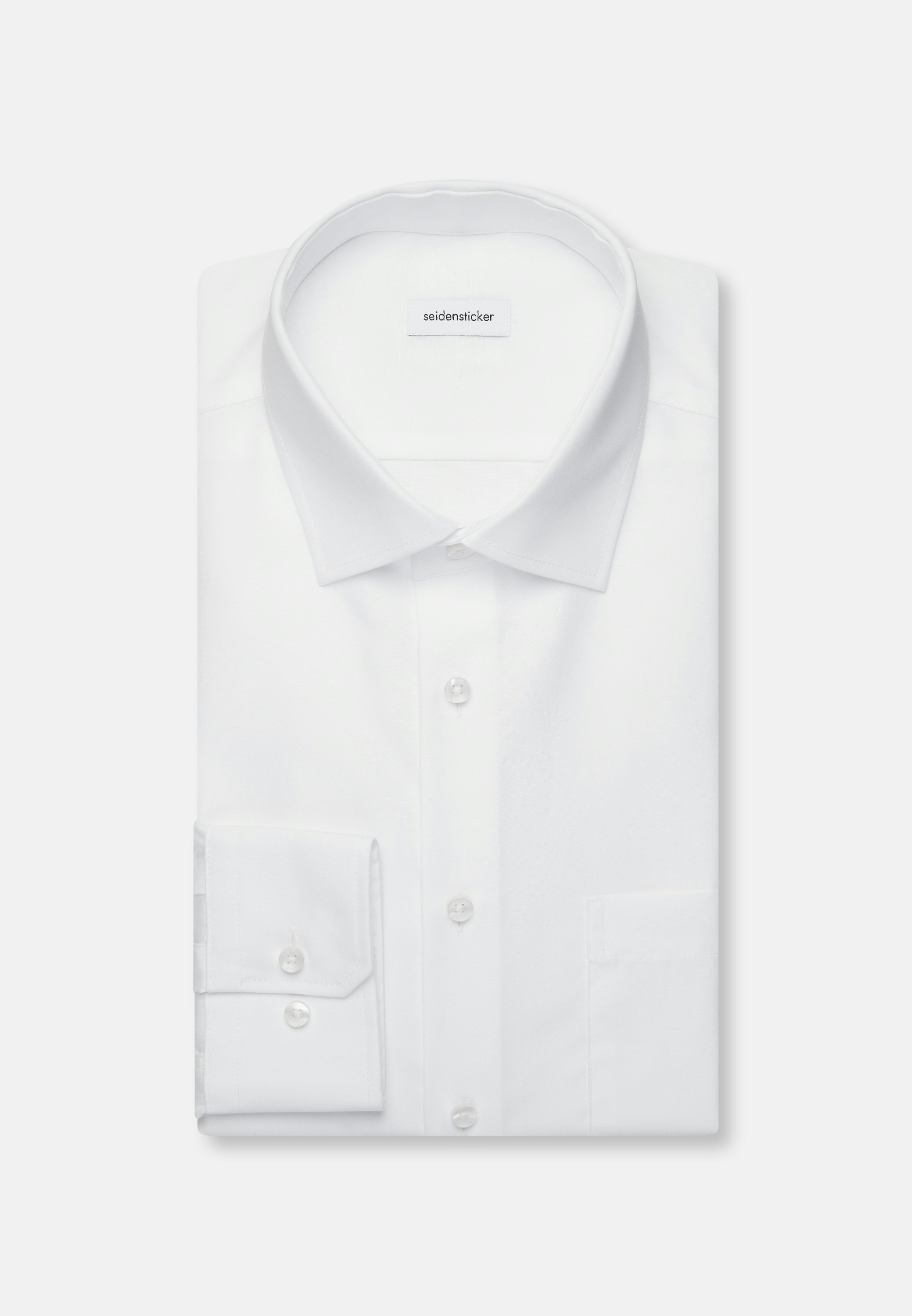 Classic fit, masculine design - look stylish and classy in this Regular fit business shirt from Seidensticker's "SMART ESSENTIALS" collection. It's a true classic that's great for casual wear, working from home, the office and going to events and looks great with many different outfits and styles. the business shirt's tightly woven and incredibly durable poplin fabric is 100% cotton - perfect for easy-care outfits. This business shirt is incredibly comfortable and casual in our regular fit. Your new business shirt is both elegant and fashionable thanks to its plain pattern. Smart Seidensticker shirts offer the perfect balance between classic looks and modern styles. Your new extra long sleeve-business shirt is the ideal choice both for summer and autumn days. It features adjustable cuffs to complete your new look. Plus a kent collar shows off your business credentials. Refreshingly subtle detail include a breast pocket. This business shirt meets the high standards we place on our products in terms of the sustainable use of raw materials, responsible production and plastic-free packaging. It's our way of meeting our social responsibility.