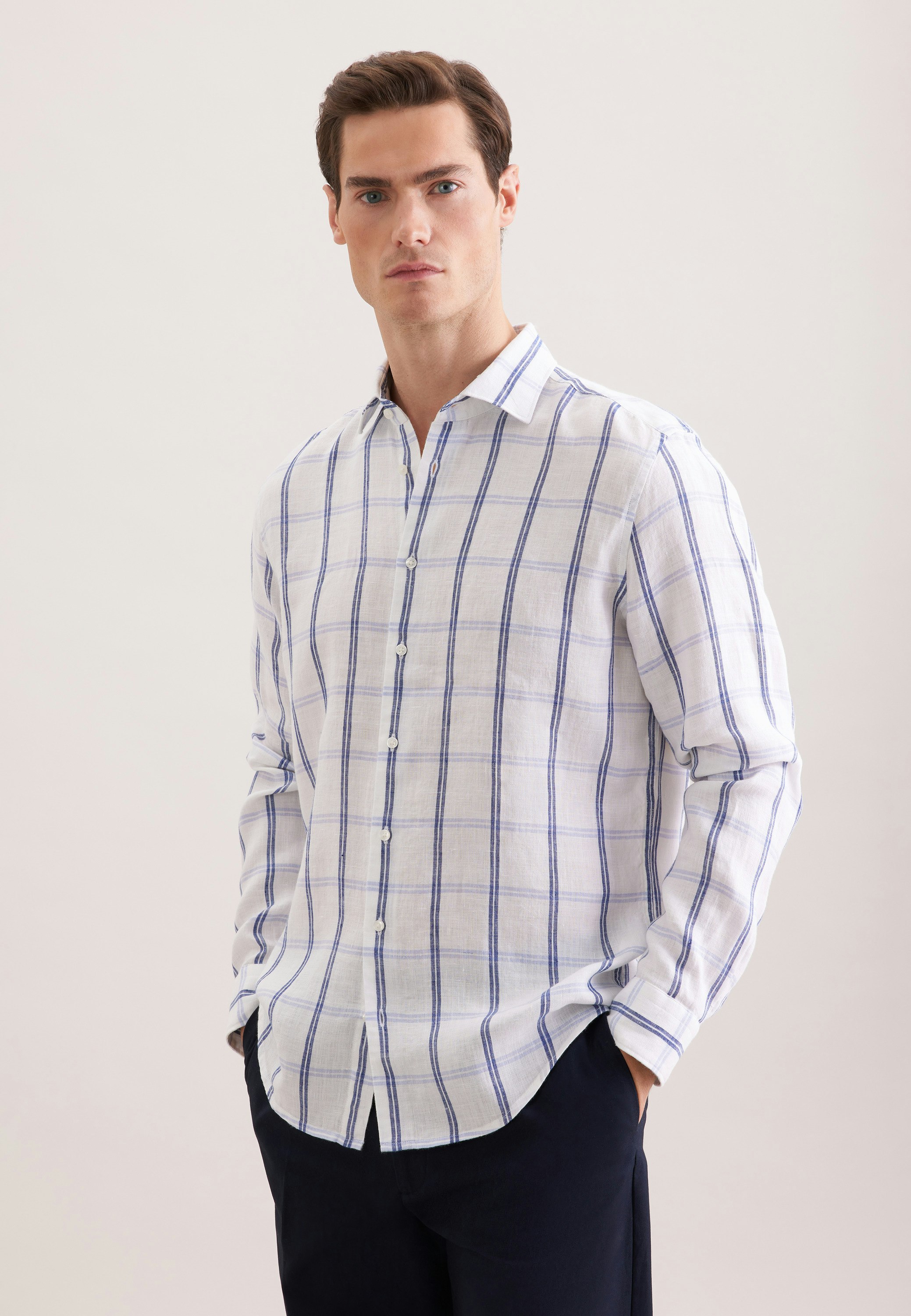 Flatters your figure - look stylish and classy in this 1/1-linen shirt. This linen shirt is incredibly comfortable and relaxed in our regular fit. Its chic check pattern makes it an absolute must-have. Create a whole range of different outfits with this wonderful item. A kent collar shows off your business credentials.