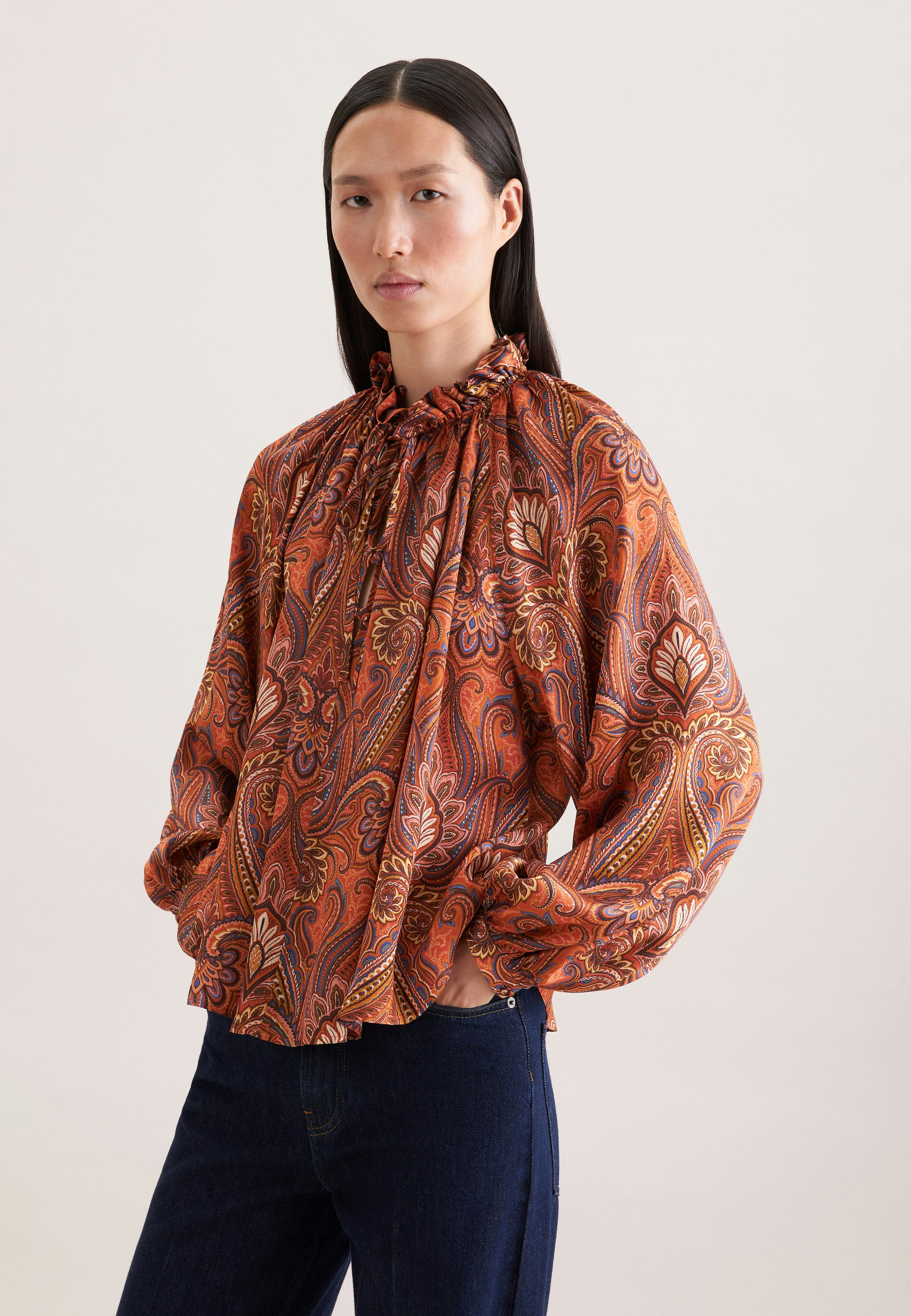 Flatters your figure - add options and style to your wardrobe with Seidensticker's 1/1-ruffled blouse. Try the ruffled blouse in classic fit for unparalleled comfort- light, casual and not too tight. Your new style boasts a chic print pattern. So why not show off your unique sense of style with ruffled blouse that adds modern flair to any outfit? Plus Stand Up Collar so you can look smart.