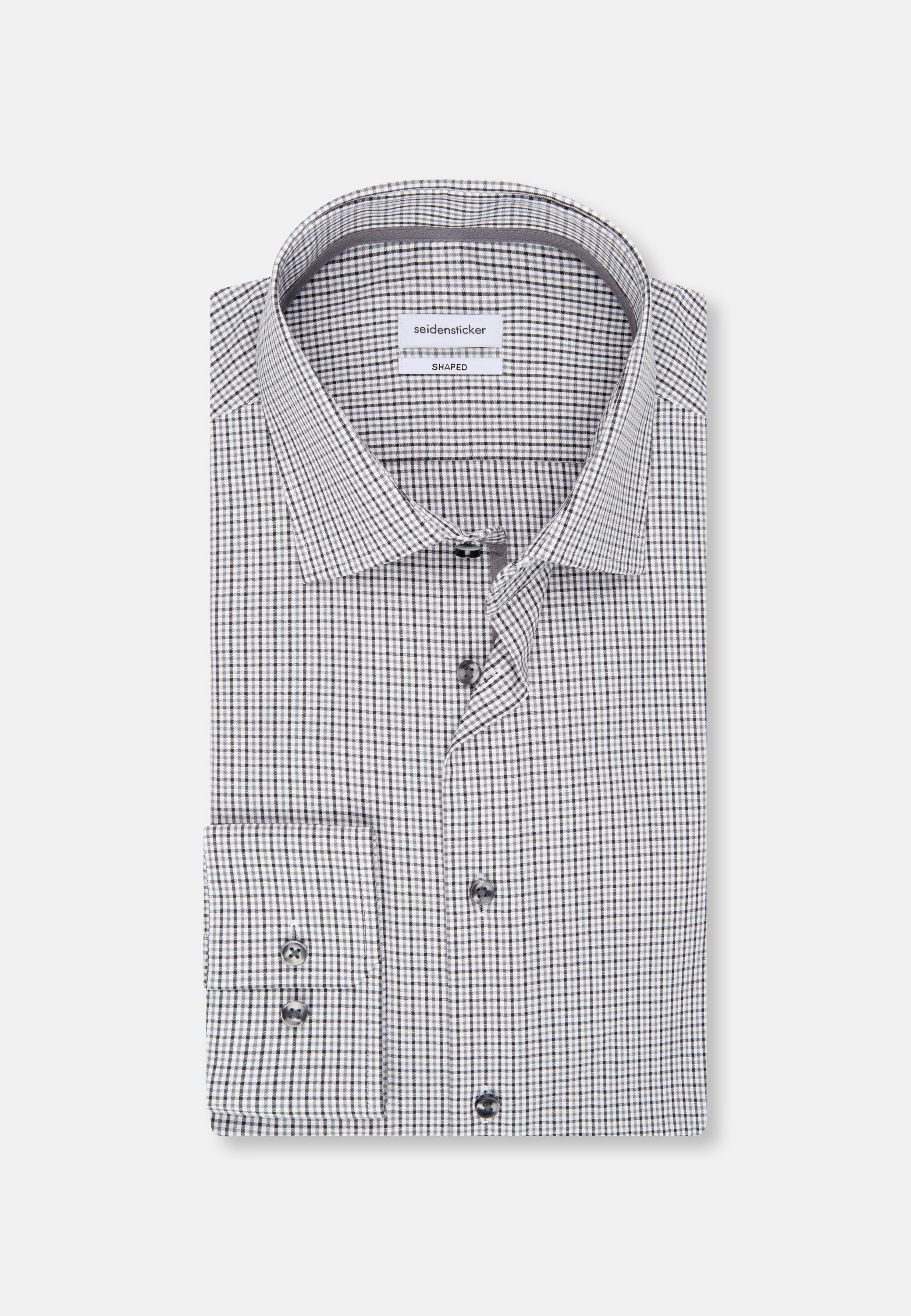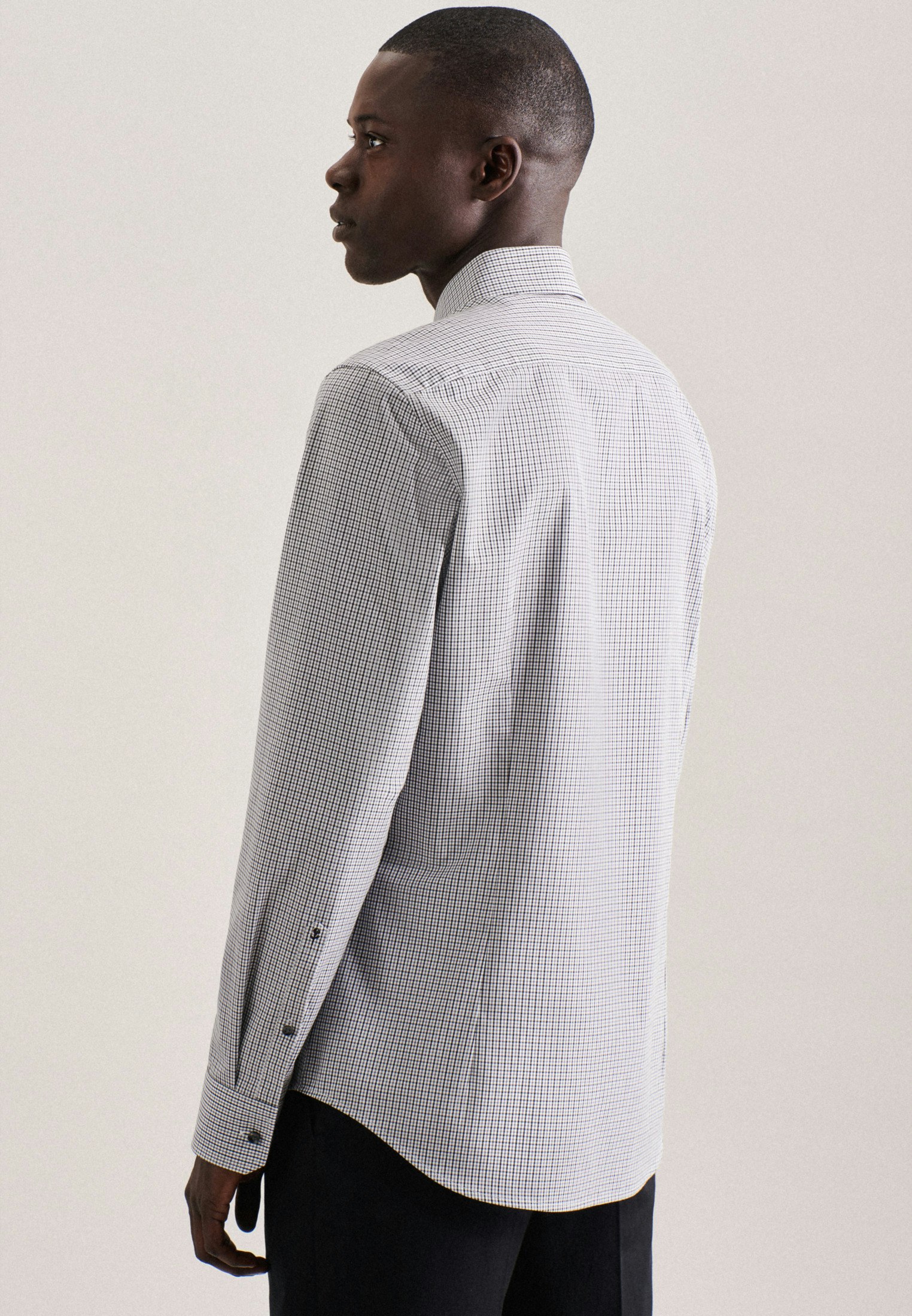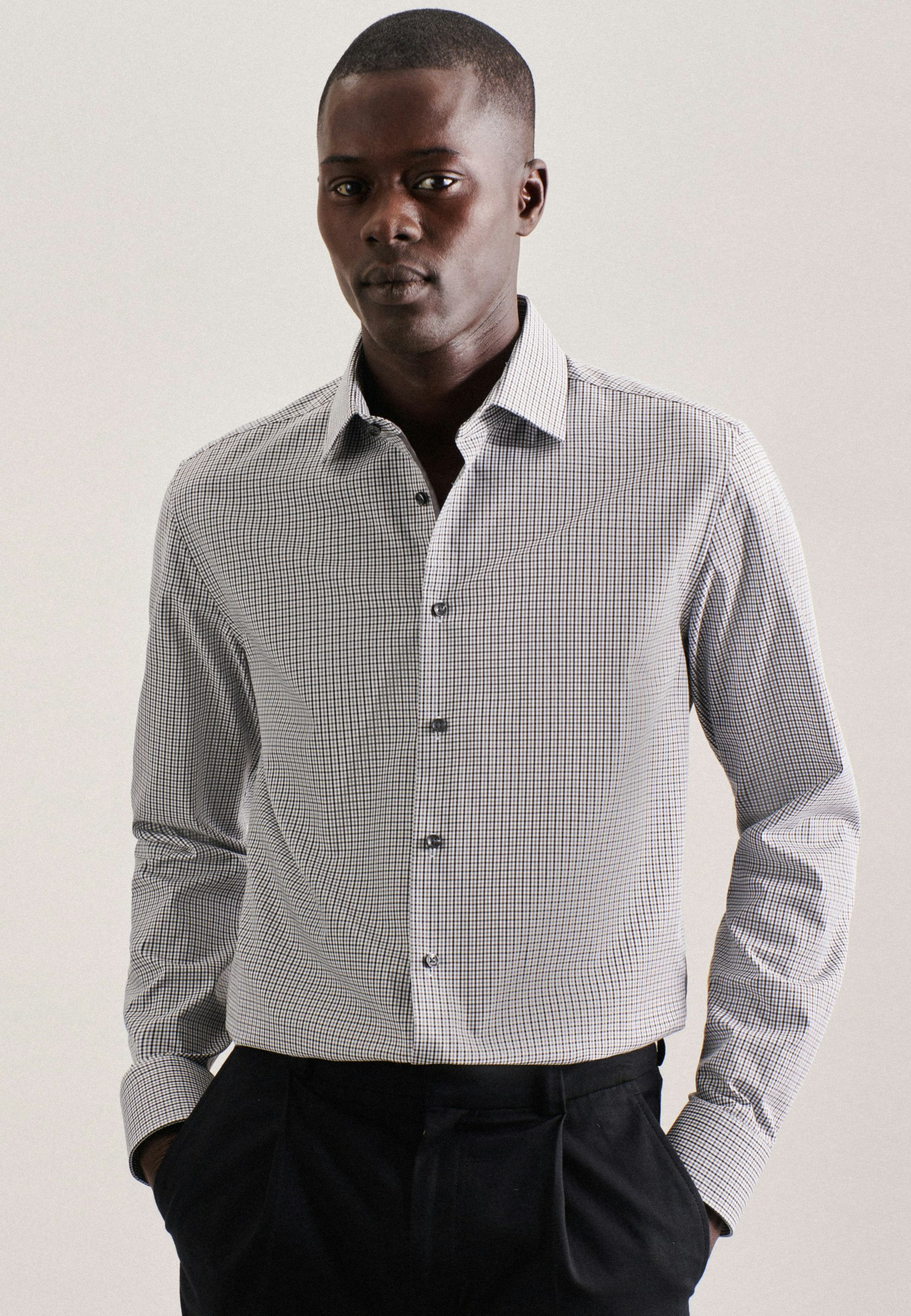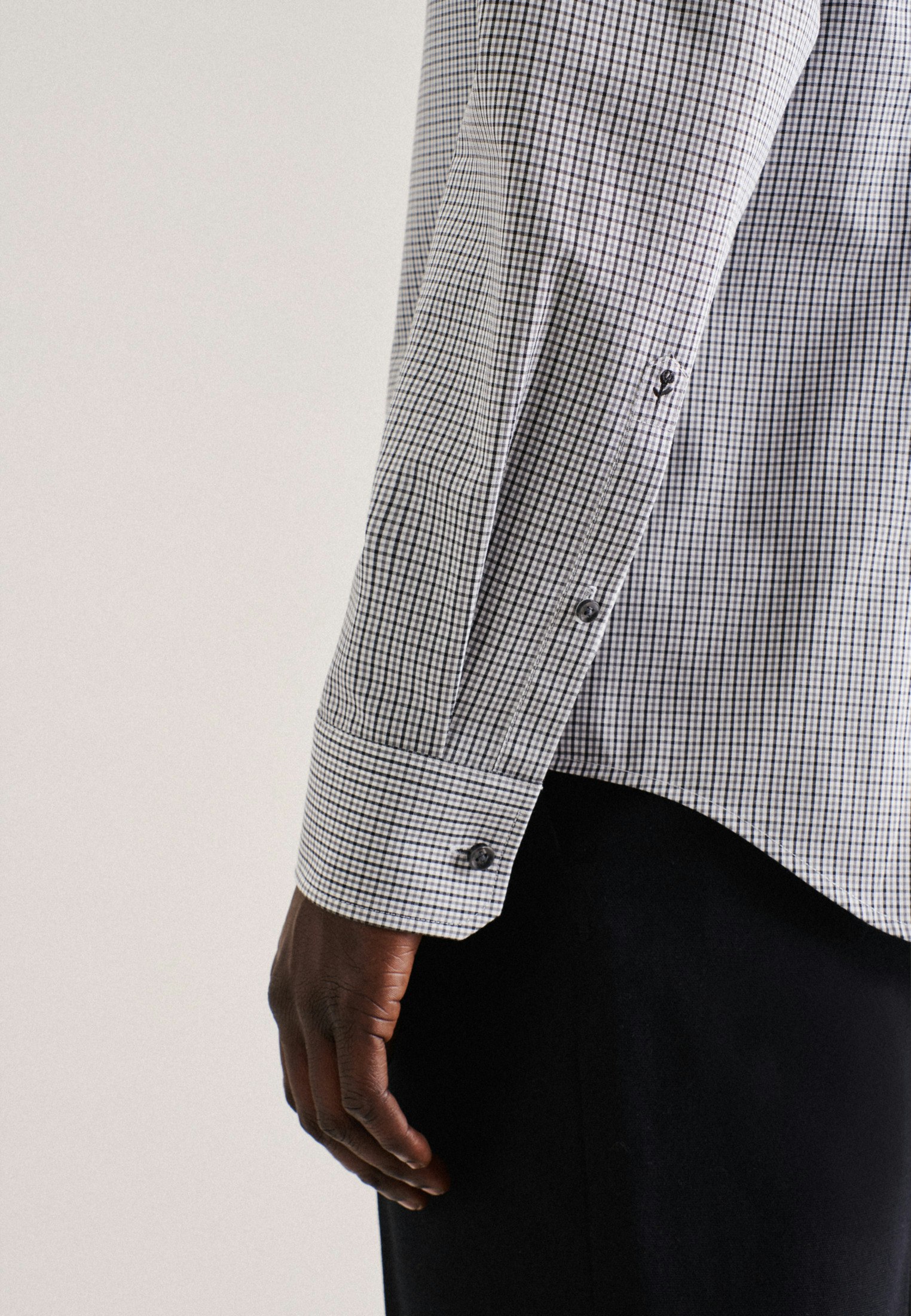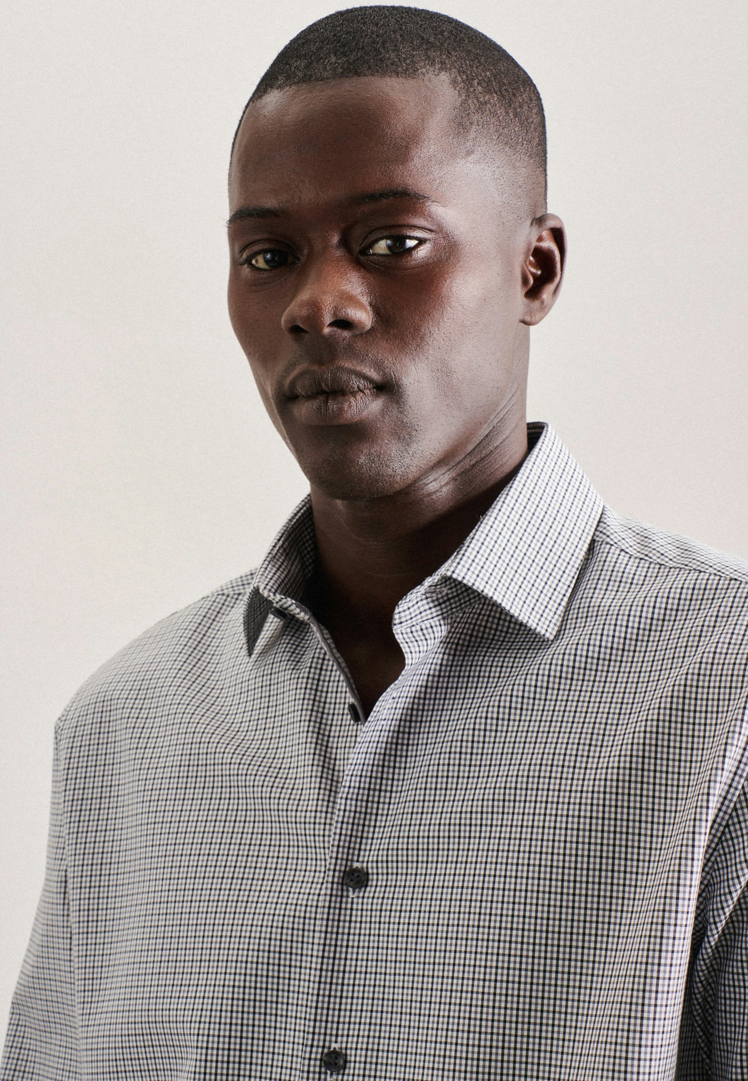 Masculine design - look stylish and classy in this business shirt from Seidensticker's "SMART ESSENTIALS" collection. A little more style for casual wear, working from home, the office or going to events. Tightly woven poplin is an incredibly durable material. Made from 100% cotton, it's perfect for easy-to-clean business outfits. Our shaped fit gives you freedom to move despite its body-hugging cut. Its chic check pattern with elegant contrasting details in the patch in collar and placket makes it an absolute must-have. This business shirt embodies timeless elegance with a modern touch. Look elegant and stylish in this long-sleeve business shirt. It features adjustable cuffs as your style demands. Plus a kent collar ensures an immaculate business look. This business shirt meets the high standards we place on our products in terms of the sustainable use of raw materials, responsible production and plastic-free packaging. Because social responsibility is our responsibility.