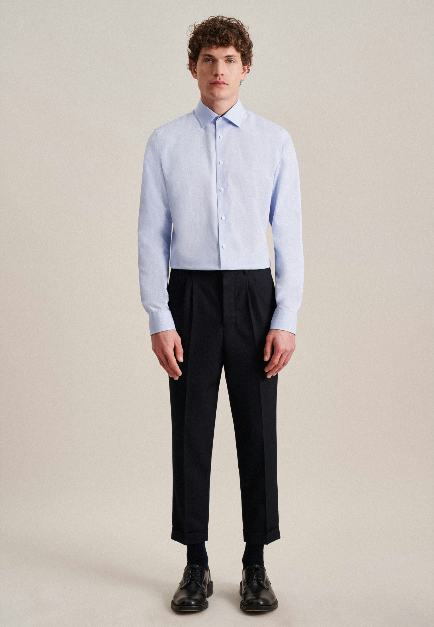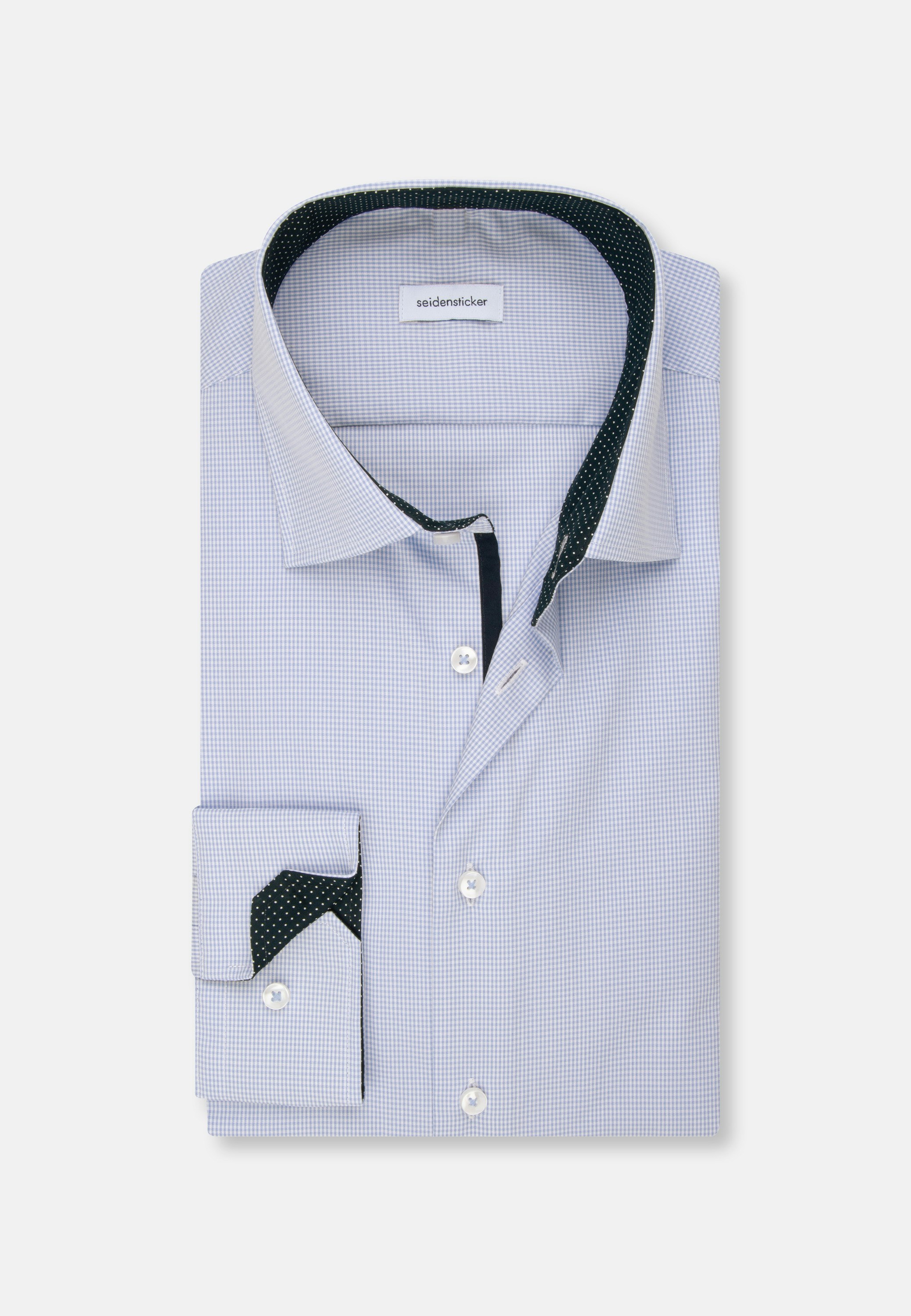 Masculine look - add options and style to your wardrobe with Seidensticker's business shirt from our "SMART ESSENTIALS" collection. Whether you're working from home, going to events, enjoying some free time or heading to the office, our smart business shirt looks great as part of almost any outfit. Our poplin is 100% cotton - the perfect fabric for your stylish dress sense. Our shaped fit is body-hugging but not tight. Your new style boasts a chic check pattern with elegant contrasting details in the patch in collar und the cuffs and placket. This Seidensticker business shirt is smart and modern with both formal and casual elements. Look smart and chic in this extra long sleeve-business shirt. It features adjustable cuffs to complete your outfit. Plus a kent collar shows off your business credentials. Sustainability is incredibly important to us, which is why this business shirt complies with the high standards we've put in place regarding responsible sourcing of raw materials, social responsibility, sustainable production and plastic-free packaging.