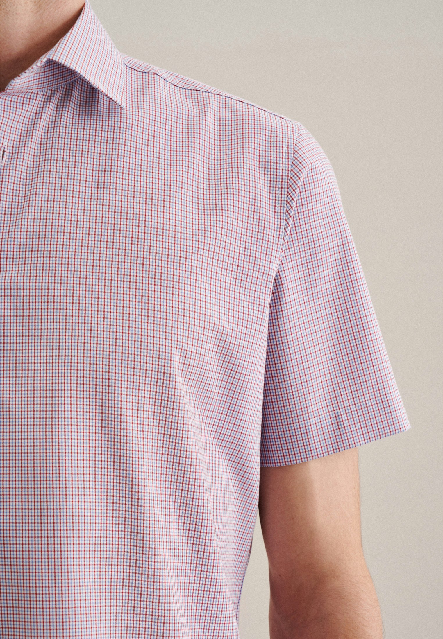 Freshen up your look with this must-have business shirt from the "SMART ESSENTIALS" collection by Seidensticker - complete with masculine look. A little more style for casual wear, working from home, the office and going to an event. Tightly woven poplin is an incredibly hard-wearing material. Made from 100% cotton, it's perfect for easy-to-clean business outfits. Our shaped fit gives you plenty of room despite its body-hugging cut. Your new business shirt is both elegant and fashionable thanks to its check pattern and contrasting details in the patch in collar and placket. This Seidensticker business shirt is smart and modern with both formal and casual elements. Your new short sleeve-business shirt is the ideal choice for beautiful summer weather. A kent collar shows off your business credentials. We recognise our social responsibility: this business shirt conforms to our own high standards on sustainable cultivation of raw materials and responsible production. What's more, it also comes in plastic-free packaging.