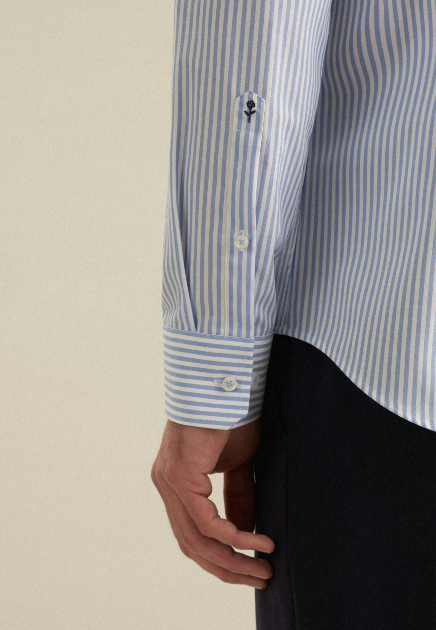 Complete any outfit with this must-have business shirt from the "SMART ESSENTIALS" collection by Seidensticker - complete with masculine look. Whether you're working from home, going to events, enjoying some free time or heading to the office, our stylish business shirt goes with almost anything. the business shirt's tightly woven and incredibly durable poplin fabric is 100% cotton - perfect for easy-care outfits. Our shaped fit is body-hugging but not too tight. Great style thanks to its refined stripes pattern with contrasting details in the patch in collar and placket. This Seidensticker business shirt is smart and modern with both formal and casual elements. Stylish and elegant, you can't go wrong with this long-sleeve business shirt. It features adjustable cuffs as your style demands. Plus a kent collar shows you mean business. Sustainability is incredibly important to us, which is why this business shirt complies with the high standards we've put in place regarding responsible sourcing of raw materials, social responsibility, sustainable production and plastic-free packaging.