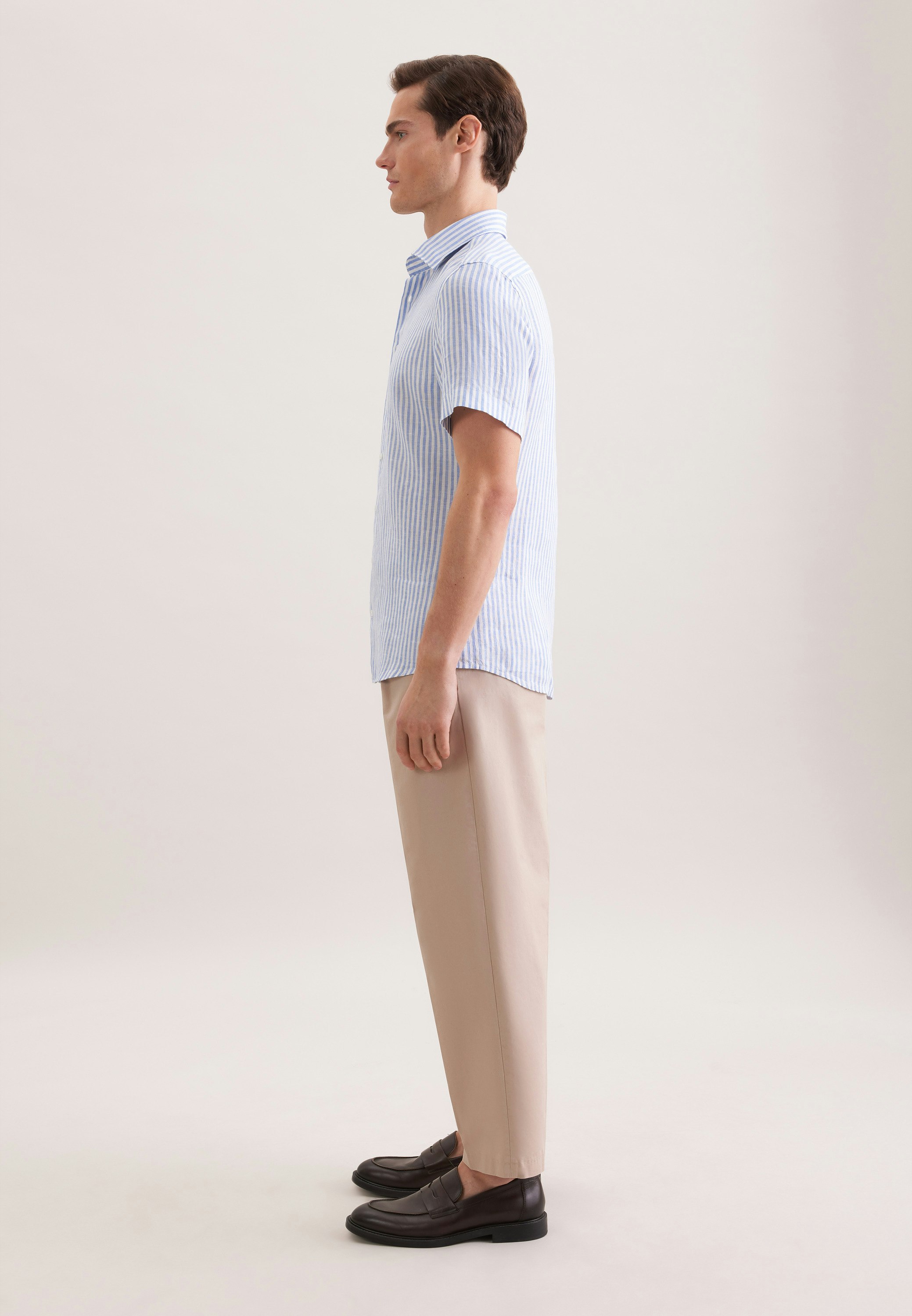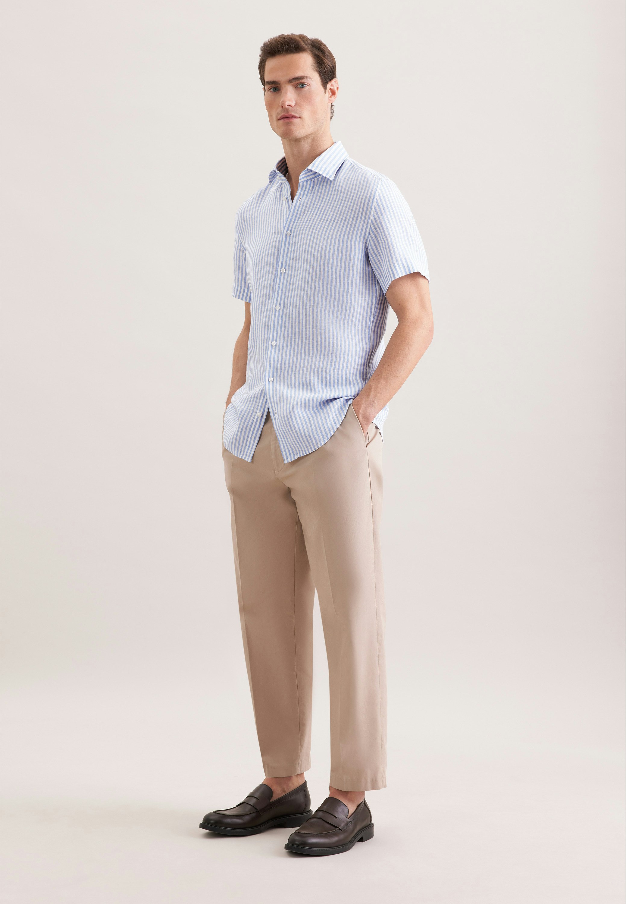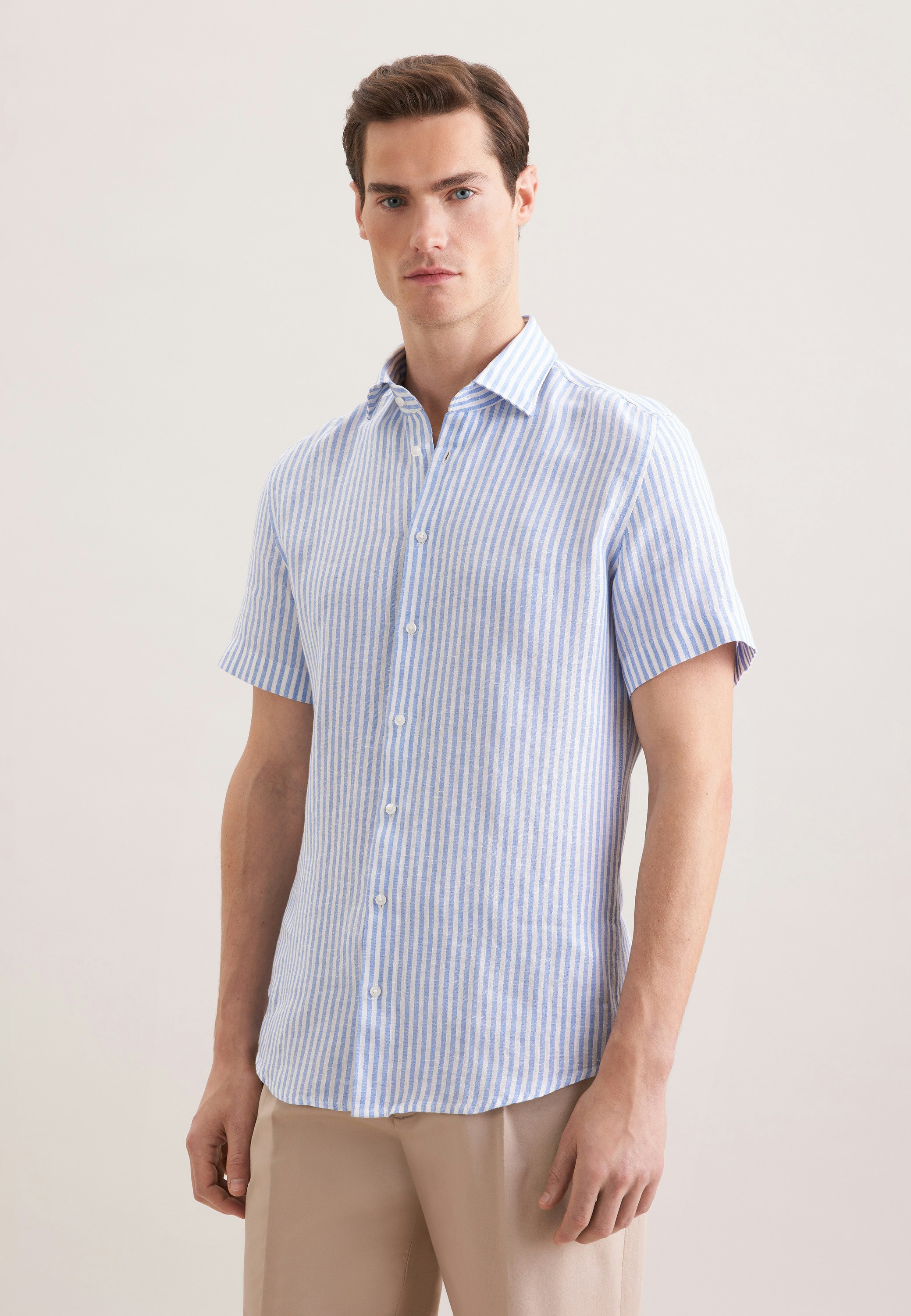 Start turning heads - look stylish and classy in this 1/2-linen shirt. Show off your physique with our shaped fit - close-fitting but not tight. Your new style boasts a chic stripes pattern. Create a whole range of different outfits with this wonderful item. A kent collar shows off your business credentials.