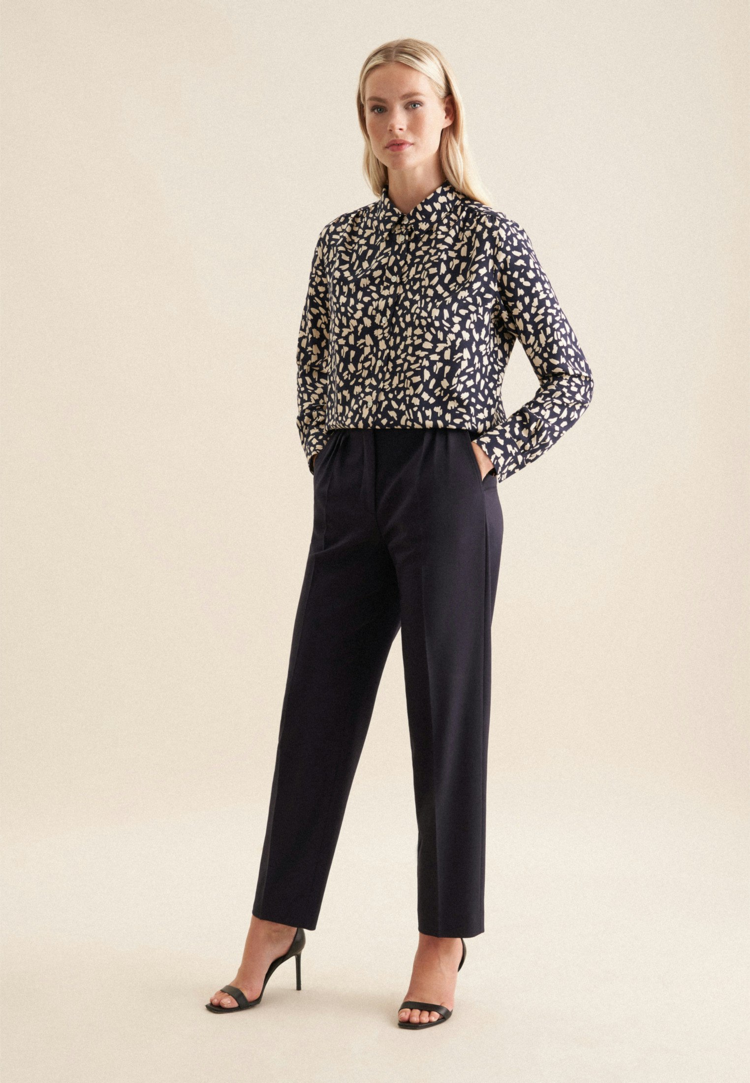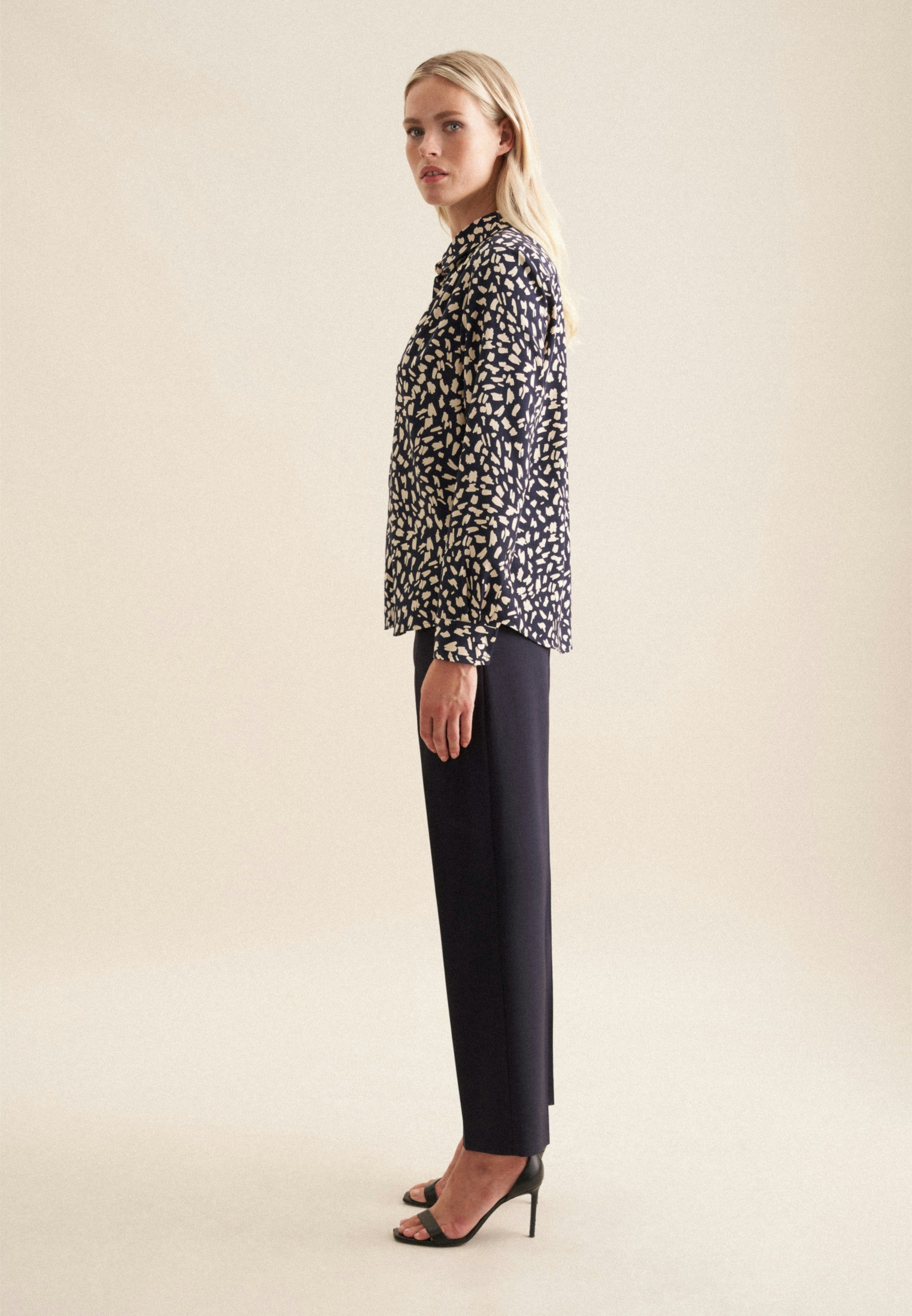 Sehr angenehmes Material und Tragekomfort und wunderbare Passform. Angegebene Größe passt wie es sein soll. Farbe und Muster sind wie online gesehen. Bluse oasst zu allem, ob Business- oder Casual-Kleidung.