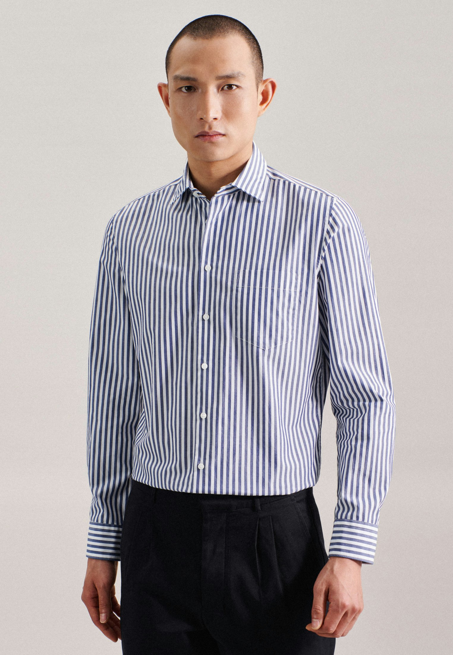 Complete any outfit with this must-have business shirt from the "SMART CLASSICS" collection by Seidensticker - complete with masculine look. Whether you're working from home, going to events or heading to the office, our elegant business shirt looks great as part of almost any outfit. Our chambray is 100% cotton - the ideal fabric for your chic dress sense. Try this business shirt in slim fit for a modern look that goes perfectly with any office outfit thanks to its subtle tailored cut. All the style you need thanks to its attractive stripes pattern. This Seidensticker business shirt is smart and modern with both formal and casual elements. Your new long-sleeve business shirt is the perfect choice for anyone who loves elegant looks. It features adjustable cuffs as your style demands. Plus a kent collar shows off your business credentials. We've also sewn on a breast pocket. Sustainability is incredibly important to us, which is why this business shirt complies with the high standards we've put in place regarding responsible sourcing of raw materials, social responsibility, sustainable production and plastic-free packaging.