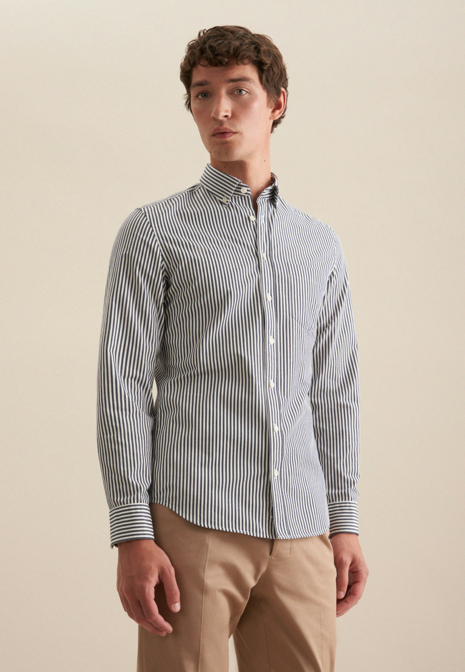 Masculine design - look stylish and classy in this casual shirt from Seidensticker's "SMART CASUAL" collection. A little more style for enjoying some free time, working from home, the office and going to events. Our twill fabric made from 100% cotton is soft but strong, making it perfect for smart outfits thanks to its compact, regular pattern. Try this casual shirt in slim fit for a modern look that goes perfectly with any office outfit thanks to its subtle tailored cut. Your new casual shirt is the perfect choice for stylish looks thanks to its stripes pattern. Smart Seidensticker shirts offer the perfect balance between classic looks and modern styles. Stylish and elegant, this long-sleeve casual shirt is just what you need. It features adjustable cuffs as your style demands. Plus a button-down-collar for a sporty and modern look. Fine detail include a breast pocket. Sustainability is incredibly important to us, which is why this casual shirt complies with the high standards we've put in place regarding responsible sourcing of raw materials, social responsibility, sustainable production and plastic-free packaging.