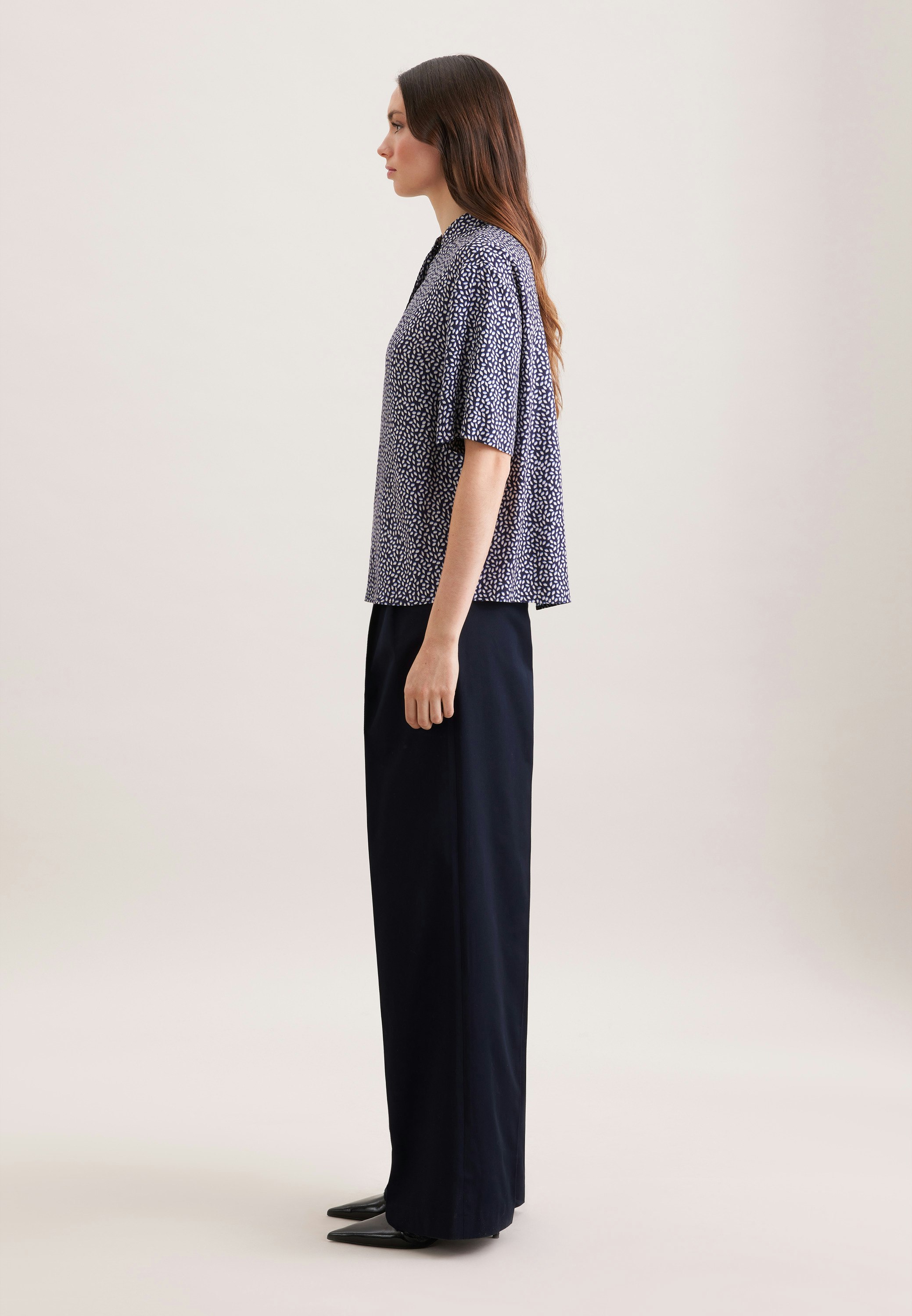 Gemusterte Stehkragenbluse in A- Linie aus Viskosetwill