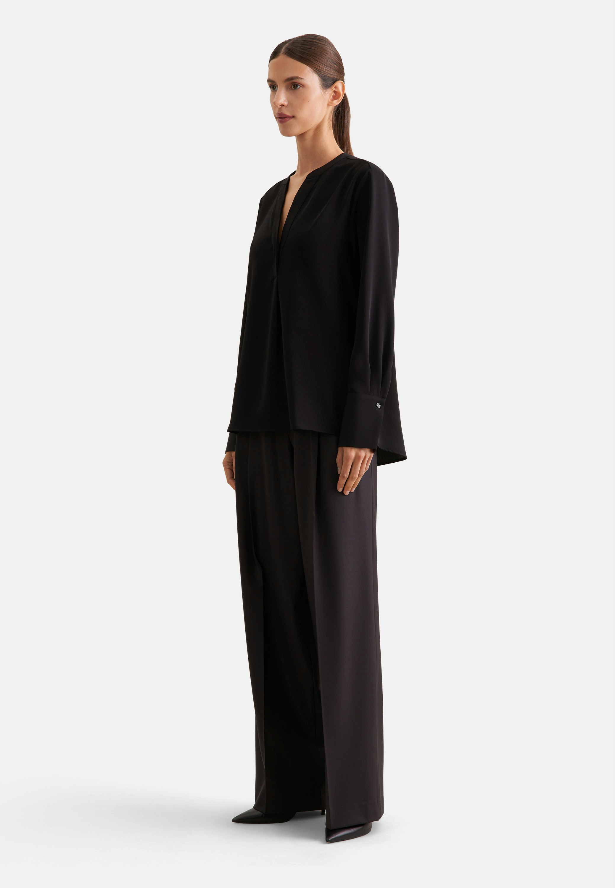 Leicht durchsichtig, aber trotzdem sehr passend fürs Büro. Fließender Stoff, sehr elegant.