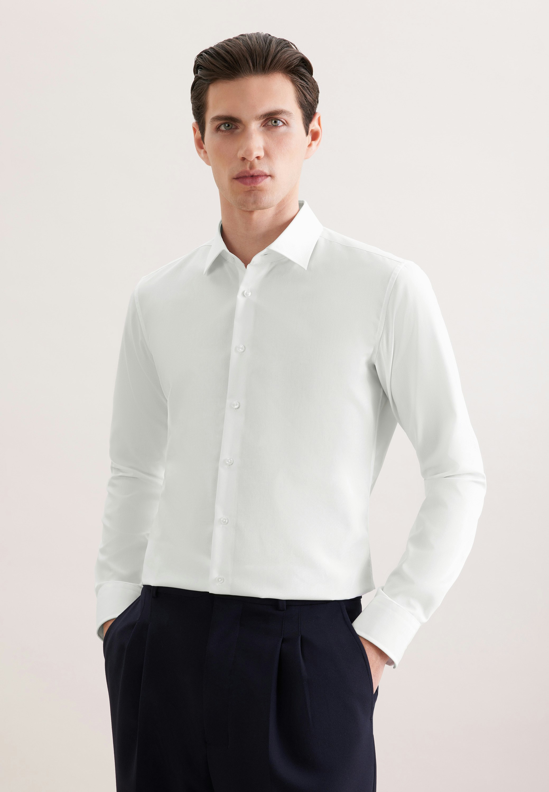 The Seidensticker X-Slim men's shirt scores with its non-iron cotton fabrication and slim cut that perfectly showcases the athletic silhouette. The plain-coloured design makes it versatile to combine and creates modern business looks with sophisticated charm. The Kent collar and width-adjustable combi cuffs complement the successful concept.