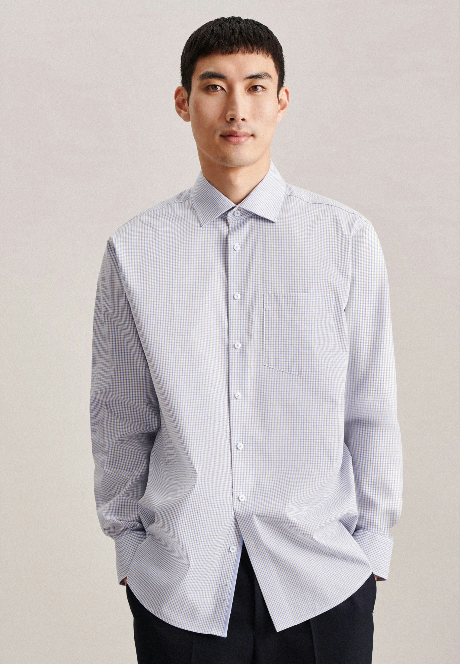 Les chemises de la collection Seidensticker se distinguent par leur modernité élégante, leur aspect formel et décontracté. L'attitude de base imprègne l'ensemble de la collection Seidensticker Men et peut être ressentie dans tous les styles, qualités et coupes. L'homme le reflète dans son attitude décontractée et son approche contemporaine de la mode et du style. La coupe Regular offre une découpe droite classique avec des dimensions de chemise modérées. Deux plis latéraux à l'arrière permettent une plus grande liberté d'action.