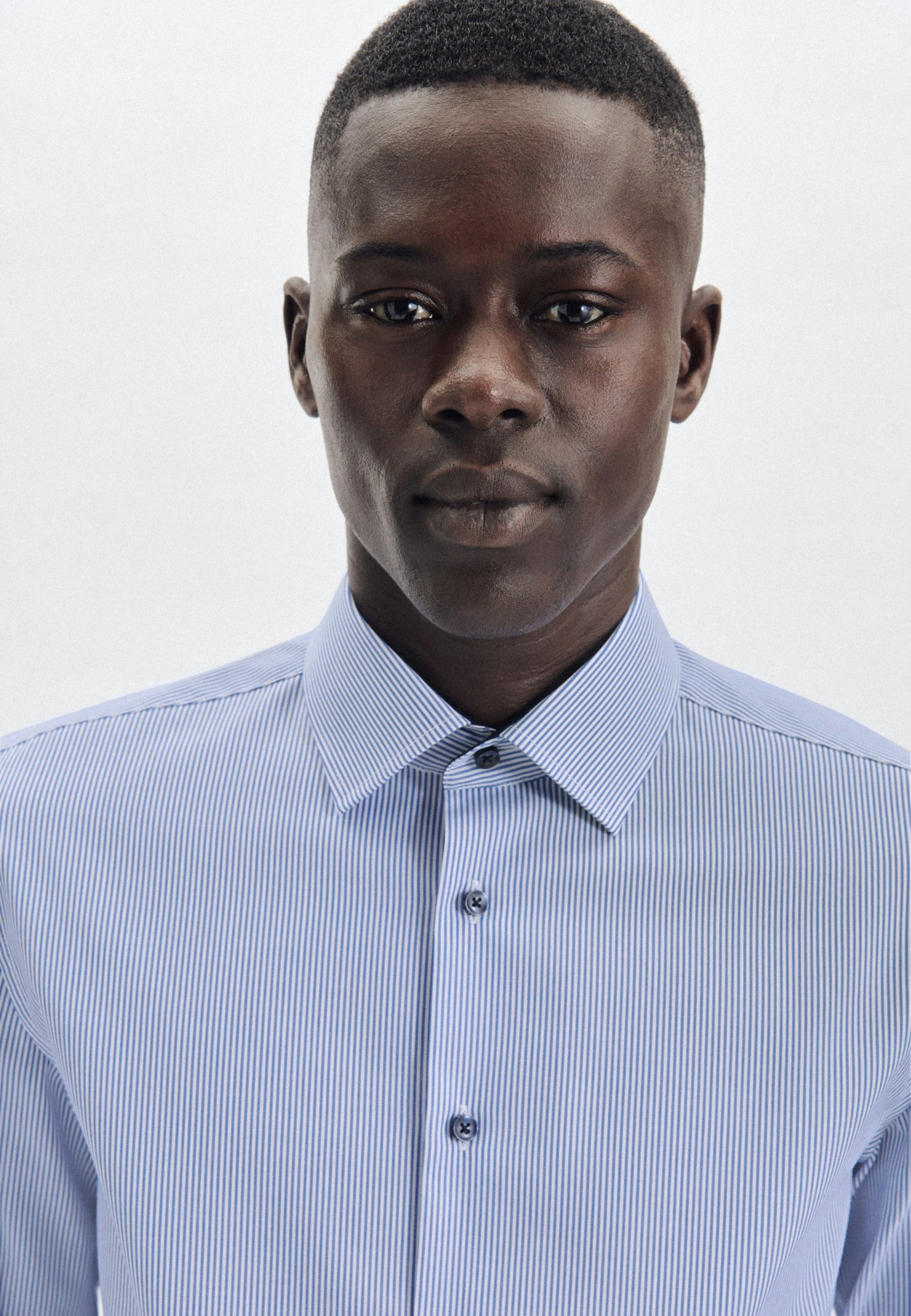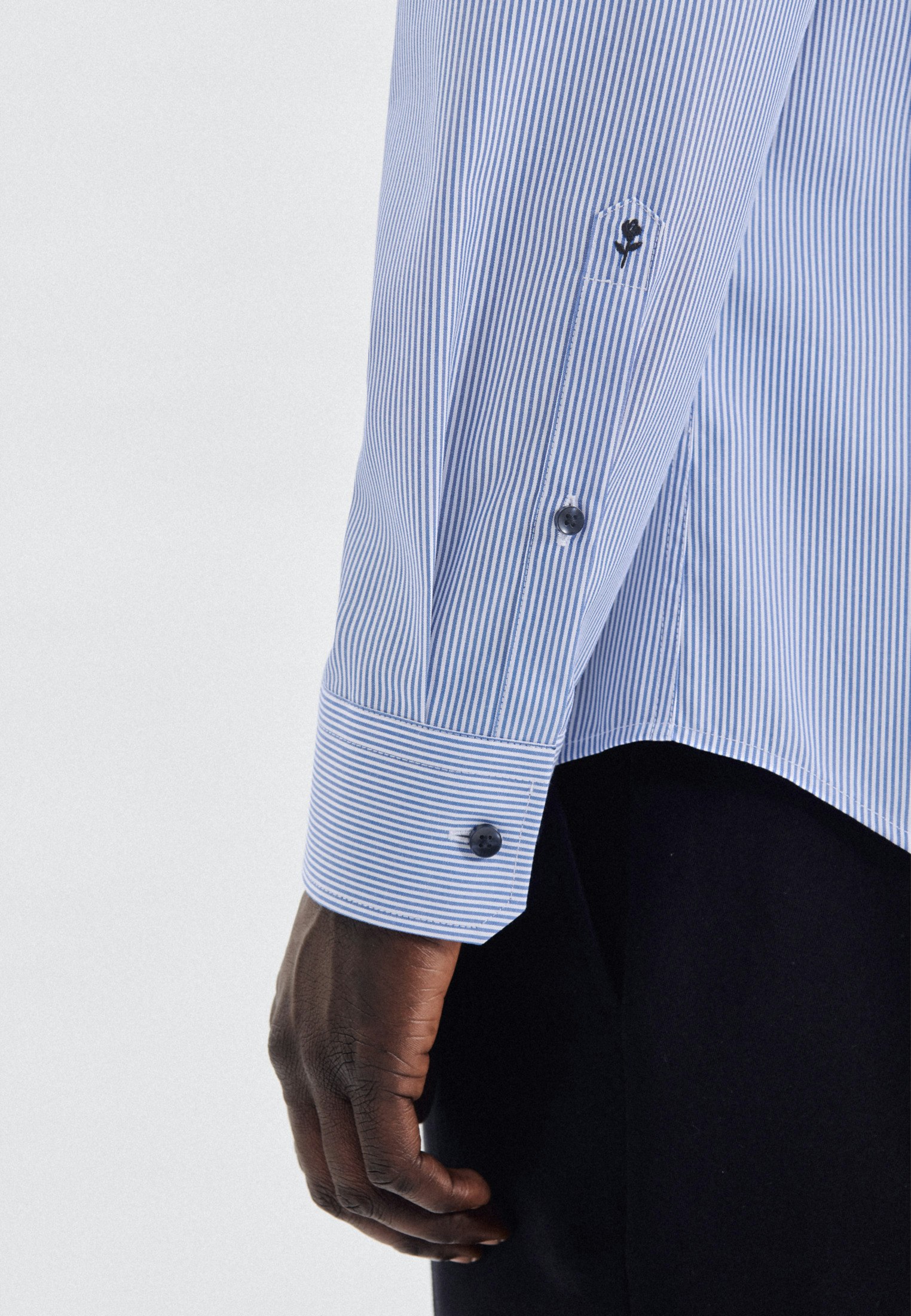 Cette chemise à rayure bâton X-SLIM de la marque Seidensticker va à coup sûr conquérir le cœur de votre costume bleu marine préféré ! Sur une coupe extra-slim très près du corps s'affiche un parfait col ville, l'étoffe est en 100% coton popeline doté de la technologie sans repassage.